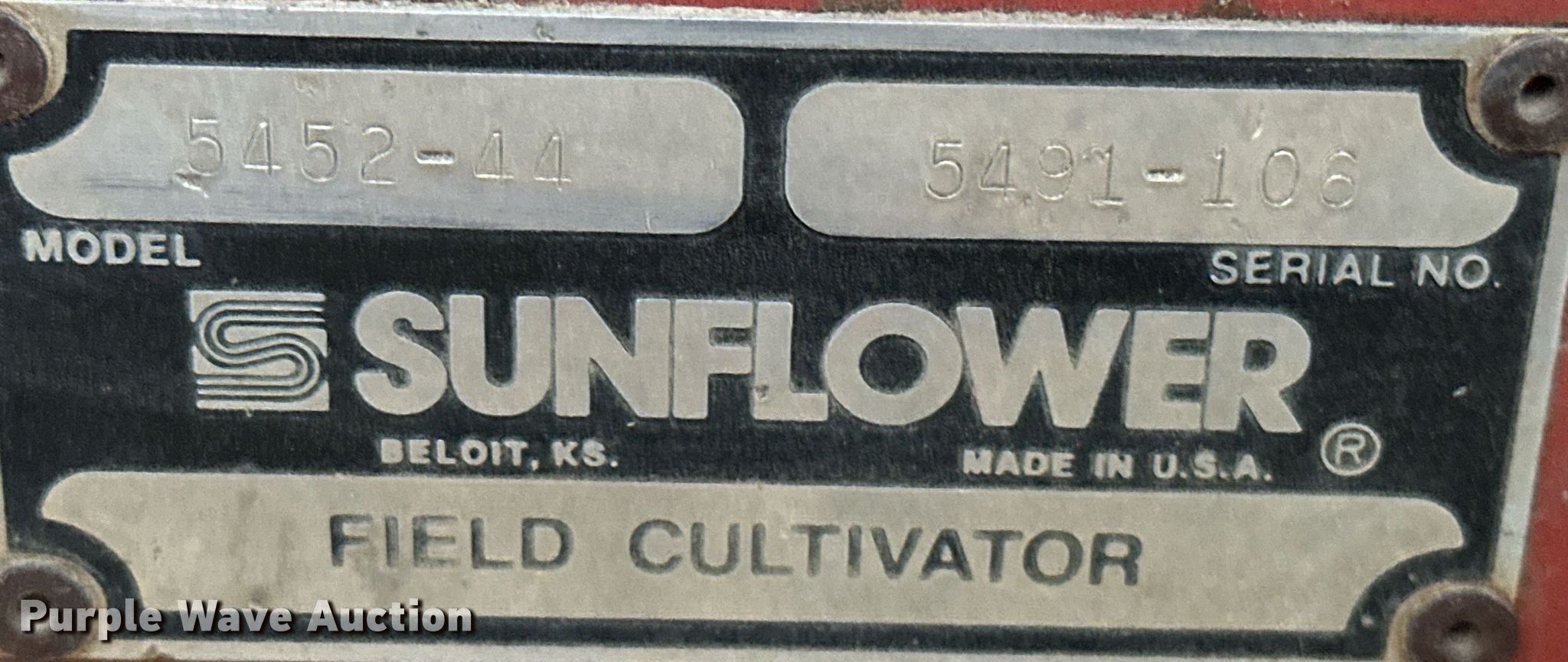 Purple Wave is selling a used Field Cultivator or Sweep Plow in Oklahoma. This item is a Sunflower 5452 field cultivator with the following: Overall width: 42', Serial: 54491-106