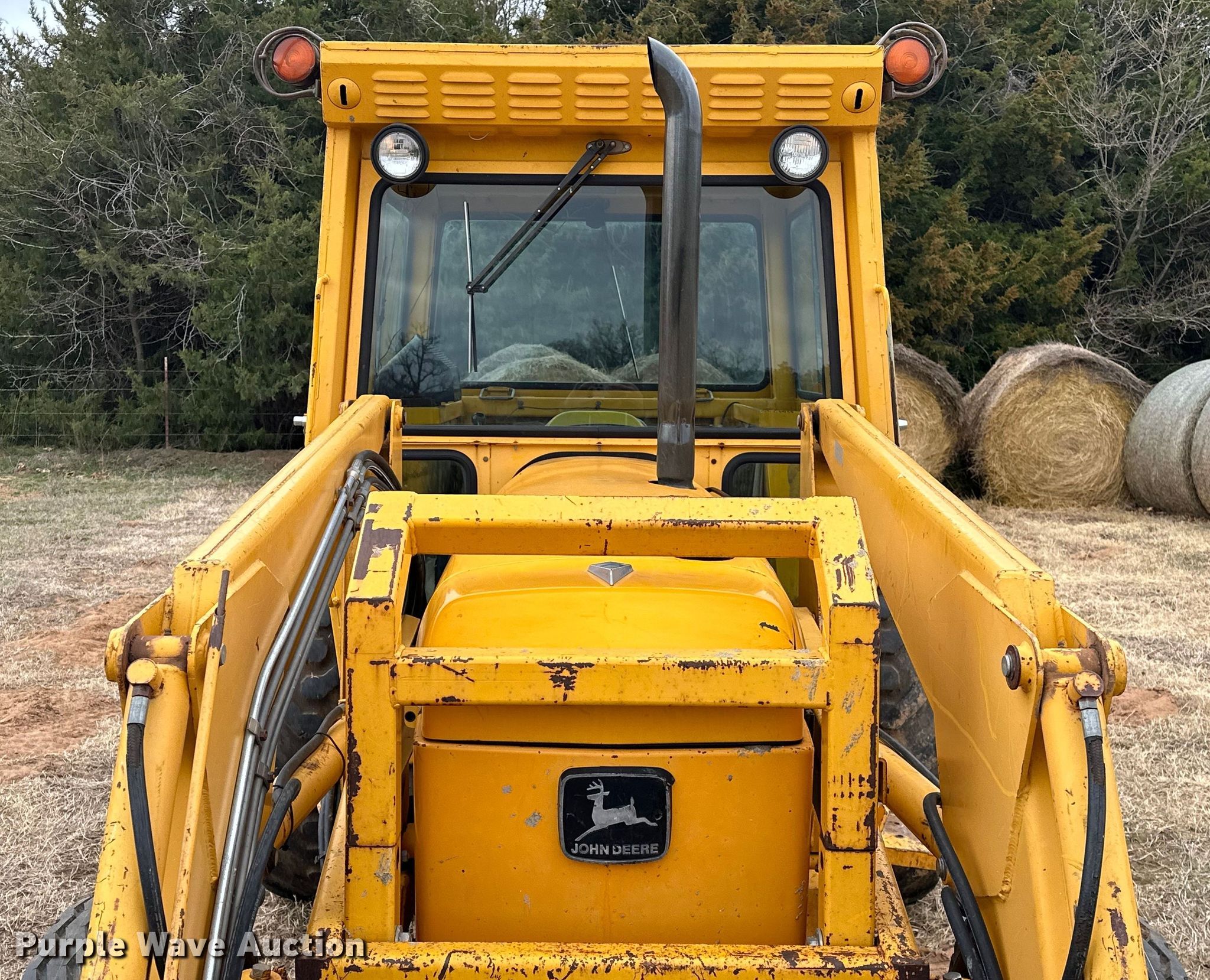 1990 John Deere 2355 tractor. Hours: 56 on meter, Serial: L02355R704192. Engine John Deere 4239DL-007, Serial: CD4239D885956, Cylinders: 4, Fuel type: Diesel. Transmission Synchro, 8F - 8R, Left-hand reverser. Chassis Differential lock. Features PTO: 540, Three point Top link, Hydraulic remote sets Rear: 2, Loader John Deere 110, Bale spear, Controls: Joystick, Bucket Width: 83".. Tires Front: 11L-16, Rear: 16.9-24, Wheel weights: 6. 351336 East 860 Road. Stroud, OK 74079