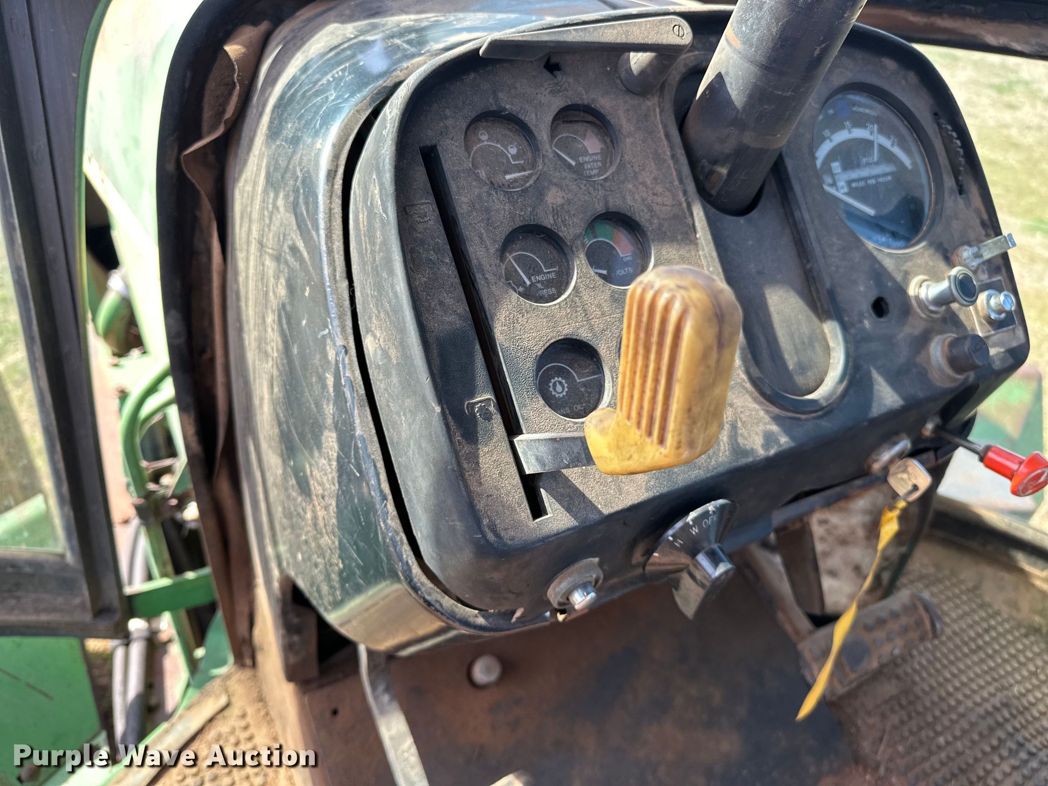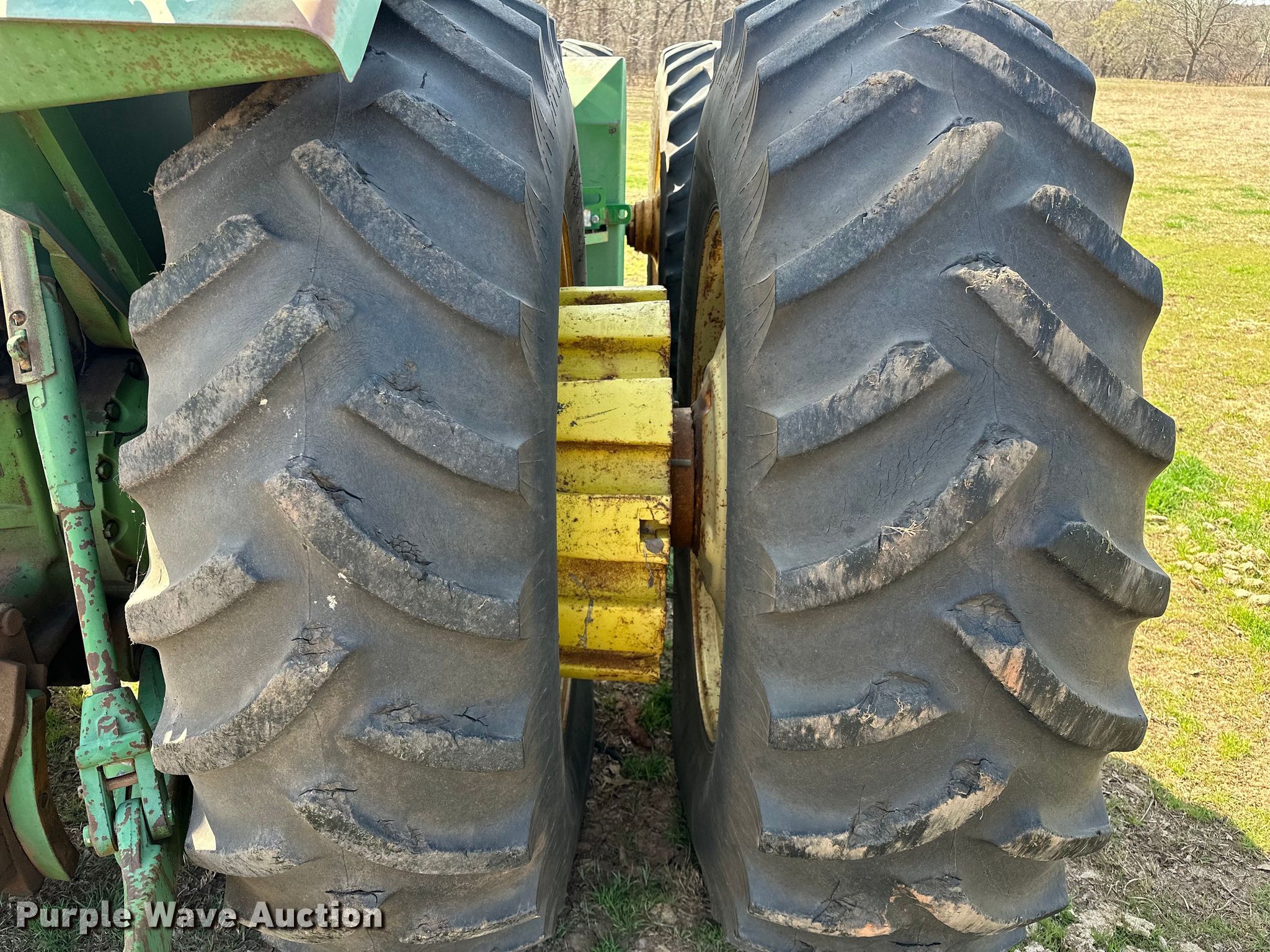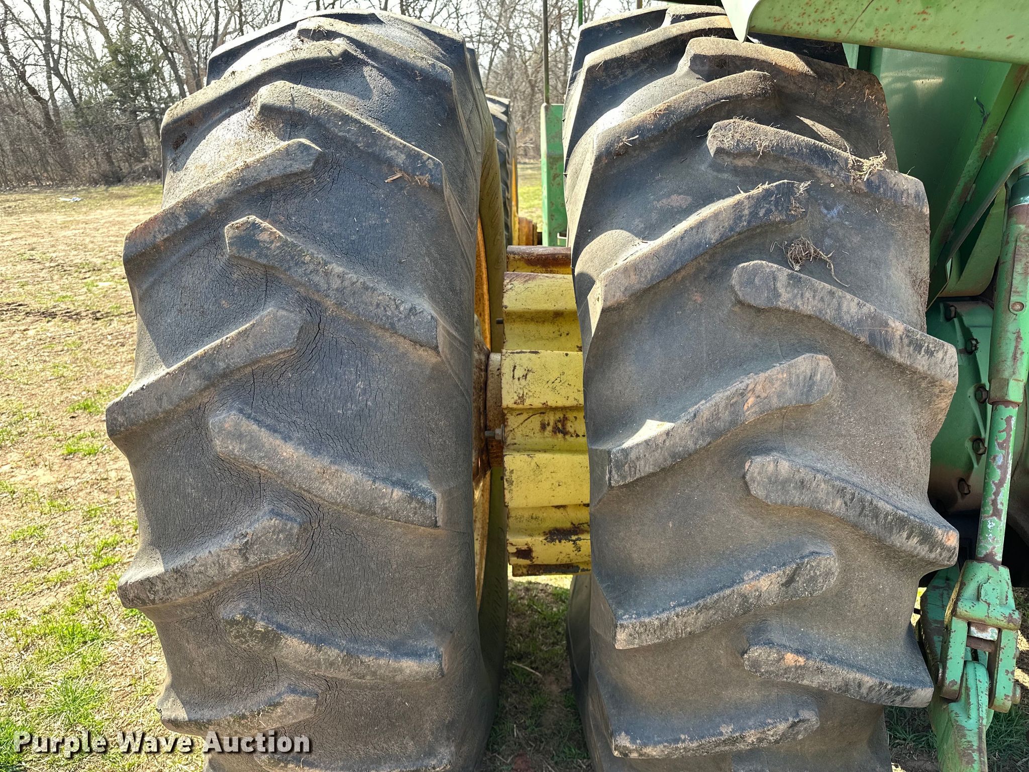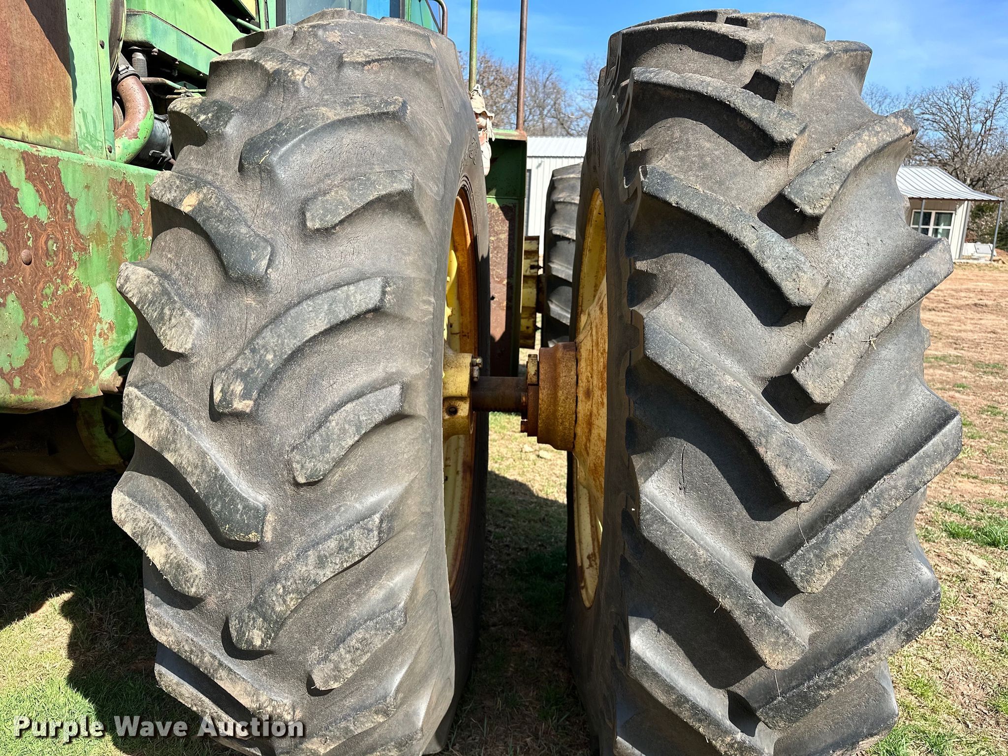 1978 John Deere 8430 4WD tractor. Serial: 006532R. Engine John Deere, Cylinders: 6, Fuel type: Diesel. Transmission Quad-range, 16F - 6R, Differential lock. Operators station AC, Heat. Features PTO: 1000, Three point, Hydraulic remote sets Rear: 3. Tires Front: 18.4R38, Rear: 18.4-38, Wheel weights: 2, Duals. Notes Unknown operating condition of AC. 29351 Independence. Glencoe, OK 74032