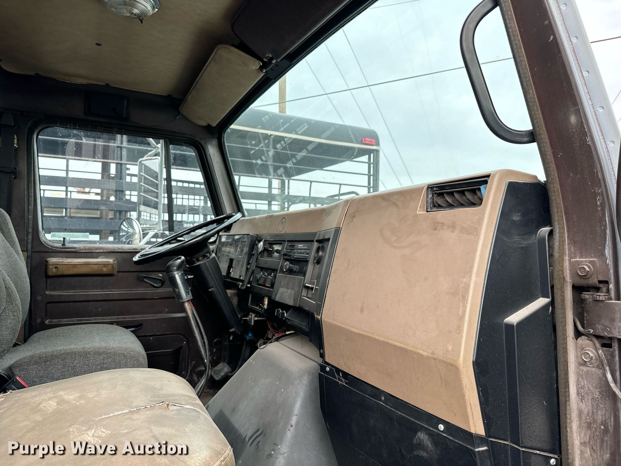 1990 International 4900 fuel truck. Miles: 130,715 on odometer, VIN: 1HTSDZ7N3LH272117. Engine Displacement: 7.6L, Cylinders: 6, Fuel type: Diesel. Transmission Manual, Speed: 9. Chassis Axles: Single, Suspension: Spring, Brakes: Air, PTO. Interior AC, Heat, Heated mirrors. Features Bed / tank Capacity: 2,720 gallons, 17' 4" L x 8' W, Compartments: 4, Hose reels: 1, Nozzles, Metered pumps: 4. Tires Size: 11R22.5. Notes Certification valid through: 02/2024. Oklahoma classic title. C & C Contracting Services, Inc.. 90 OK-110. Davis, OK 73030