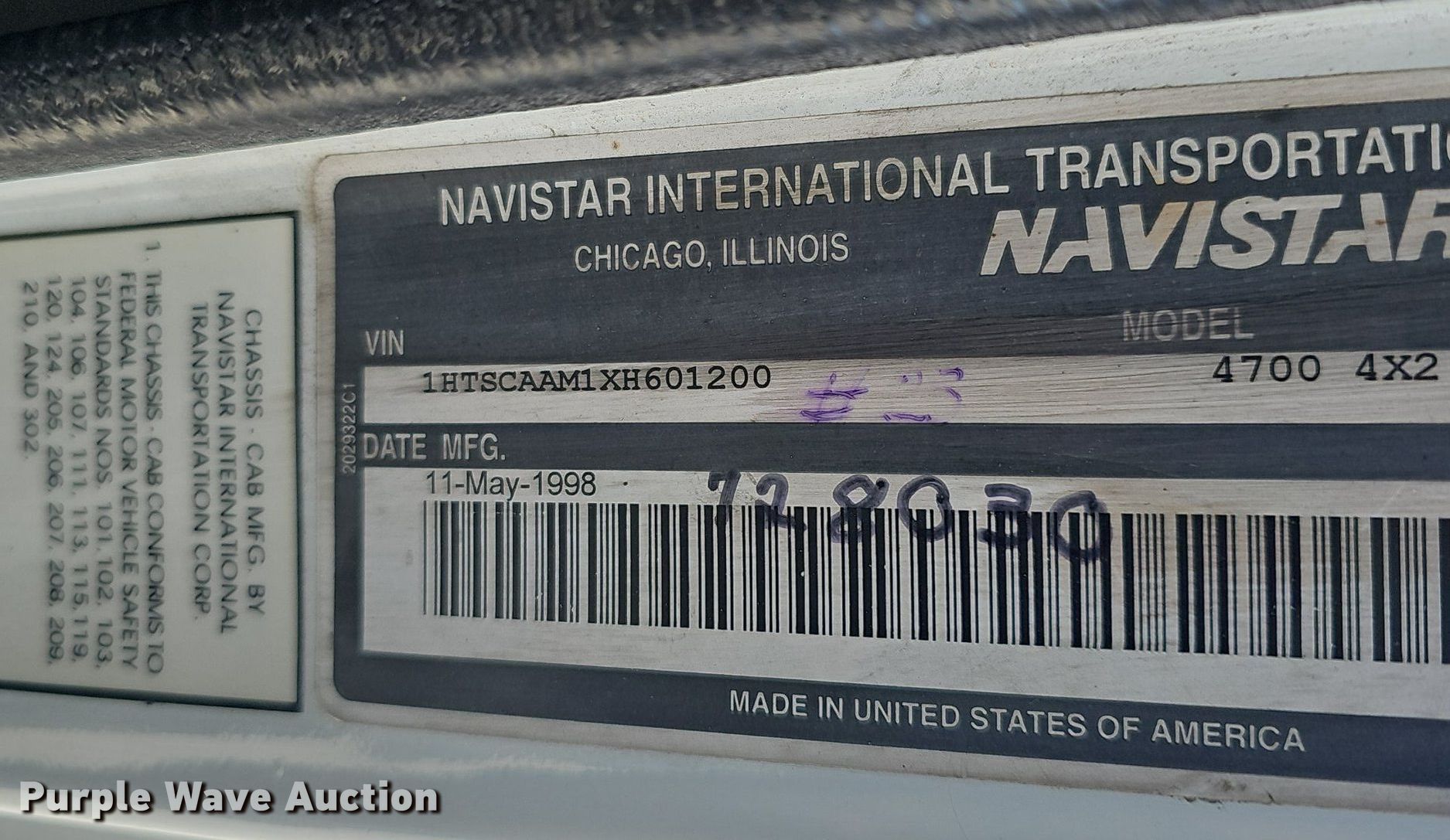 Purple Wave is selling a used Box Truck in Missouri. This item is a 1999 International 4700 box truck with the following: Miles: 329,510 on odometer, VIN: 1HTSCAAM1XH601200