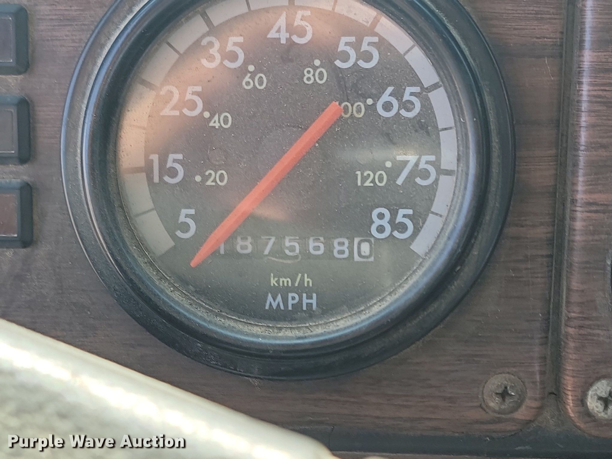 1998 Freightliner FLD112 semi truck. Miles: 787,568 on odometer, VIN: 1FUW3MDB1WL947228. Engine Cummins M11, Displacement: 10.8L, Cylinders: 6, Fuel type: Diesel, Engine brake. Transmission Eaton Fuller, Manual, Speed: 7. Chassis Axles: Single, Suspension: Air, Brakes: Air, GVWR: 34,000 lbs FAWR: 12,000 lbs, RAWR: 22,000 lbs. Interior AC, Heat. Features Deck plate: Aluminum, Fifth wheel type: Fixed, Fuel tank: Dual. Tires Size: 11R22.5. Notes Windshield chipped or cracked. Iowa title. Title distribution may be delayed up to 14 days from verification of funds. The GSI Group LLC. 4801 US-75. Sioux City, IA 51108