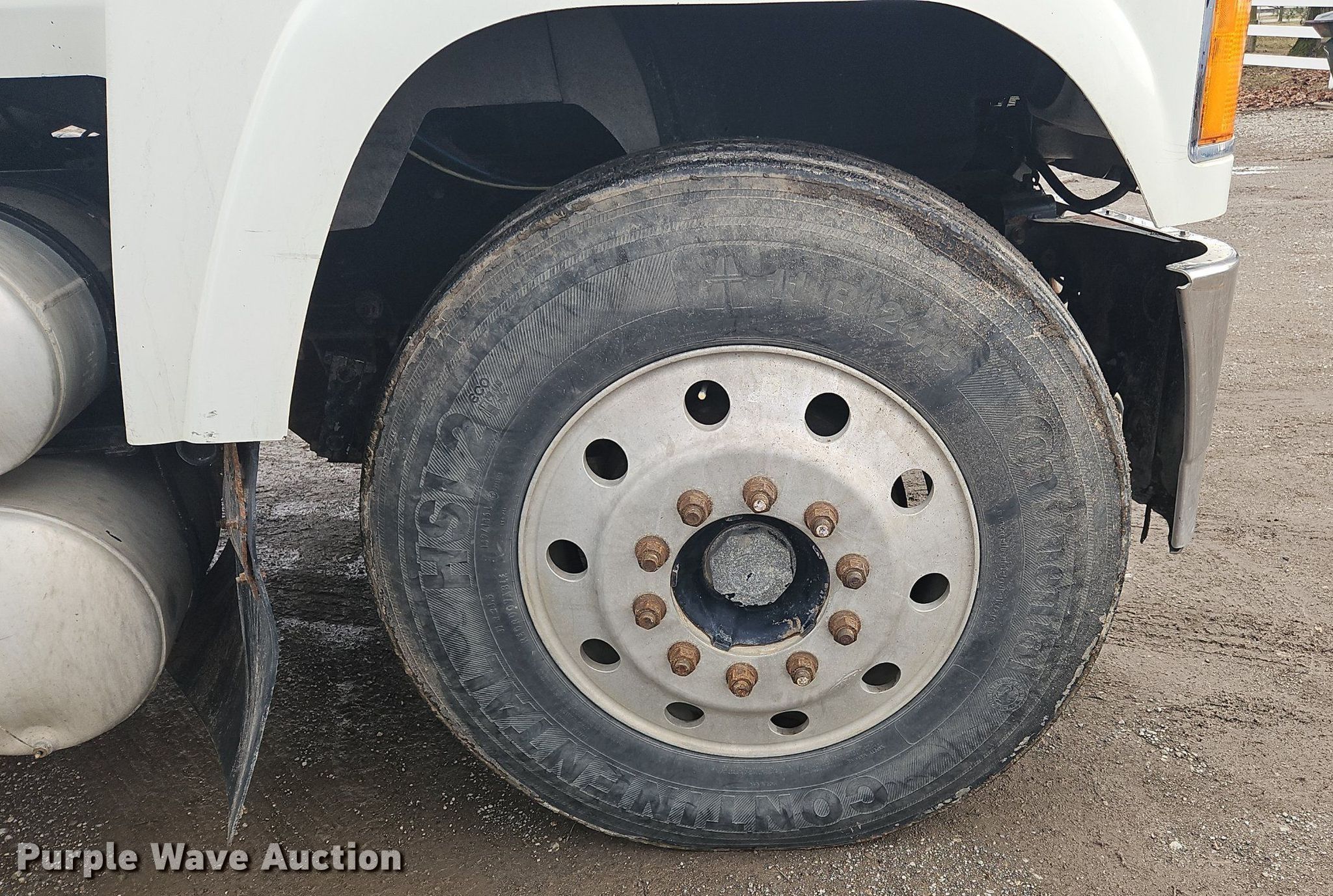 2005 Mack CHN613 semi truck. Miles: 769,397 on odometer, Hours: 24,054 on meter, VIN: 1M2AJ07Y75N002119. Engine Mack MP8, Cylinders: 6, Fuel type: Diesel, HP: 480, Engine brake. Transmission Mack MaxiTorque, Manual, Speed: 13. Chassis Axles: Triple, Pusher axle, Differential lock: Inter-axle, Suspension: Air, Brakes: Air, PTO, Wet kit. Interior AC, Heat, Heated mirrors, Cruise control. Features Deck plate: Aluminum, Fifth wheel type: Air operated, Sliding, Fuel tank: Dual. Tires Size: 11R24.5, Lift axle: 255/70R22.5. Notes Dash warning indicator: ABS, Service records available upon request to Matt Viehe at [email protected]. Indiana title. Title distribution may be delayed up to 14 days from verification of funds. Viehe Crop Service. 4282 West 216th Street. Sheridan, IN 46069