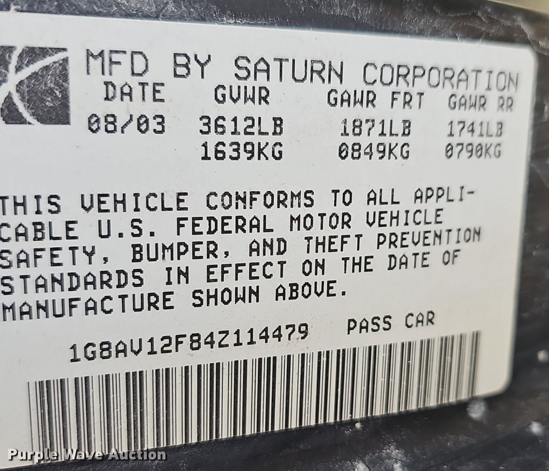 - VIN: 1G8AV12F84Z114479