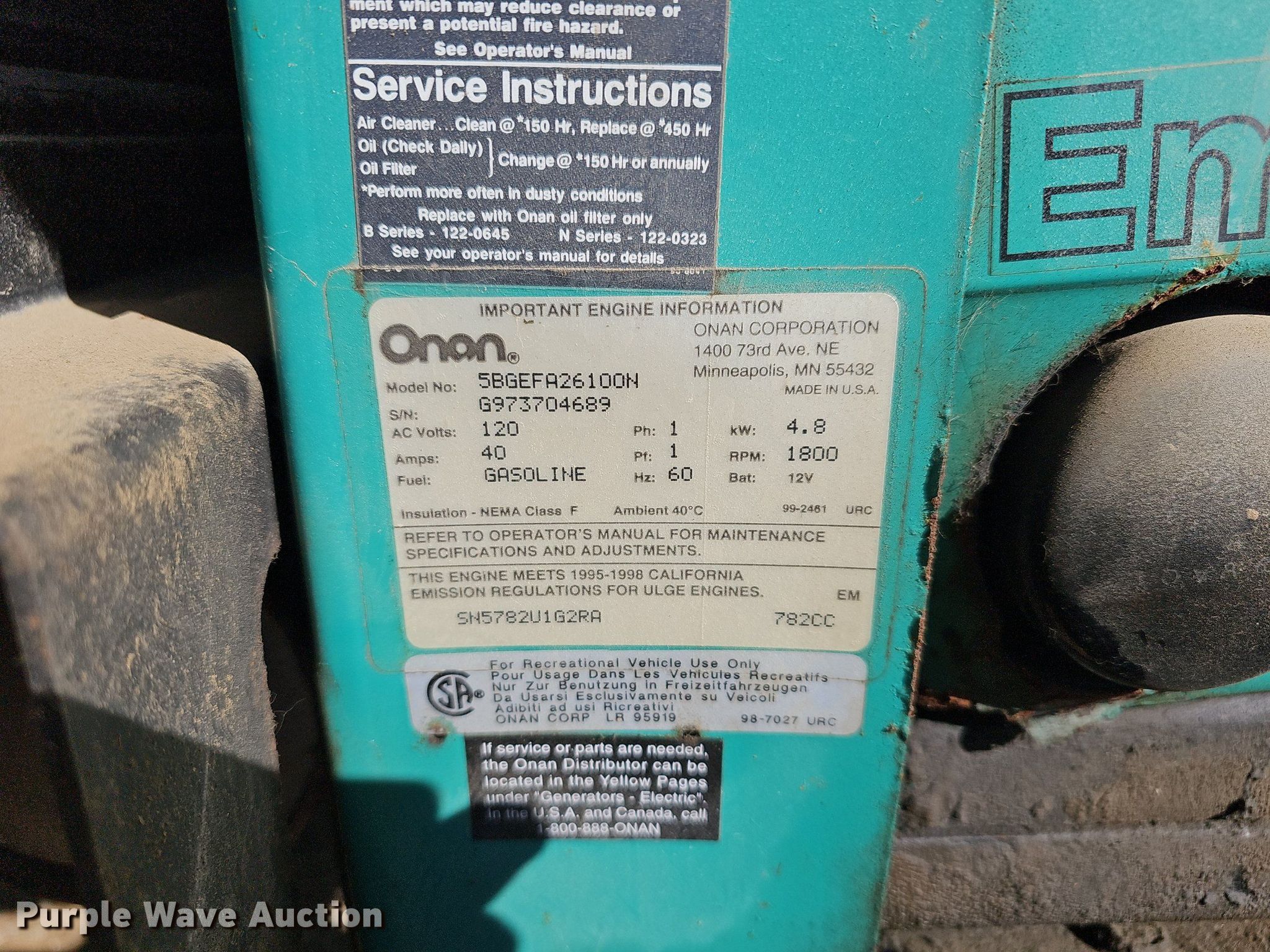 1998 Winnebago Adventurer RV. Miles: 60,735 on odometer, Camper length: 32', VIN: 1GBLP37JOV3316548. Engine Vortec 7400 454, Displacement: 7.4L, Fuel type: Gas, HP: 290. Transmission Automatic. Chassis Axles: Single, Suspension: Spring, Brakes: Hydraulic, GVWR: 16,500 lbs, GAWR: 5,500 lbs, Wheelbase: 210". Interior Kitchen: Sink, Refrigerator, Freezer, Microwave, Oven, Stove: Propane, Living room: Table, Pull out couch, Bathroom, Beds: 1 Bed type: Double, TVs: 1, Satellite, Sound system, Heater, AC units: 2. Features Awnings: 1 Awning type: Manual, Generator Onan Emerald Plus 5000, Fuel type: Gas, kW: 4.8, Rear hitch, Ball hitch: 2", Hydraulic leveling unit. Tires Size: 225/79R19.5, Brand: Michelin. Notes Transmission issues, does not stay in park , Generator engine issues, will not stay running , Windshield chipped or cracked. Kansas title. Manhattan, KS 66502