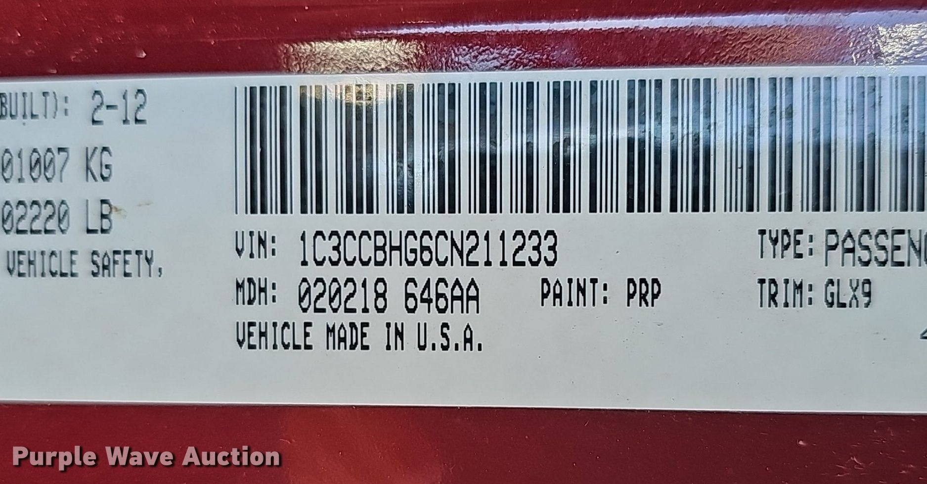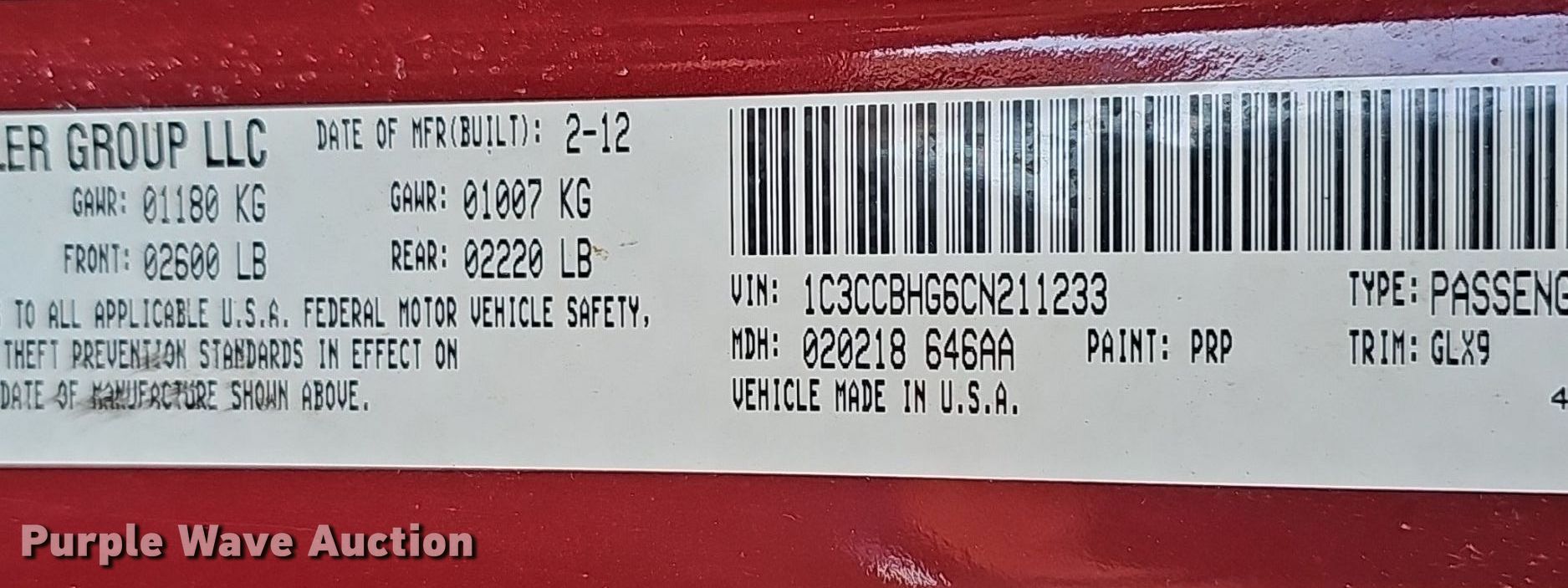 2012 Chrysler 200 S. Miles: 130,905 on odometer, VIN: 1C3CCBHG6CN211233, Unit #: 8180. Engine Displacement: 3.6L V6 DOHC, Cylinders: 6, Fuel type: Gas. Transmission Automatic. Interior AC, Heat, Seat: Heated, Power driver, Heated mirrors, Power windows, Power locks, Cruise control. Tires Size: 225/50R18. Notes Dash warning indicator: Oil change required, Windshield chipped or cracked. Kansas title. Kaw Valley Engineering, Inc.. 2319 N Jackson St. Junction City, KS 66441