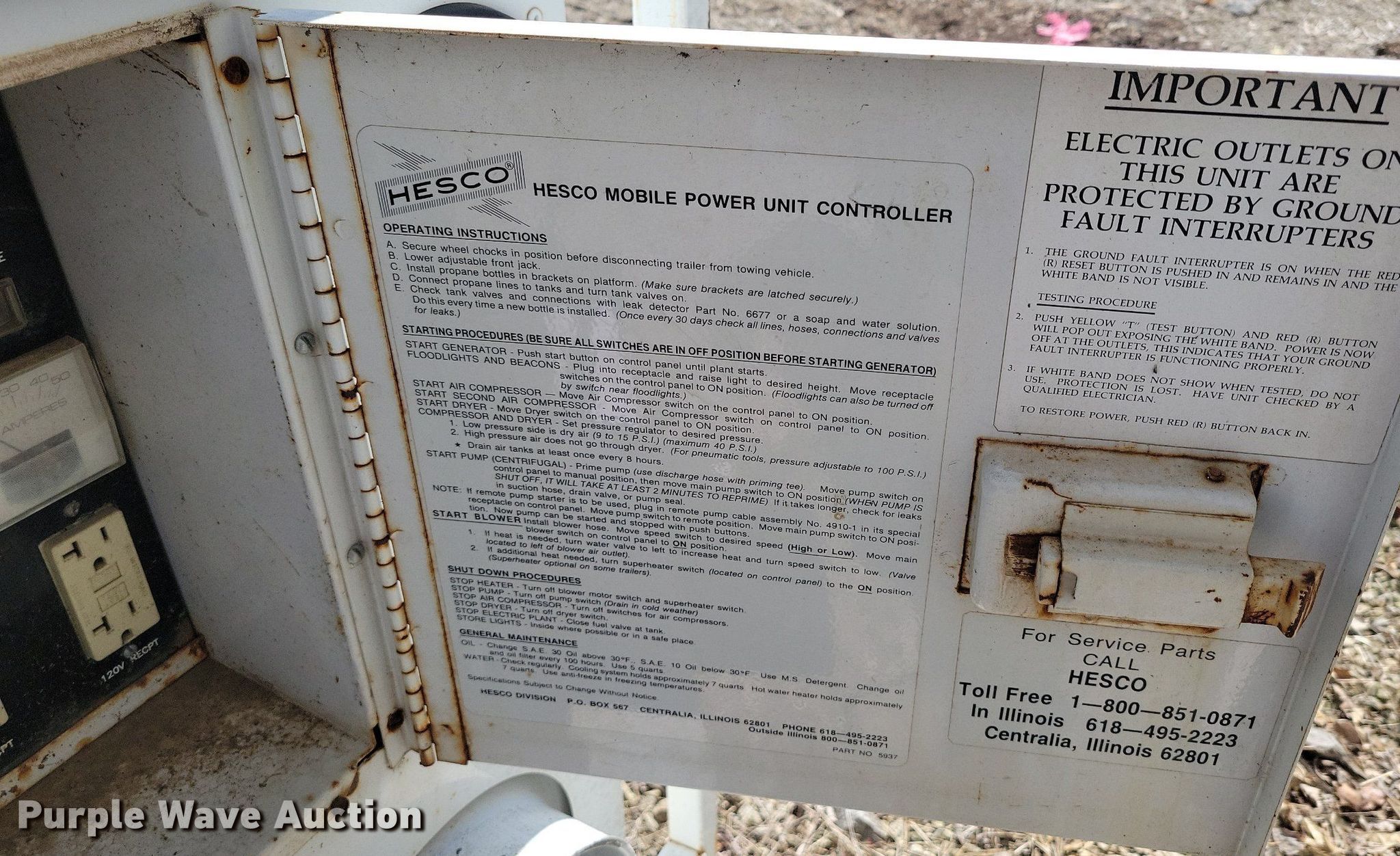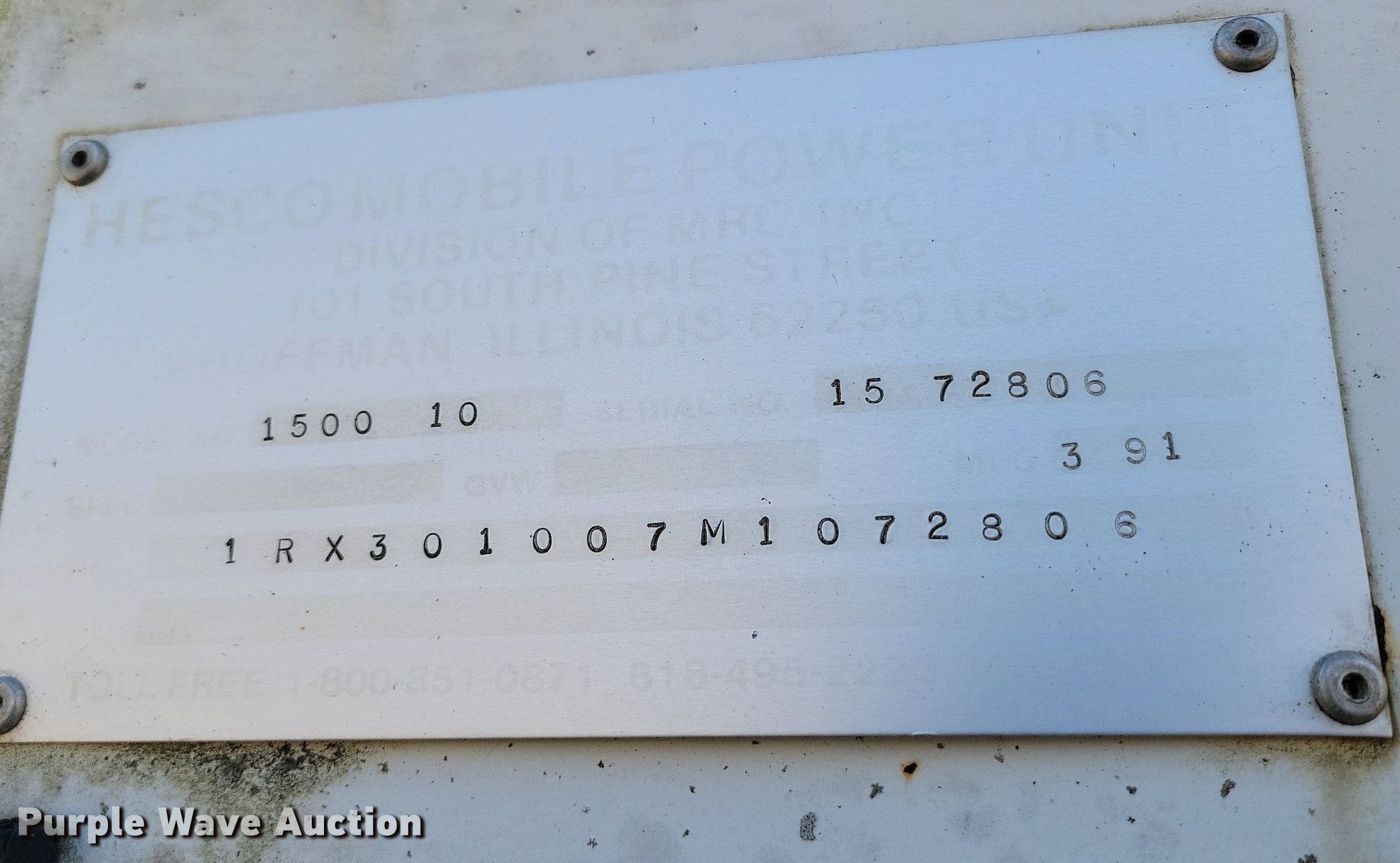 Purple Wave is selling a used Power Unit in Missouri. This item is a 1991 Hesco 1500 10 power unit trailer with the following: VIN: 1RX301007M1072806, Serial: 15-72806
