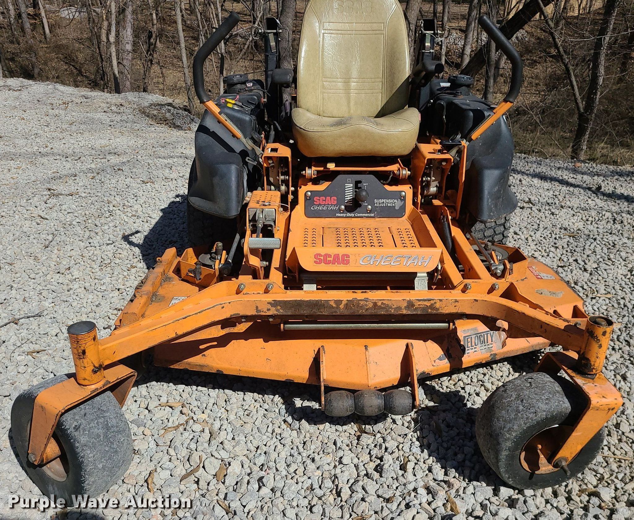 Purple Wave is selling a used Commercial Turf Mower in Missouri. This item is a Scag Cheetah ZTR lawn mower with the following: Hours: 923 on meter, Cutting width: 61"