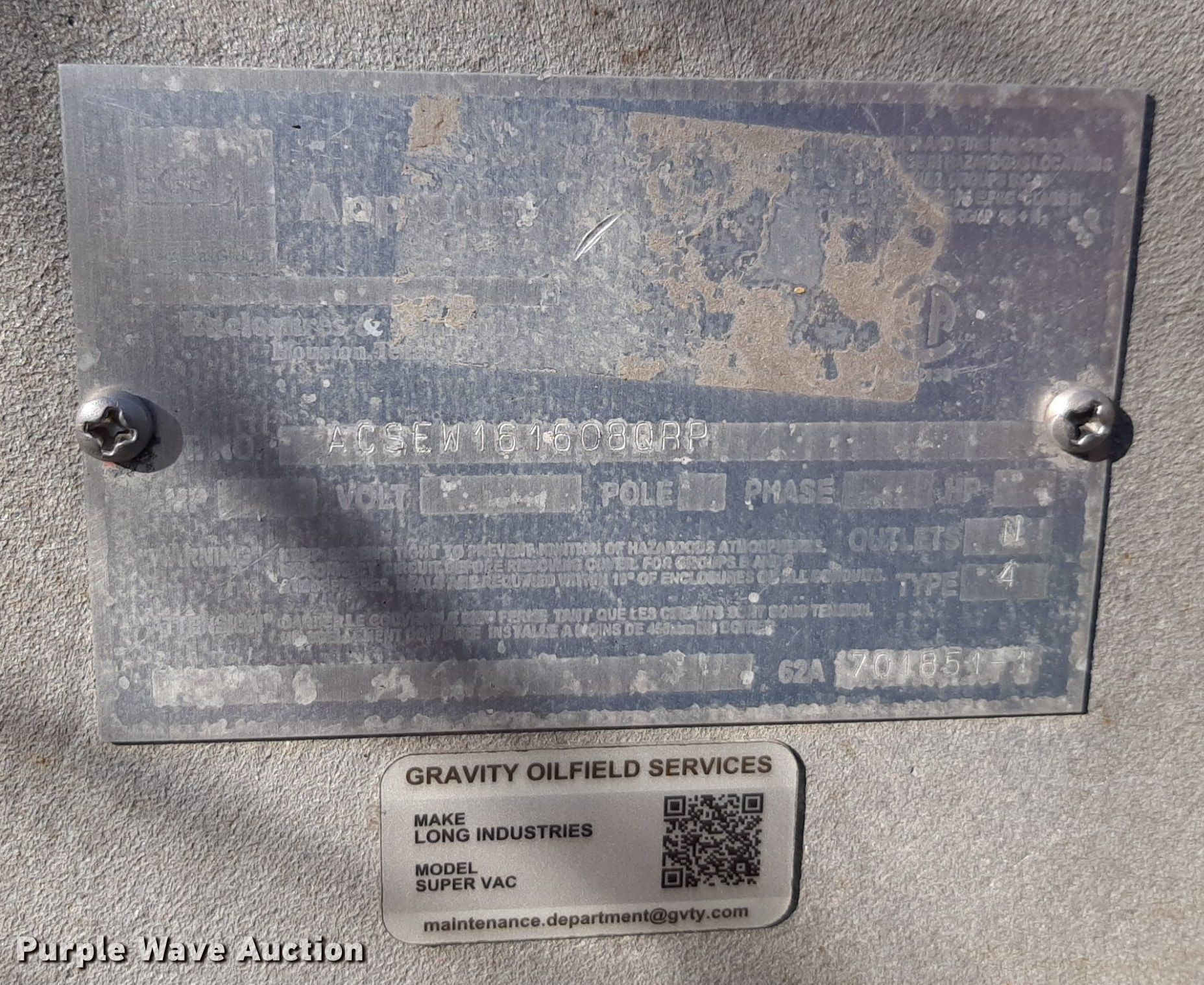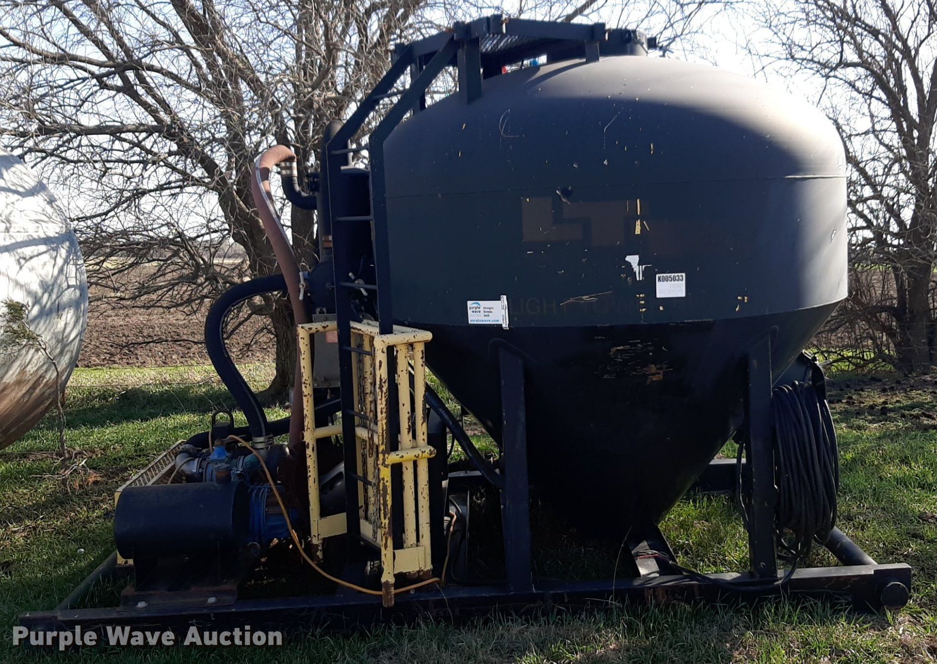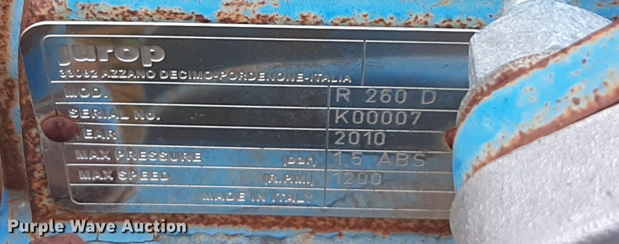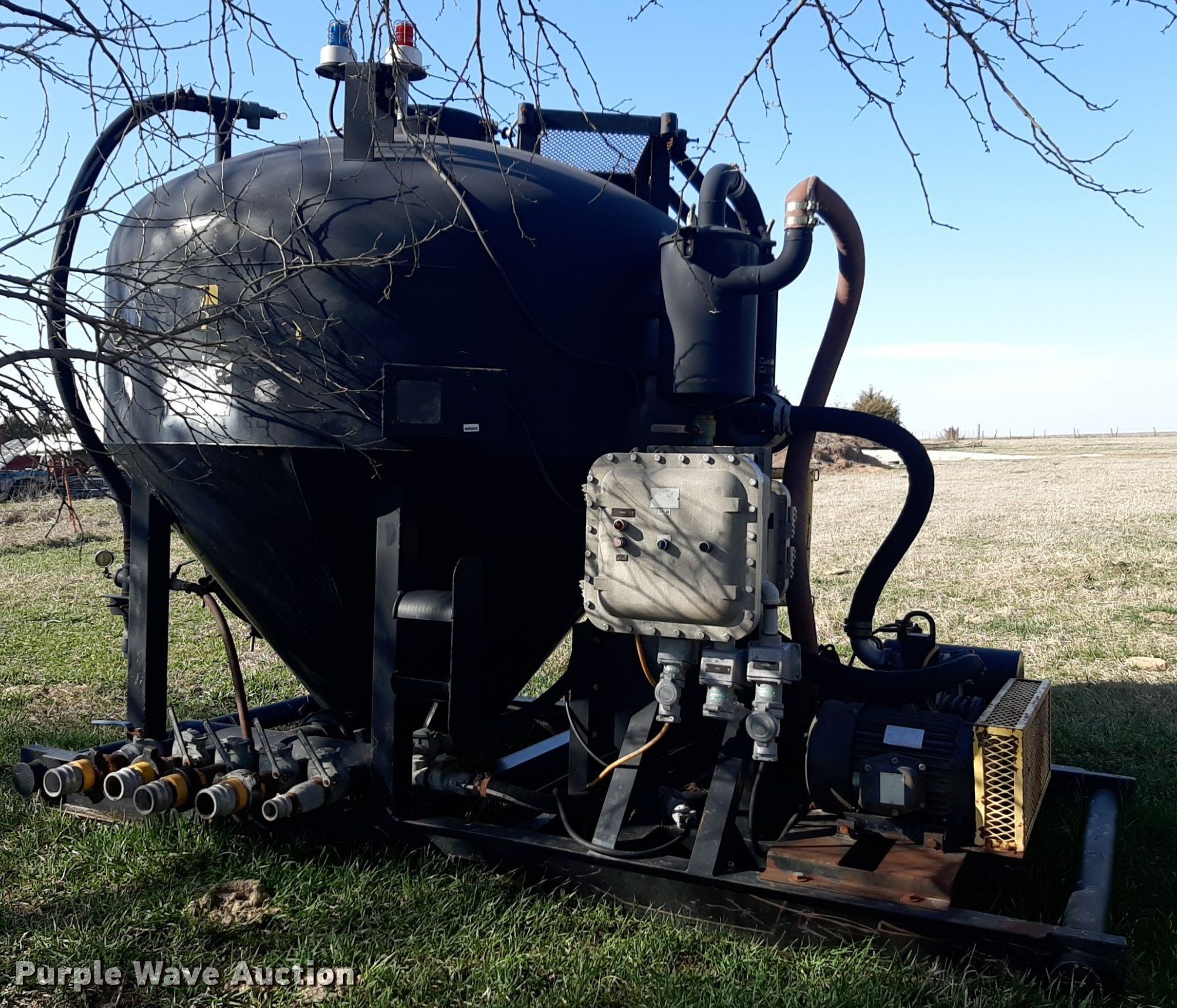 Purple Wave is selling a used Oilfield Equip. in Kansas. This item is a Vacuum pot with the following: Juror R260D vacuum pump, Serial: K00007, Pressure: 1.5 bar, Marathon electric motor, HP: 20, Phase: 3, Volts: 190/380, Outlet valves: 5, Man ways: 2, Skid mounted