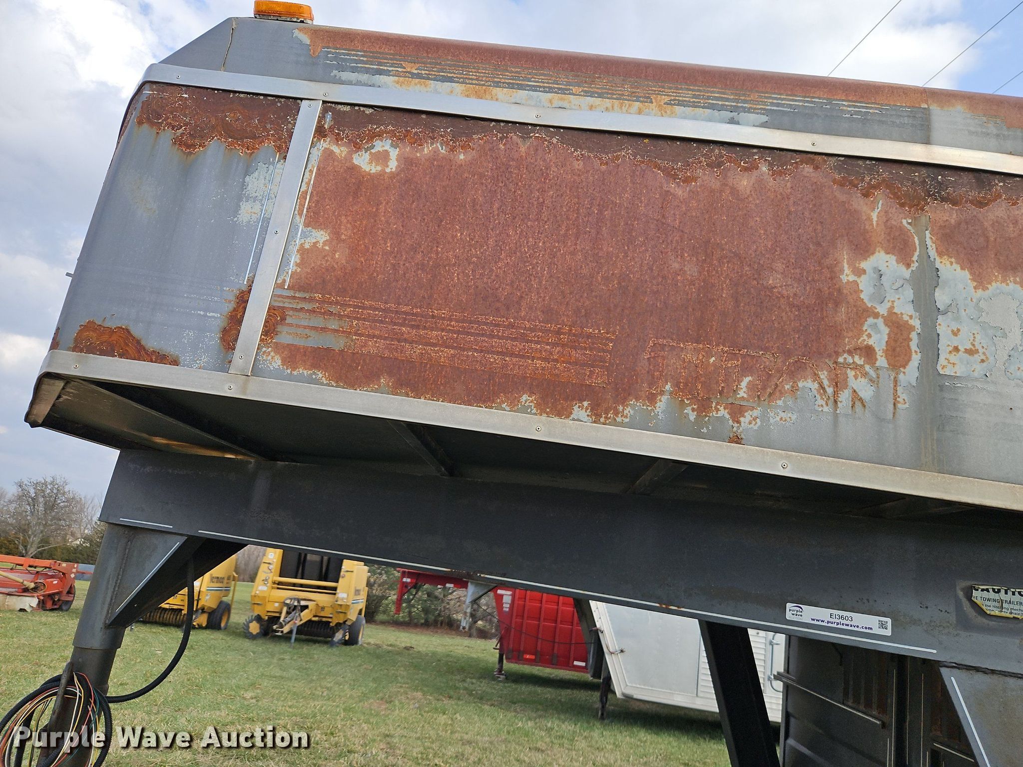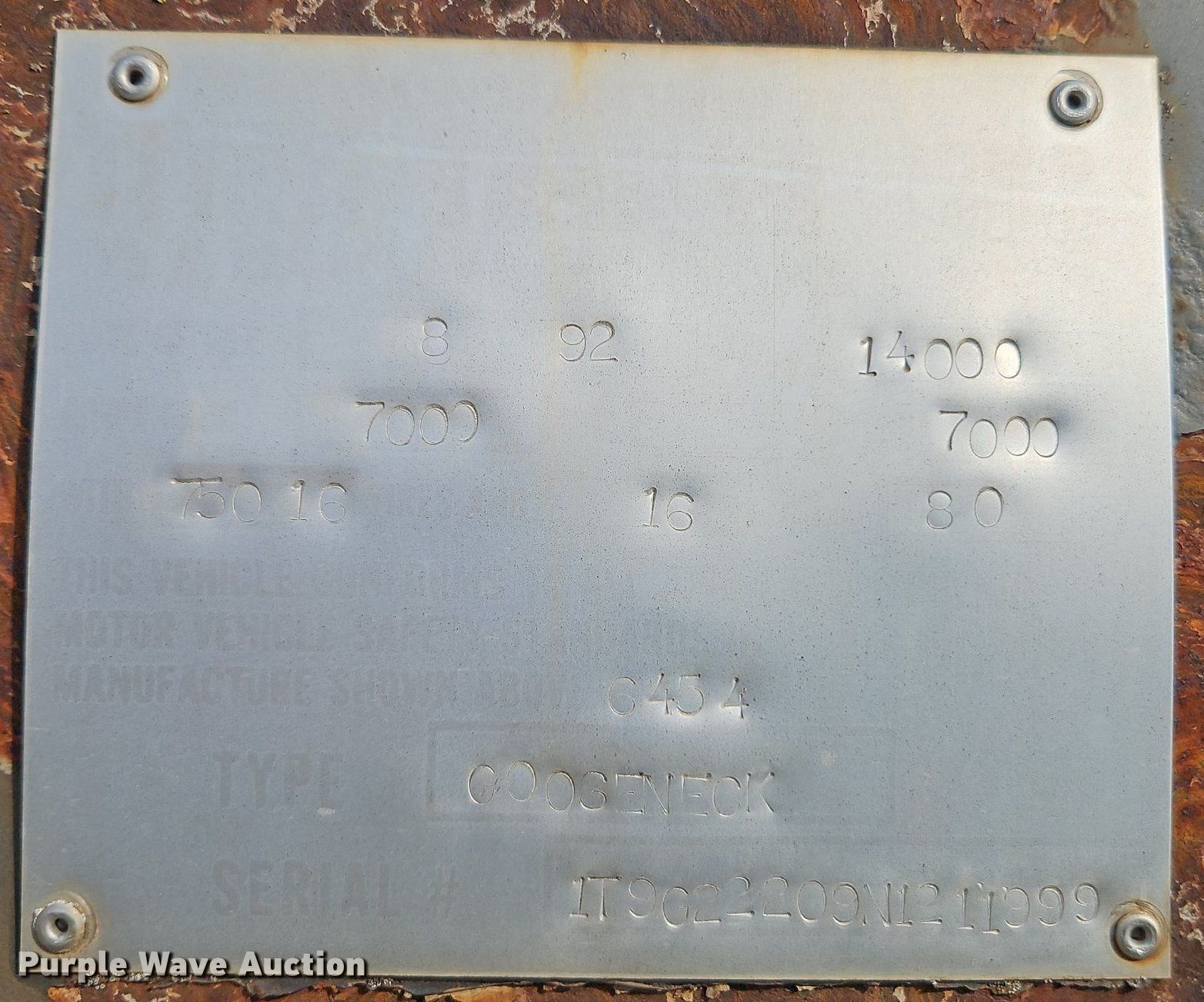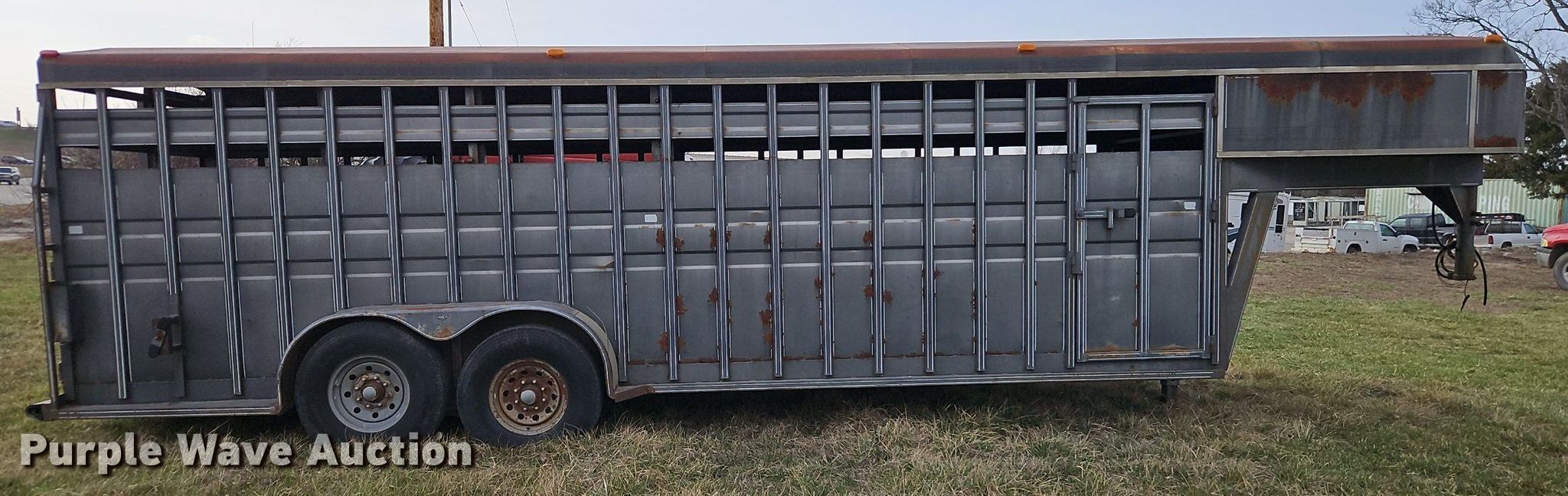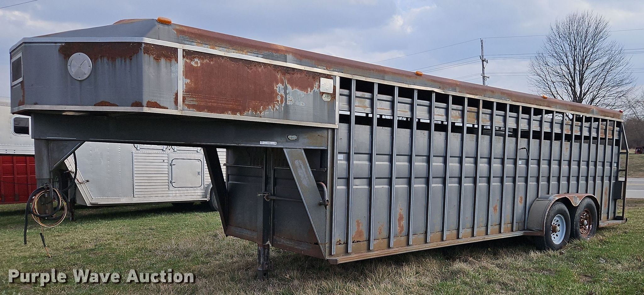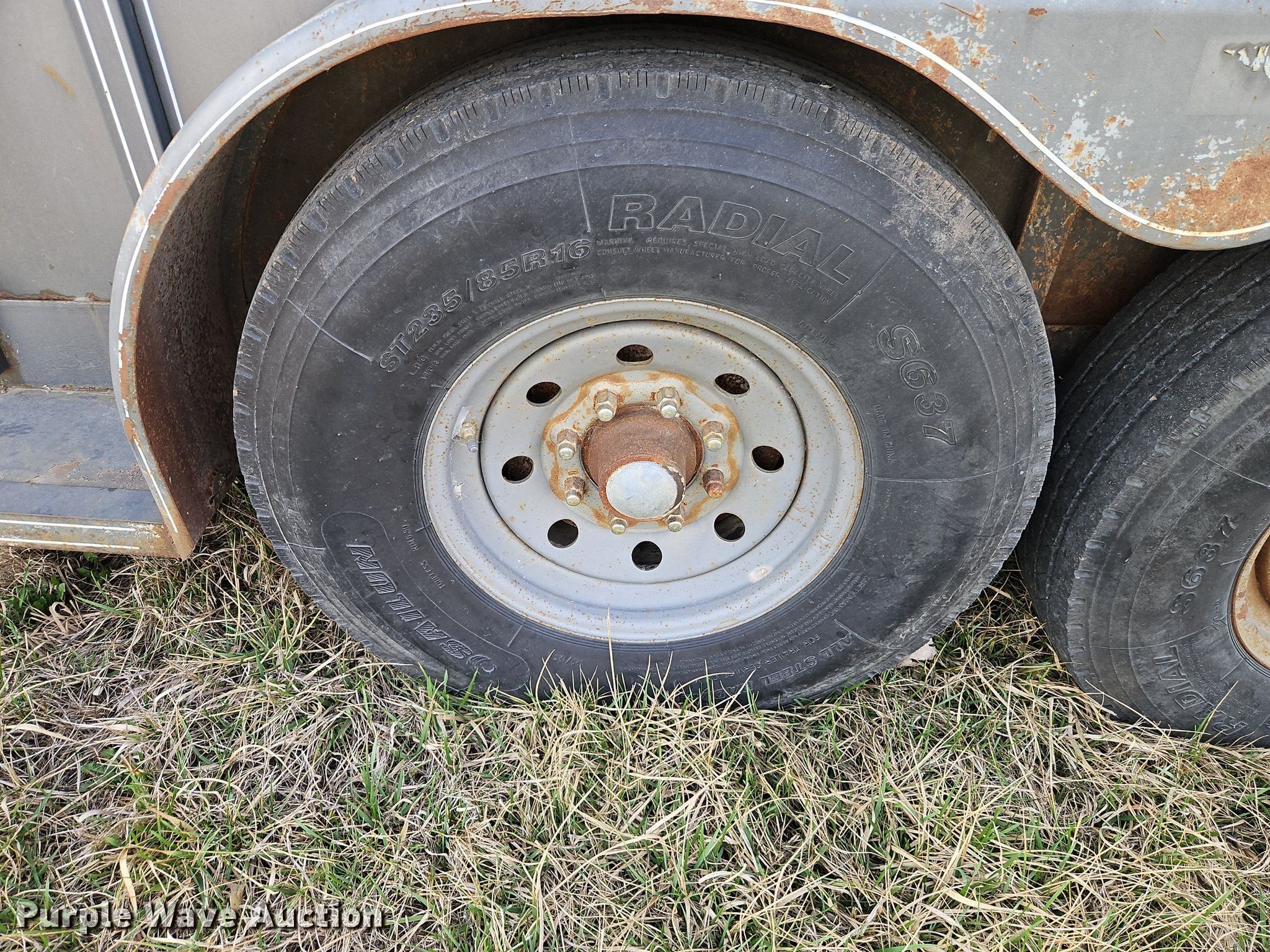 1992 Titan livestock trailer. VIN: 1T9G22209N1211999. Dimensions Overall: 29' 7" L x 8' W, Body: 22' L x 6' 8" W, Side height: 6' 7". Features Center gates: 1. Chassis Hitch: Gooseneck, Landing gear: Single, Suspension: Spring, Axles: Tandem, GVWR: 14,000 lbs, GAWR: 7,000 lbs. Tires Steel wheels, Size: 235/85R16. Kansas title. BCI Mechanical Inc.. 3117 K-68 Highway. Ottawa, KS 66067