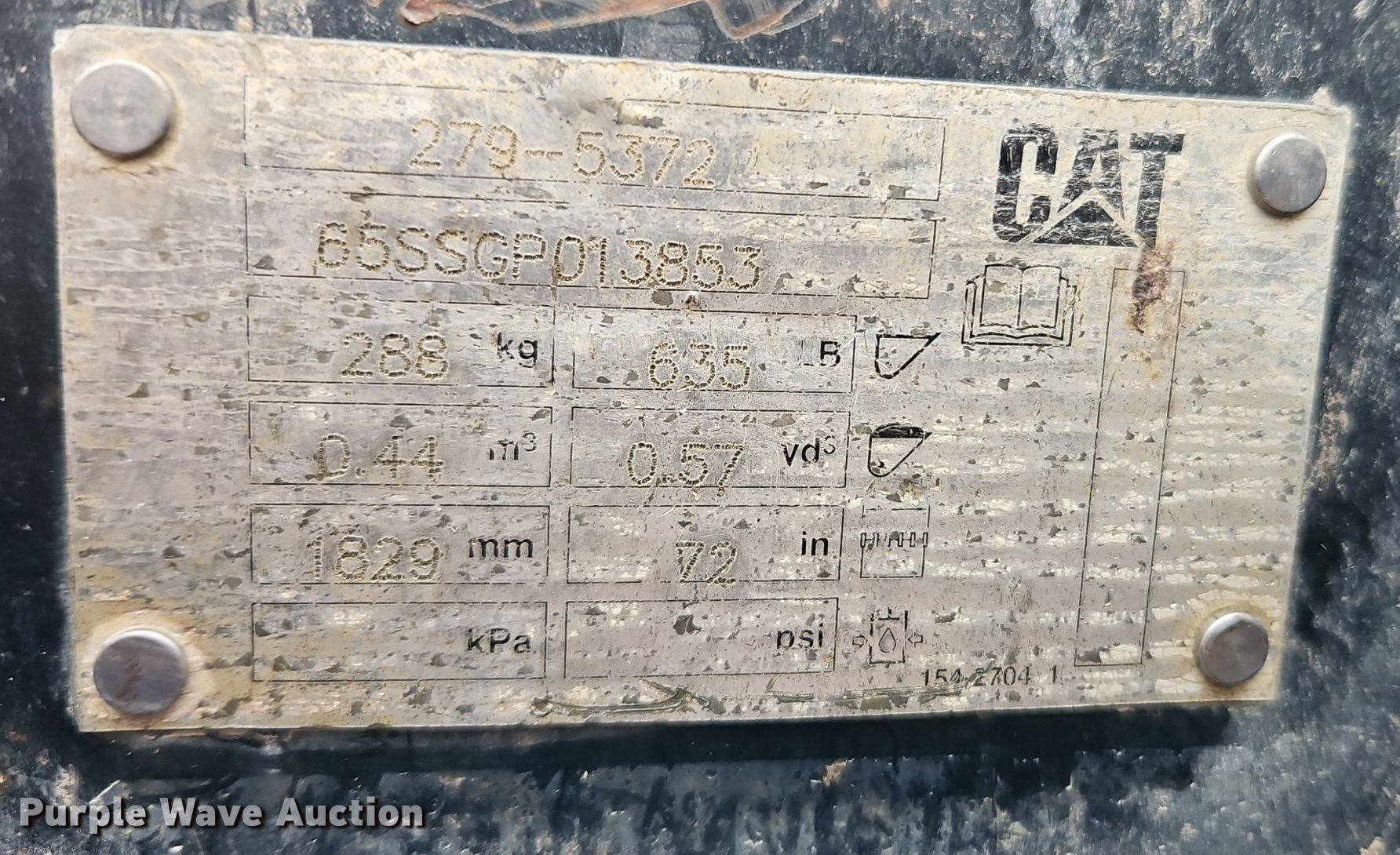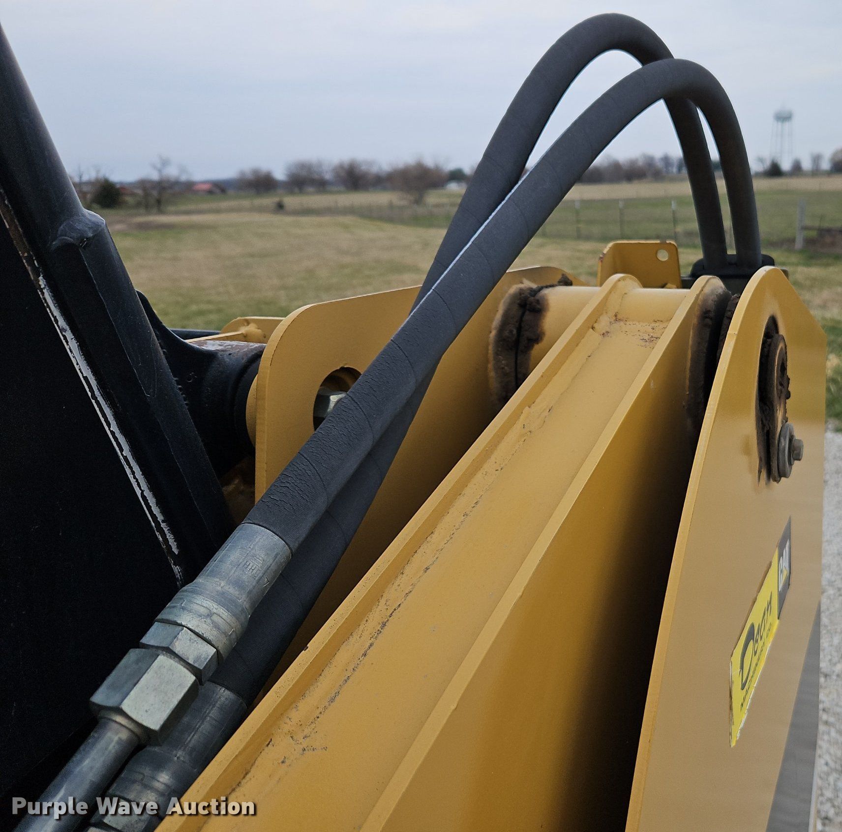2007 Caterpillar 246C skid steer loader. Hours: 3,347 on meter, Serial: CAT0246CJJAY00278. Engine Caterpillar, Cylinders: 4, Fuel type: Diesel. Transmission Hydrostatic. Operators station Enclosed cab, AC, Heat, Bucket control: Hand. Features Auxiliary hydraulics, Quick coupler: Hydraulic, Counter weights, Bucket Caterpillar 279-5372, Capacity: 0.57 cu.yd., Width: 74", Cutting edge: Bolt-on. Tires Size: 12-16.5. Jacobson excavating. Paola, KS 66071