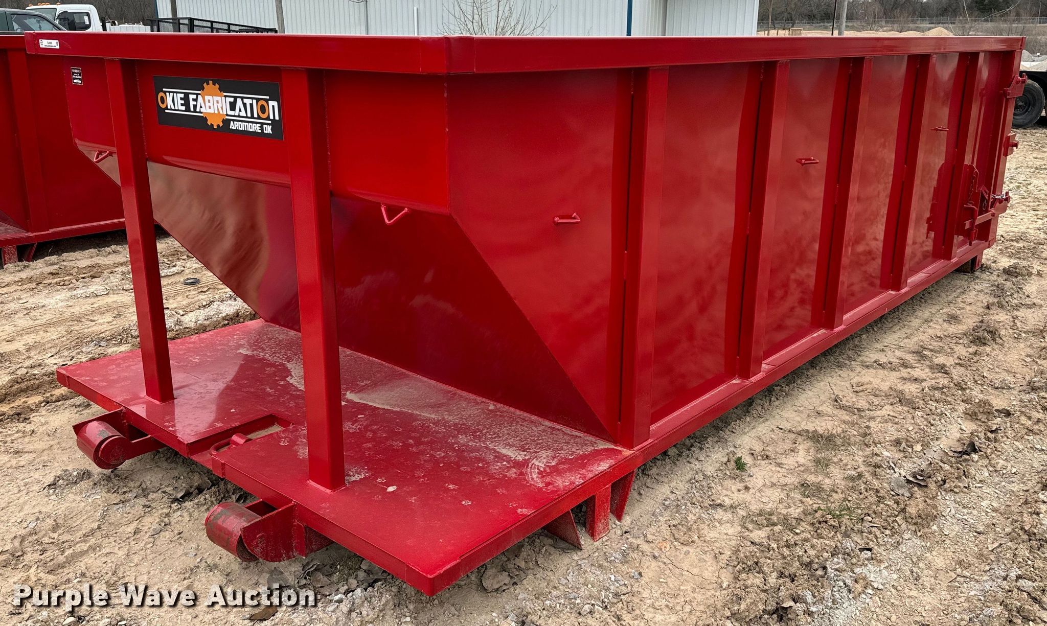 This Okie Fabrication roll-off container will sell to the highest bidder regardless of price.