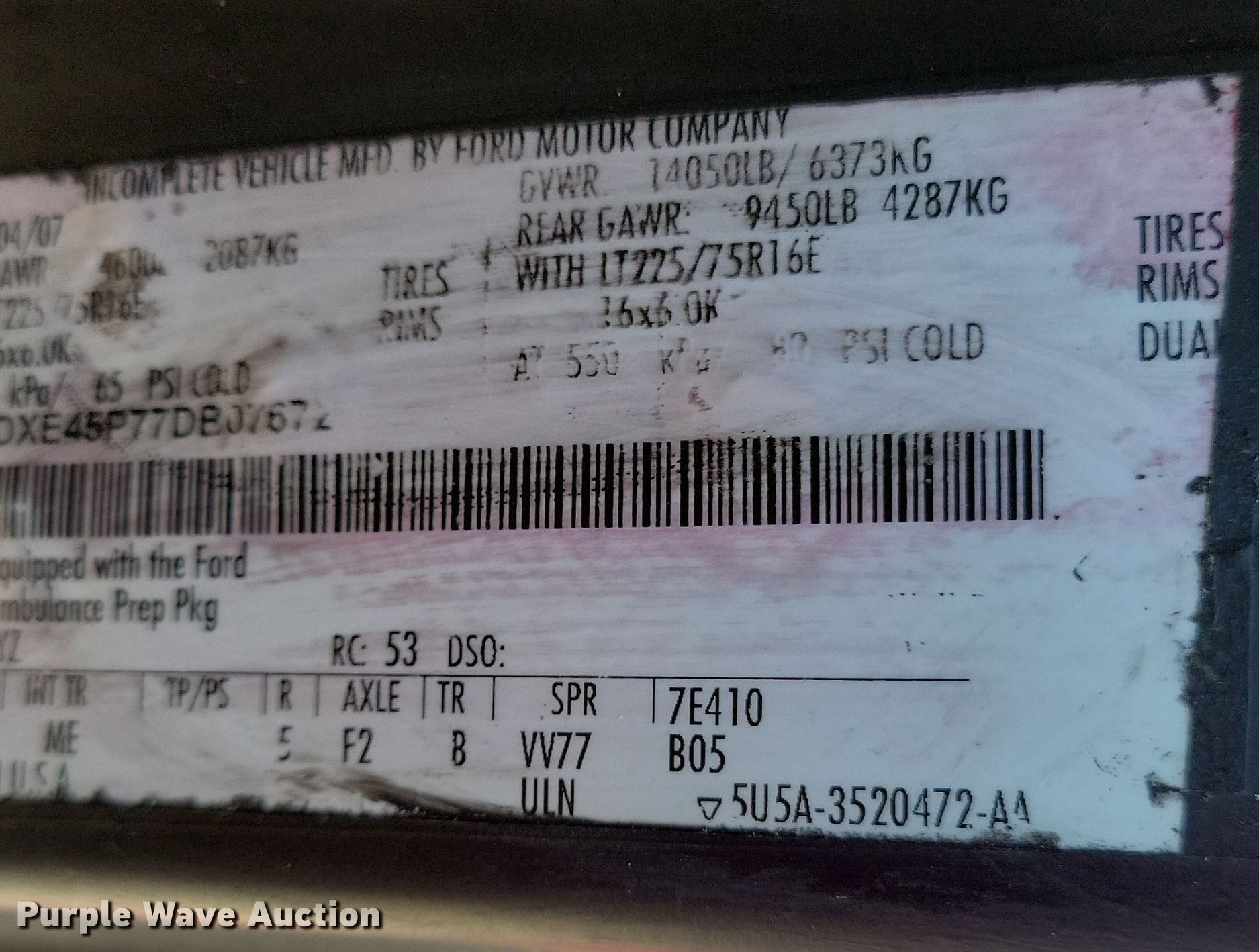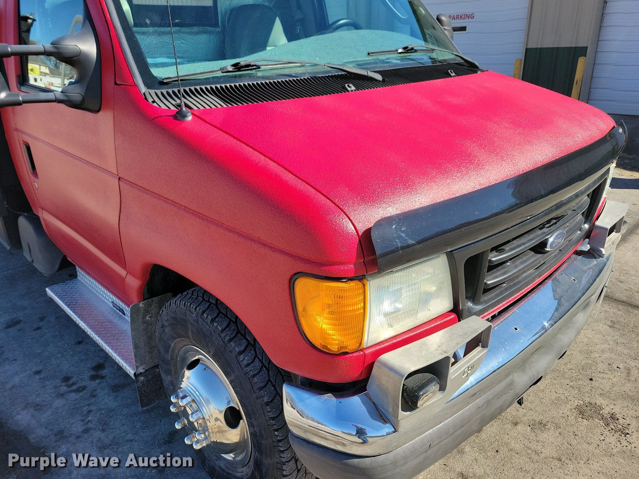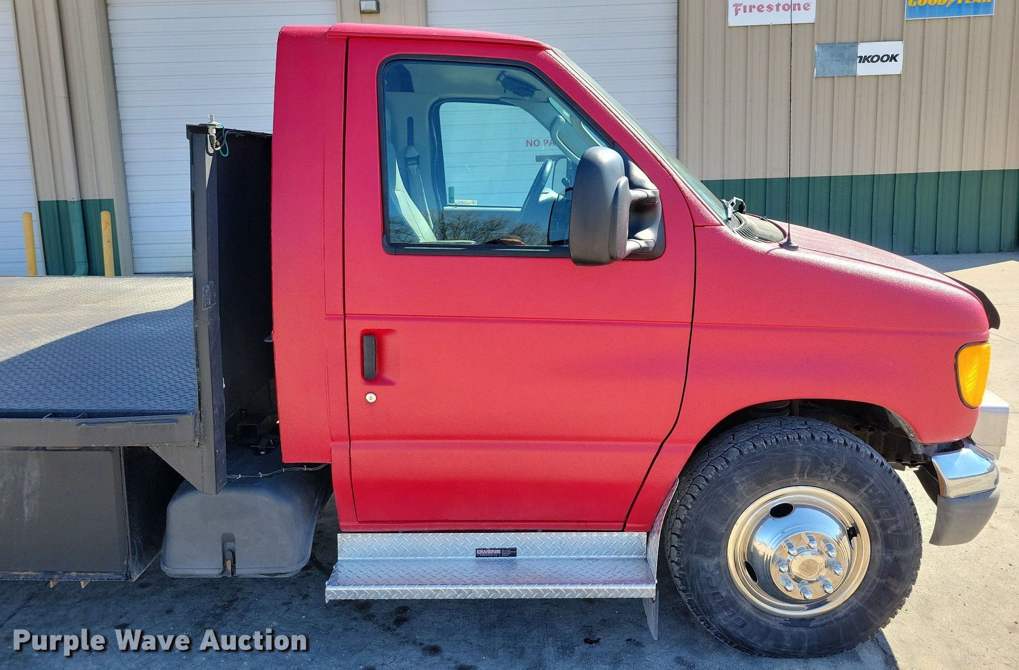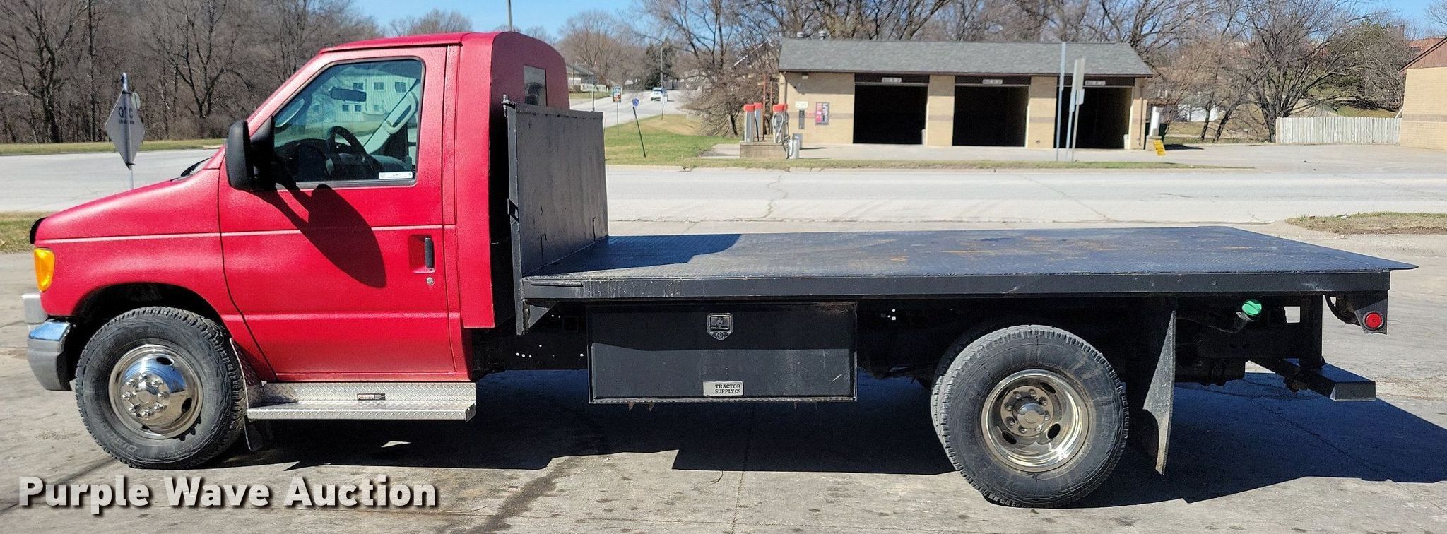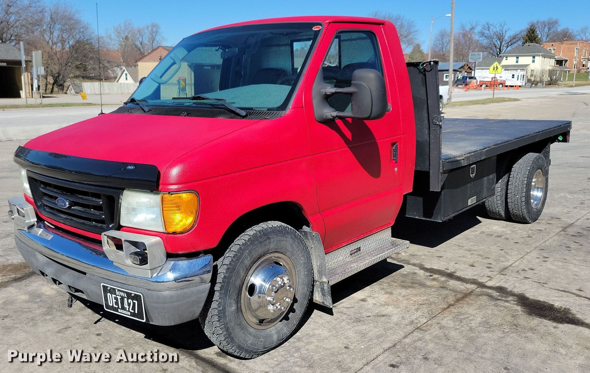 2007 Ford E450 flatbed van. Miles: 136,571 on odometer, VIN: 1FDXE45P77DB07672. Engine Powerstroke, Displacement: 6.0L V8 OHV, Cylinders: 8, Fuel type: Diesel. Transmission Automatic. Chassis Axles: Single, Suspension: Spring, Brakes: Hydraulic, GVWR: 14,050 lbs, Wheelbase: 158". Interior AC, Heat, Power windows, Power locks, Cruise control. Features Flatbed 12' 6" L x 95" W. Tires Size: LT235/85R16. Iowa title. Title distribution may be delayed up to 14 days from verification of funds. Midwest Services. Winterset, IA 50273