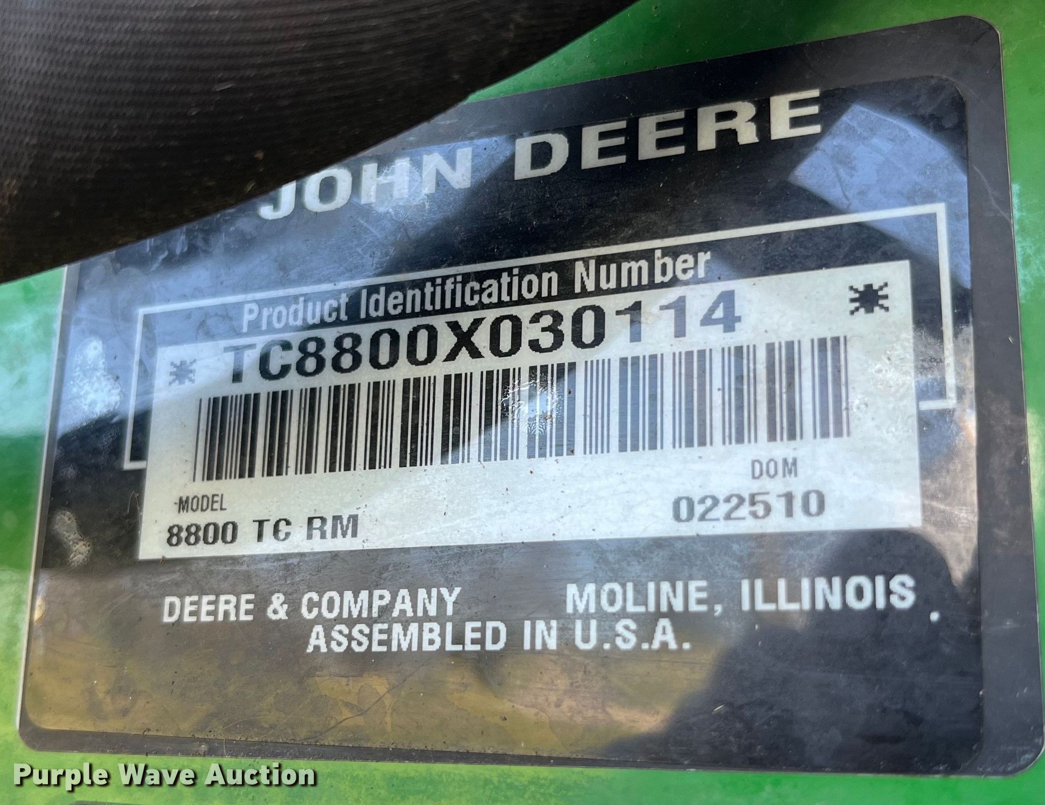 2010 John Deere 8800 TC RM lawn mower has sold in Stanberry, Missouri for $4620. Item LD9345 sold on April 10th, 2024.