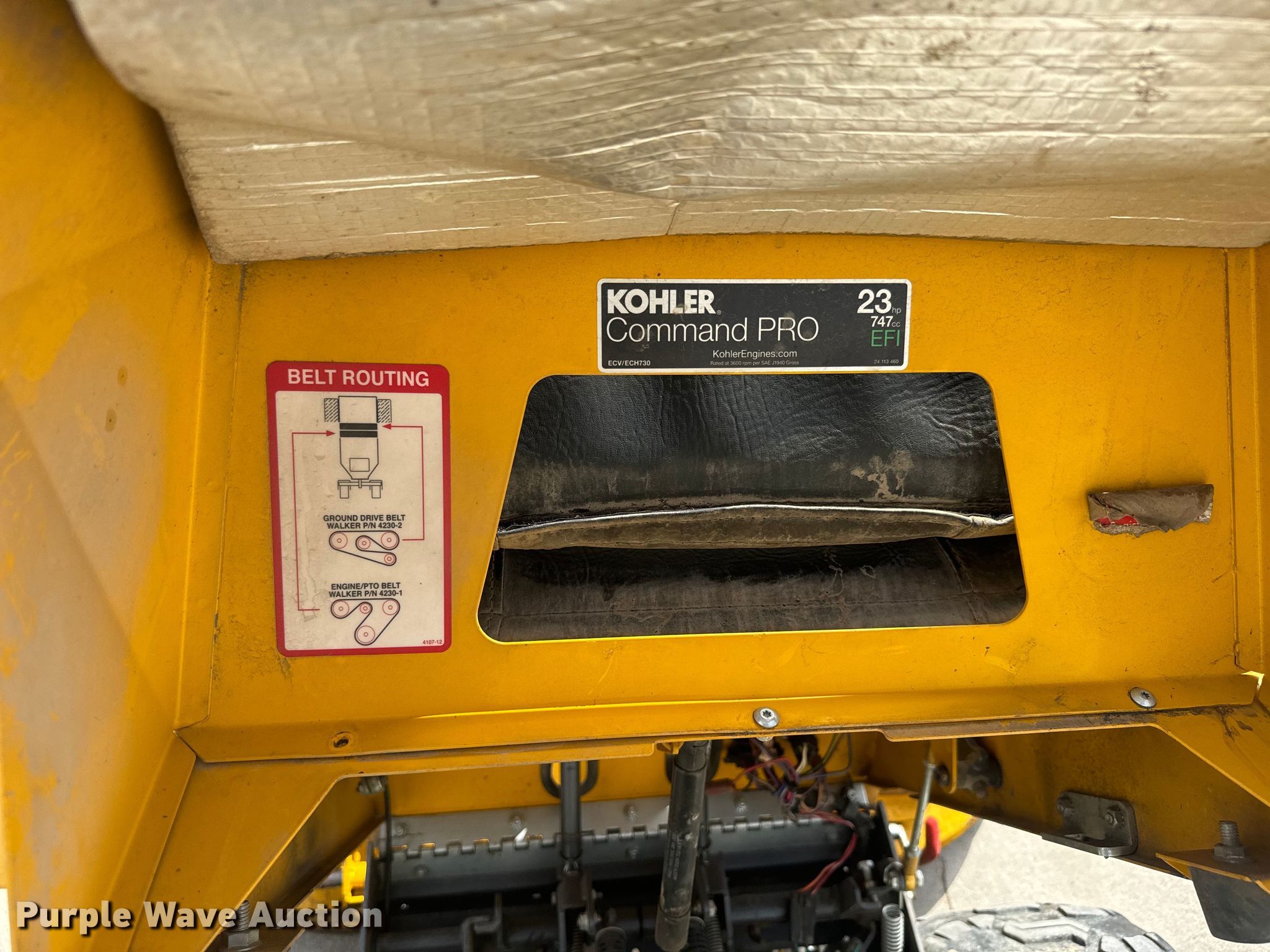 Walker MB23I-16 ZTR lawn mower. Hours: 1,656 on meter, Cutting width: 52", Serial: 162183. Engine Kohler Command Pro, Serial: 4927702201, Displacement: 747 cc, Cylinders: 2, Fuel type: Gas, HP: 23. Transmission Hydrostatic. KanEquip Inc.. 18035 U.S. 24. Wamego, KS 66547