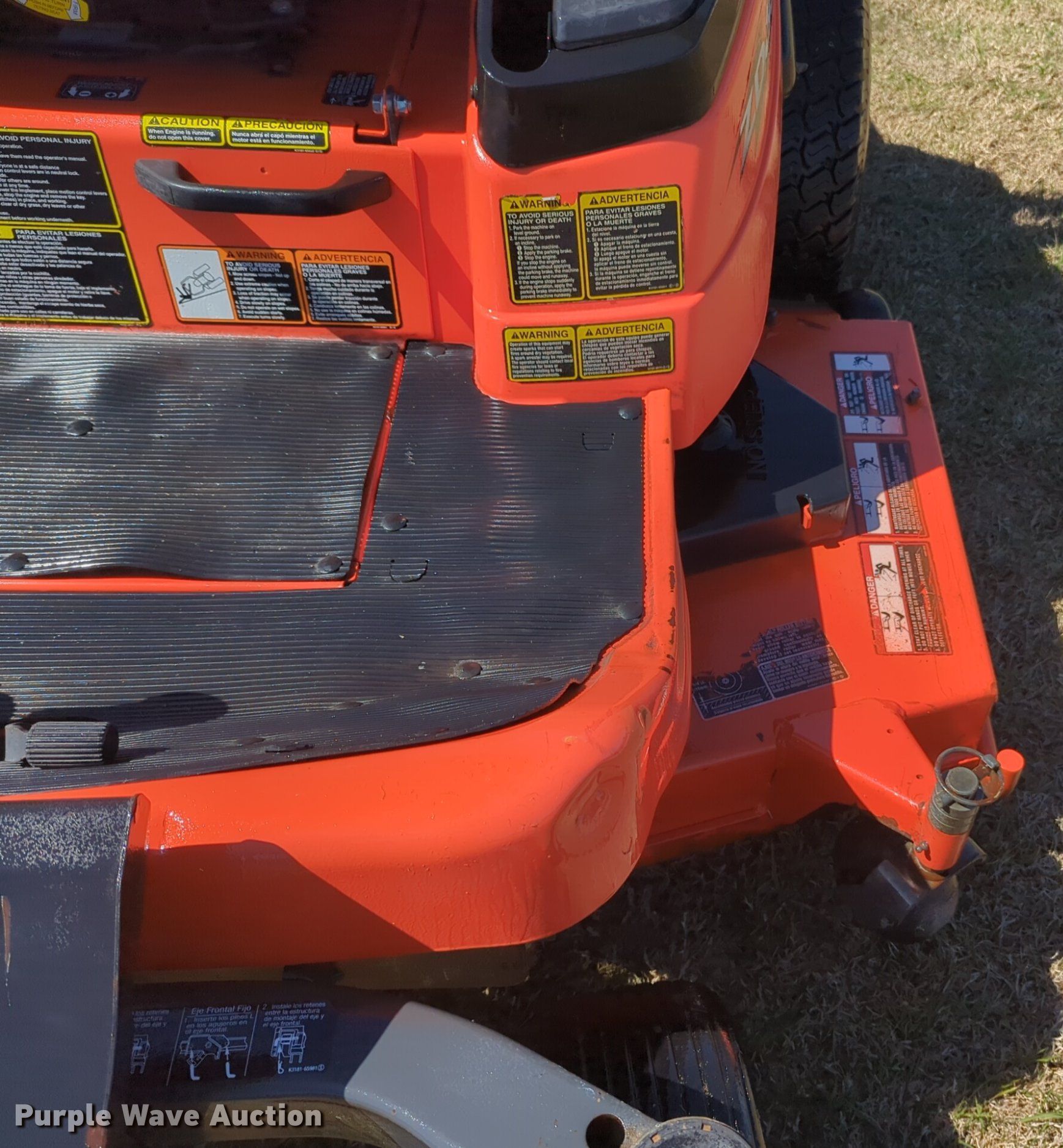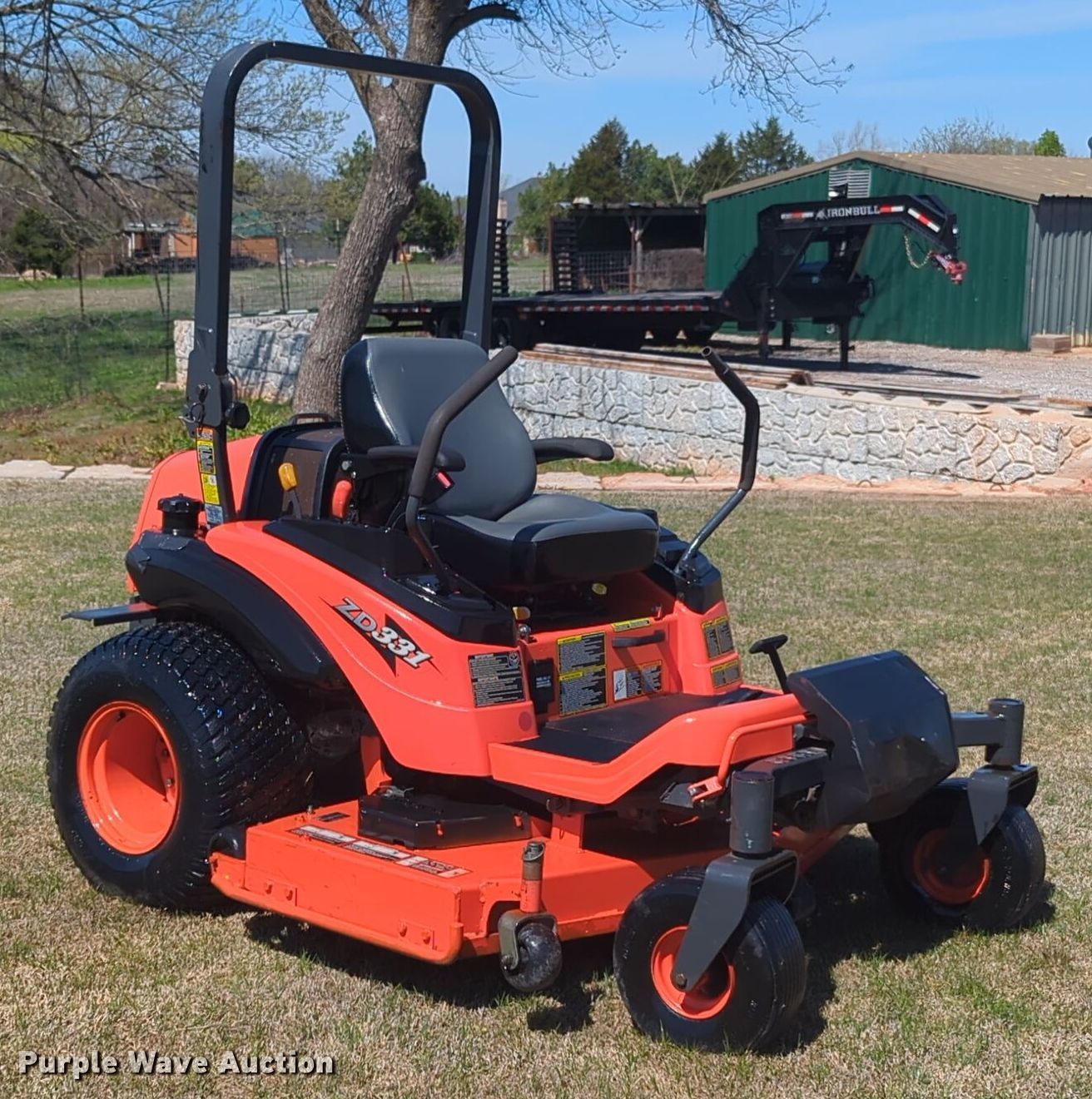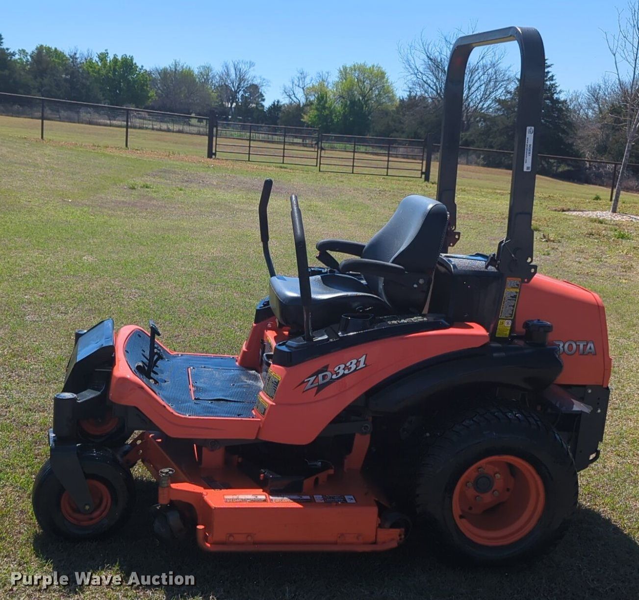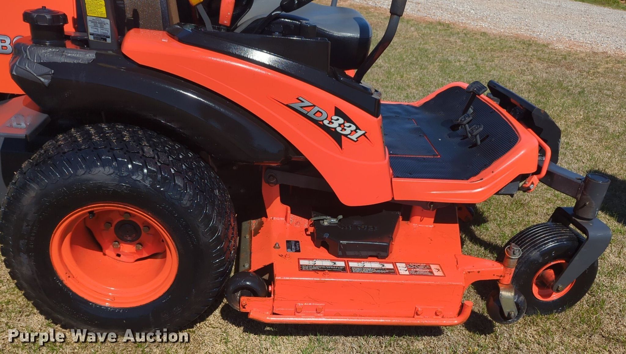 Purple Wave is selling a used Commercial Turf Mower in Oklahoma. This item is a Kubota ZD331 ZTR lawn mower with the following: Hours: 528 on meter, Cutting width: 60"