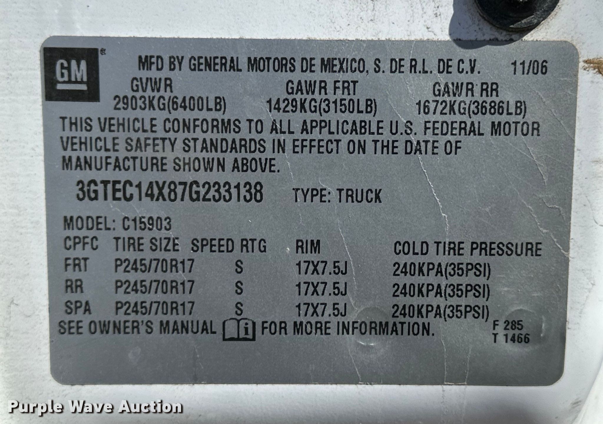 - VIN: 3GTEC14X87G233138
