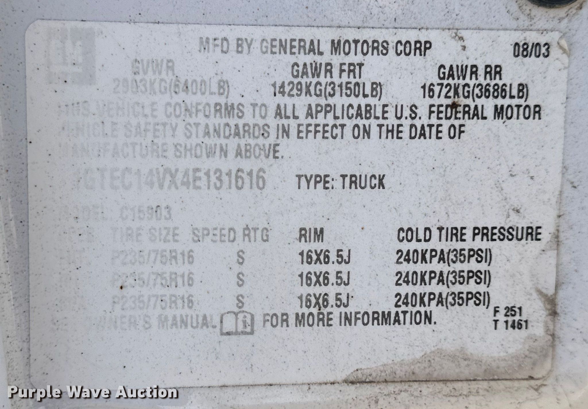 Purple Wave is selling a used 1/2 Ton Pickup or Van in Kansas. This item is a 2004 GMC Sierra 1500 pickup truck with the following: Miles: Unknown, VIN: 1GTEC14VX4E131616