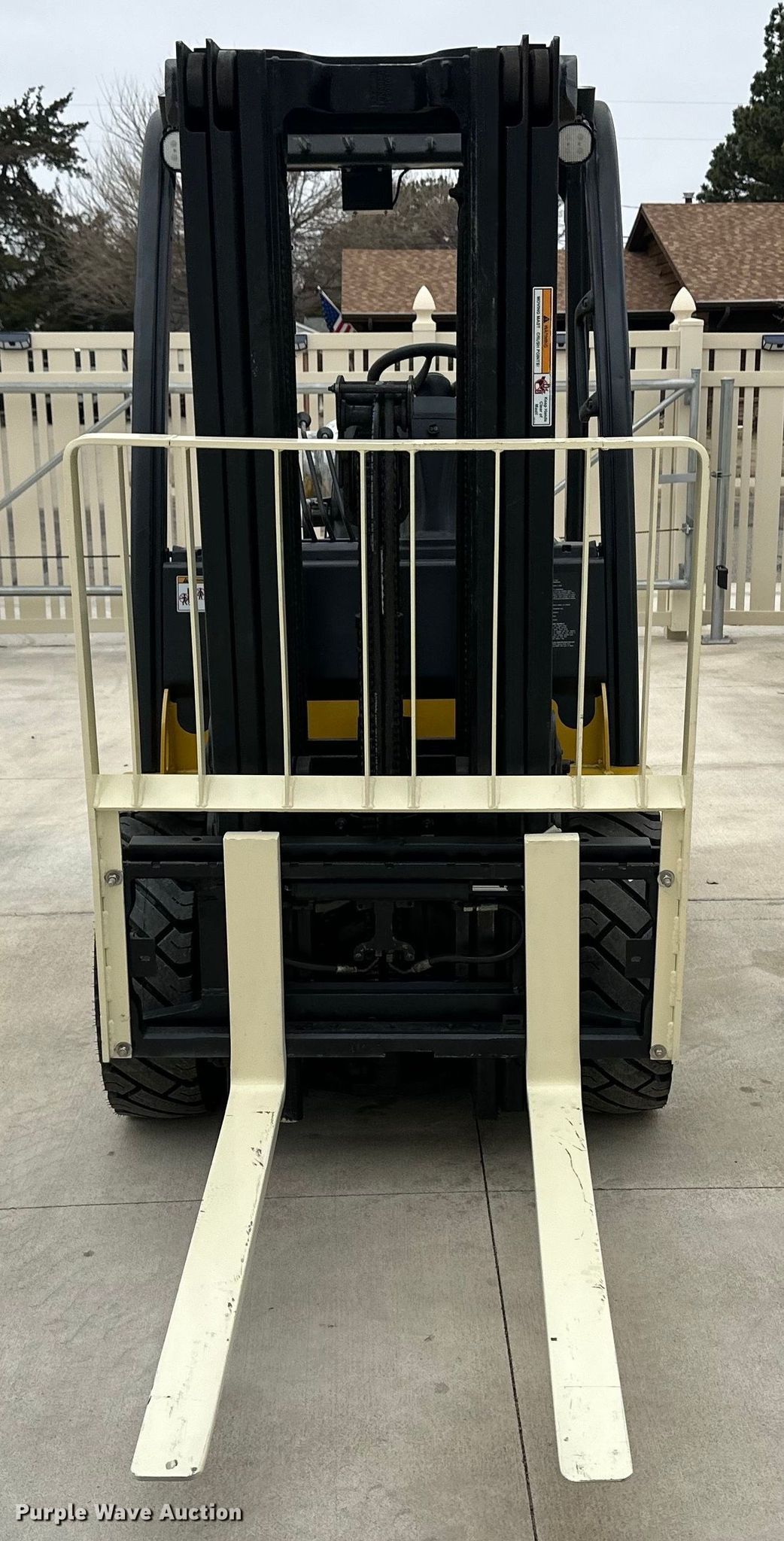 Yale 50VX forklift. Hours: 10,044 on meter. Engine Kubota, Displacement: 2.5L, Cylinders: 4, Fuel type: LPG LP bottle: Included. Transmission Powershift. Operators station Canopy. Features Mast stages: 3, Side shift, Mast tilt, Fork length: 40". Tires Front: 28x9-15, Rear: 6.50-10. Dodge City, KS 67801