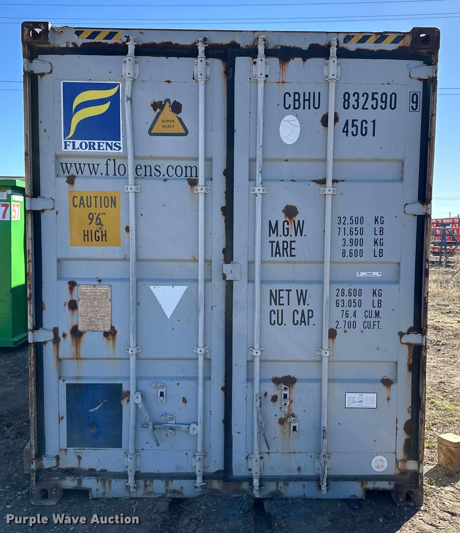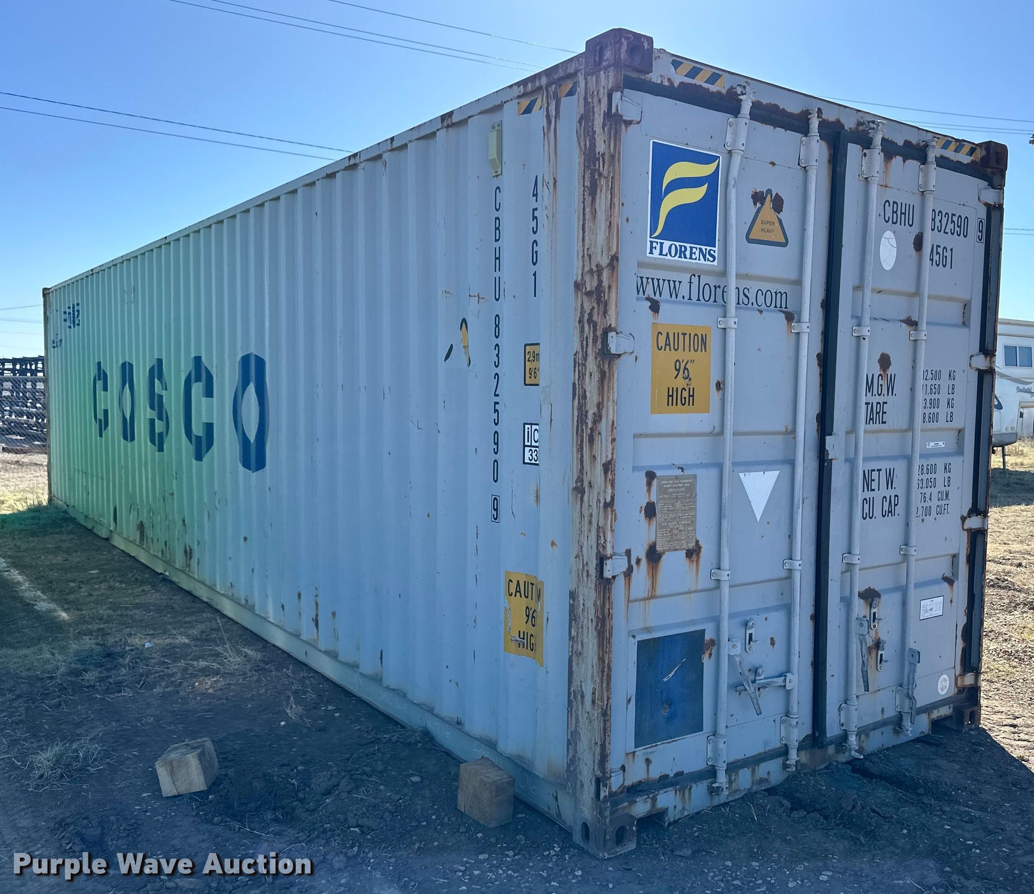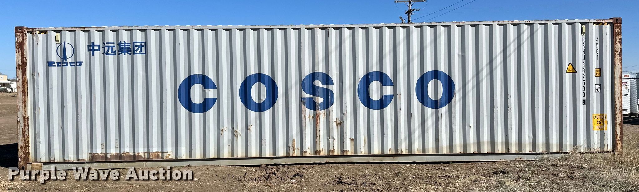 Purple Wave is selling a used Storage or Shipping Container in Kansas. This item is a Shipping container with the following: 40' L x 8' W x 9' 6" H