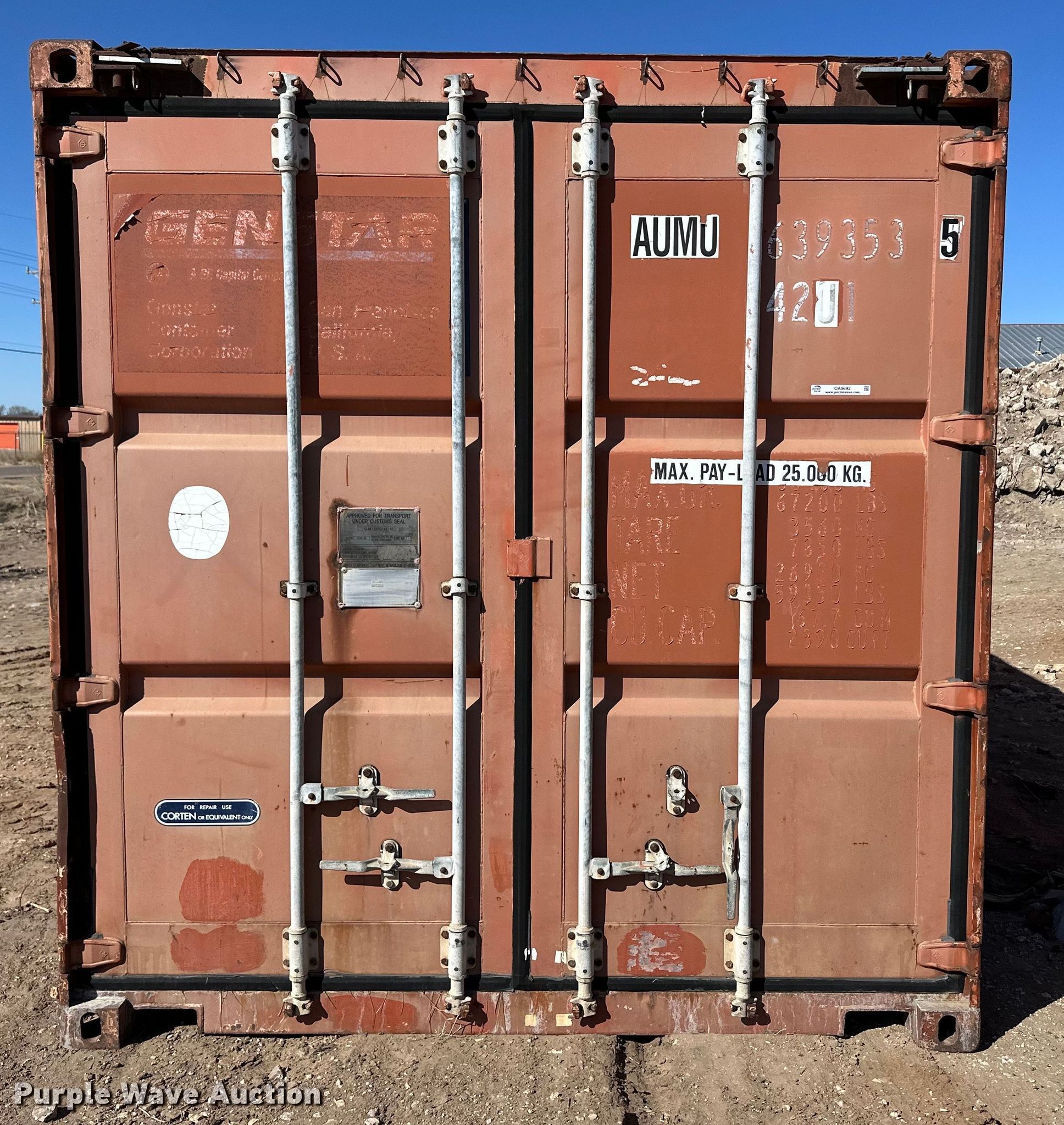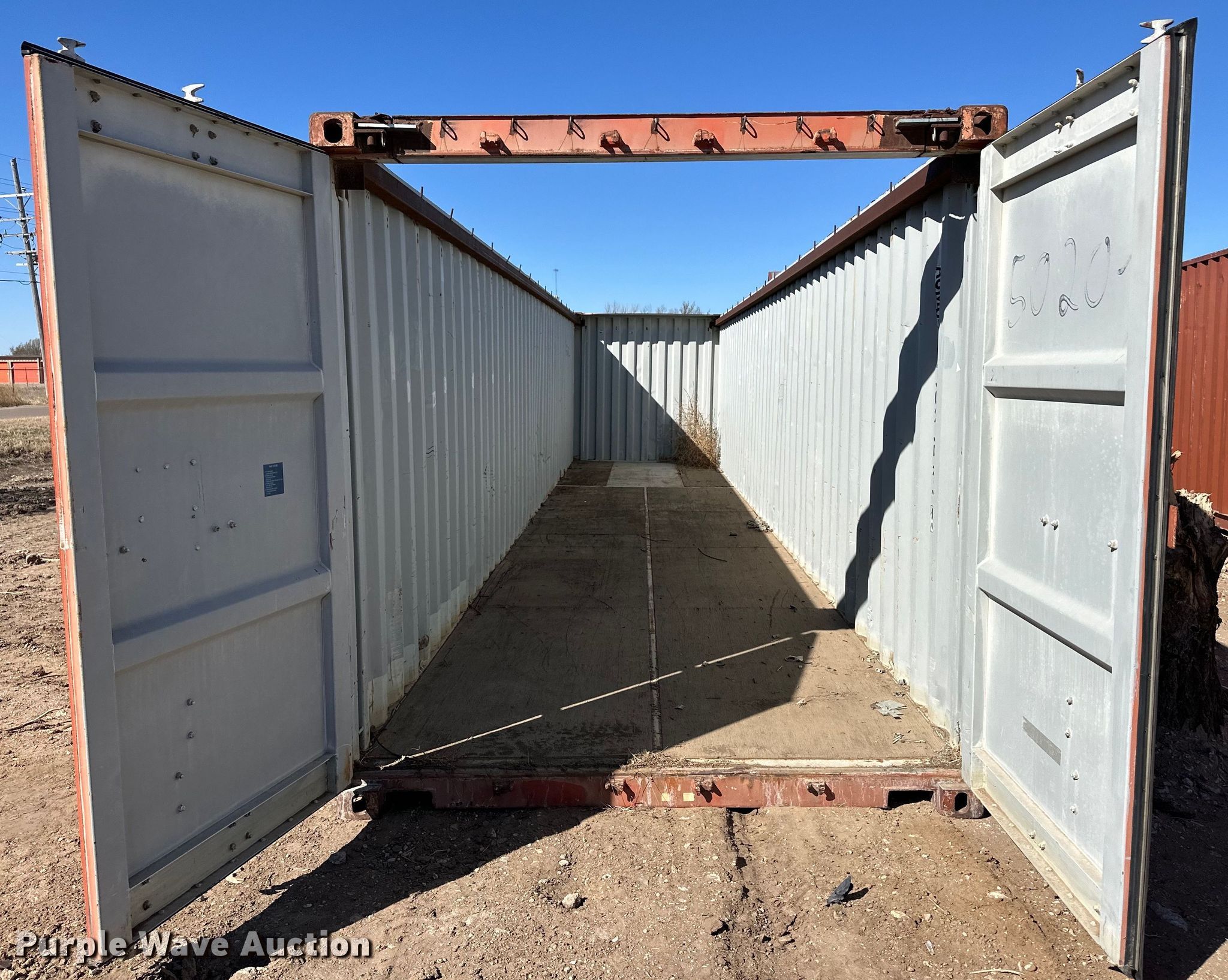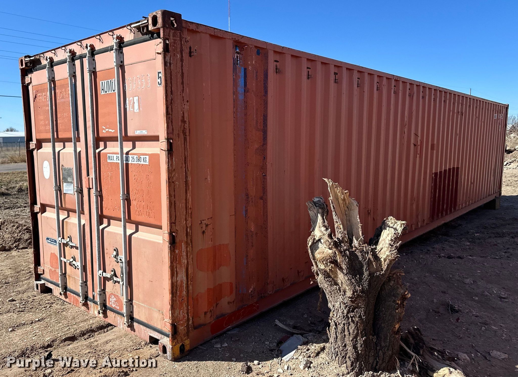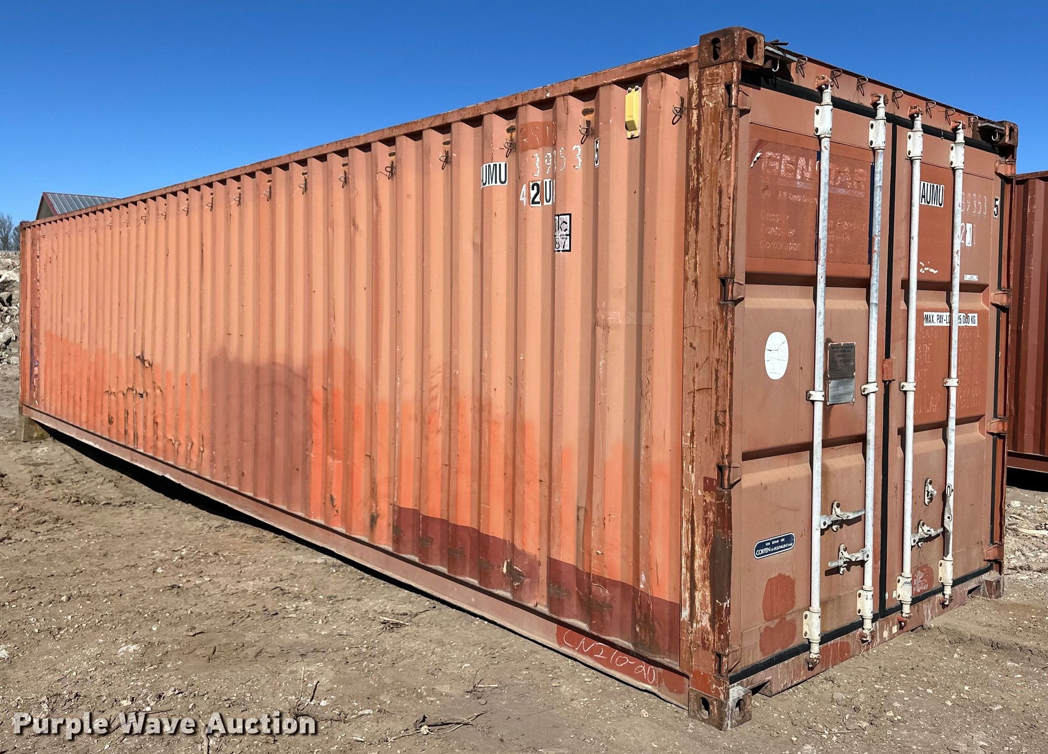 Purple Wave is selling a used Storage or Shipping Container in Kansas. This item is a Shipping container with the following: 40' L x 96" W x 8' 6" H, Removable front crossmember