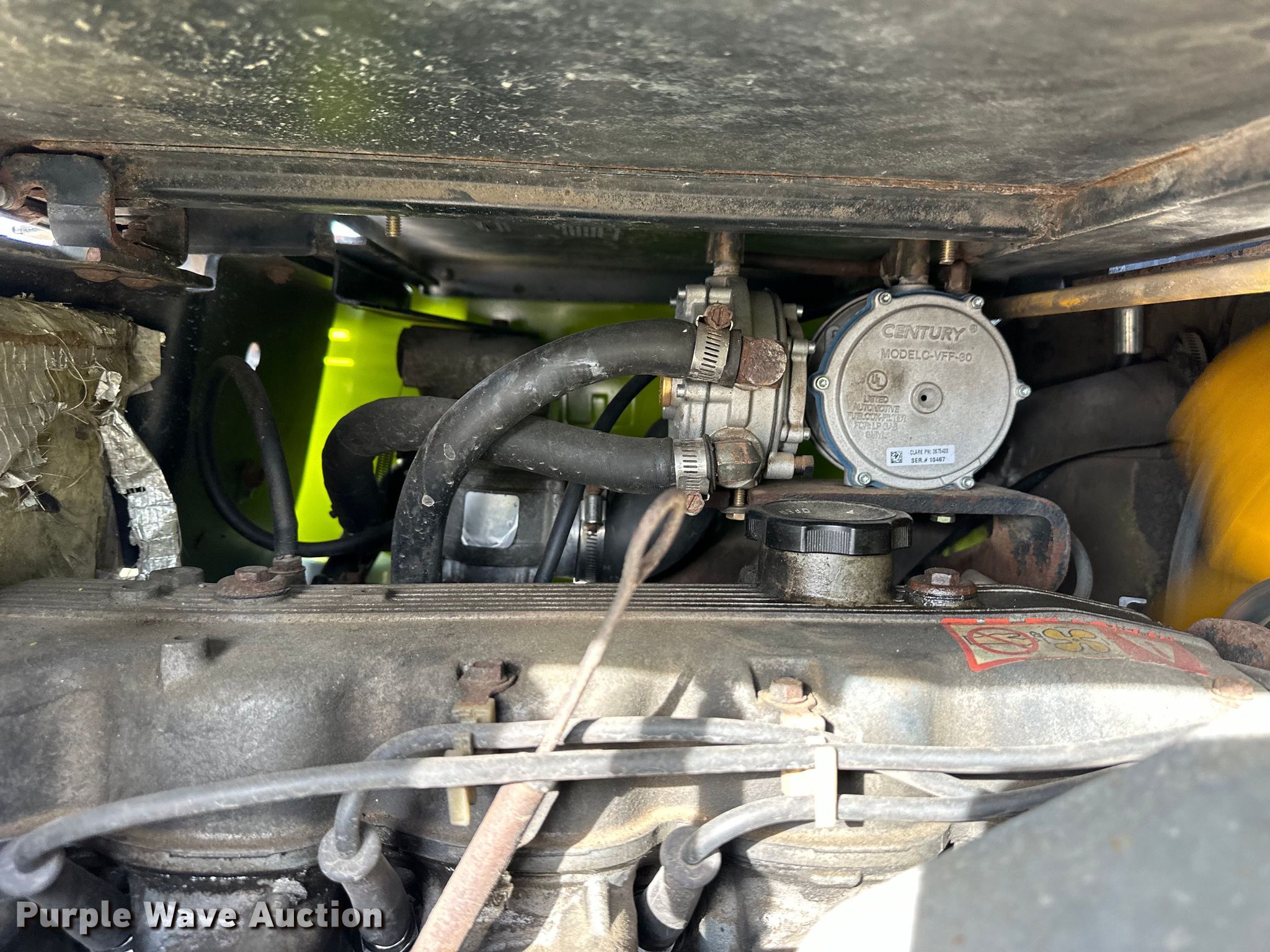 Clark GPS15 forklift. Hours: 4,624 on meter, Serial: GP127-0198-9130KF. Engine Cylinders: 4, Fuel type: LPG LP bottle: Not included. Transmission Powershift. Operators station Canopy. Features Maximum lift capacity: 2,450 lbs, Maximum lift height: 188", Mast stages: 3, Side shift, Mast tilt, Fork length: 42". Tires Front: 21x8-9, Rear: 18x7-8, Solid. Lift Parts Service. 4265 Chambers Drive. Garden City, KS 67846