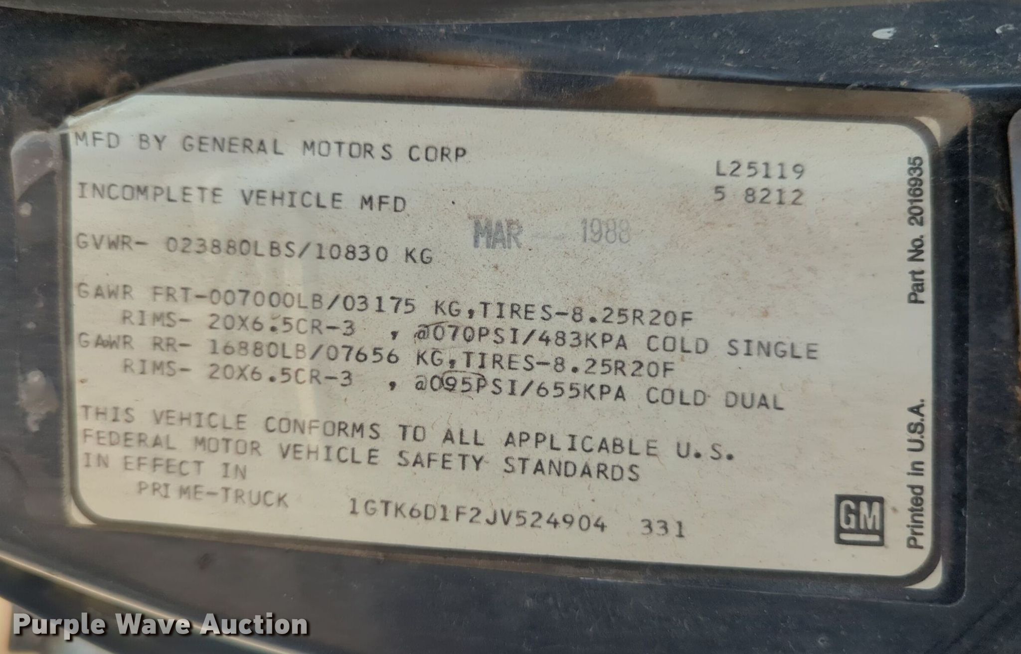 Purple Wave is selling a used Refrigerated Truck in Oklahoma. This item is a 1988 GMC C6000 refrigerated truck with the following: Miles: 107,378 on odometer, VIN: 1GTK6D1F2JV524904