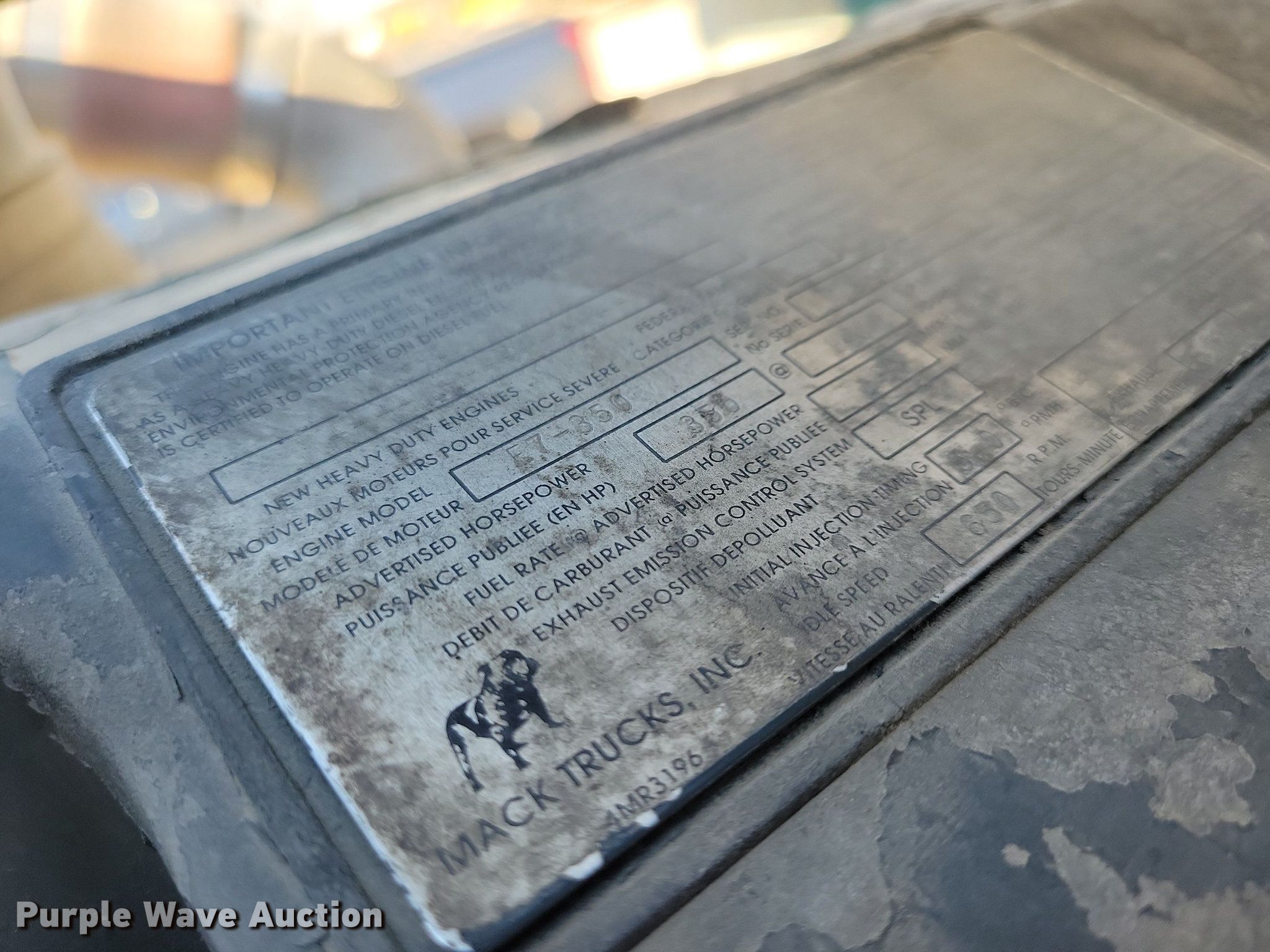 1994 Mack CH613 semi truck. Miles: 111,808 on odometer, Hours: 12,428 on meter, VIN: 1M1AA13Y7RW039526. Engine Mack E7-350, Serial: 4G2460, Displacement: 12.0L, Cylinders: 6, Fuel type: Diesel, HP: 350, Engine brake. Transmission Eaton Fuller, Manual, Speed: 10. Chassis Axles: Tandem, Differential lock: Inter-axle, Suspension: Air, Brakes: Air, PTO, Wet kit. Interior AC, Heat, Heated mirrors, Cruise control, Air ride cab. Features Deck plate: Aluminum, Fifth wheel type: Air operated, Sliding, Fuel tank: Dual. Tires Size: 11R22.5. Iowa title. Title distribution may be delayed up to 14 days from verification of funds. Corell Contractor Inc. 1300 Lincoln Street. West Des Moines, IA 50265