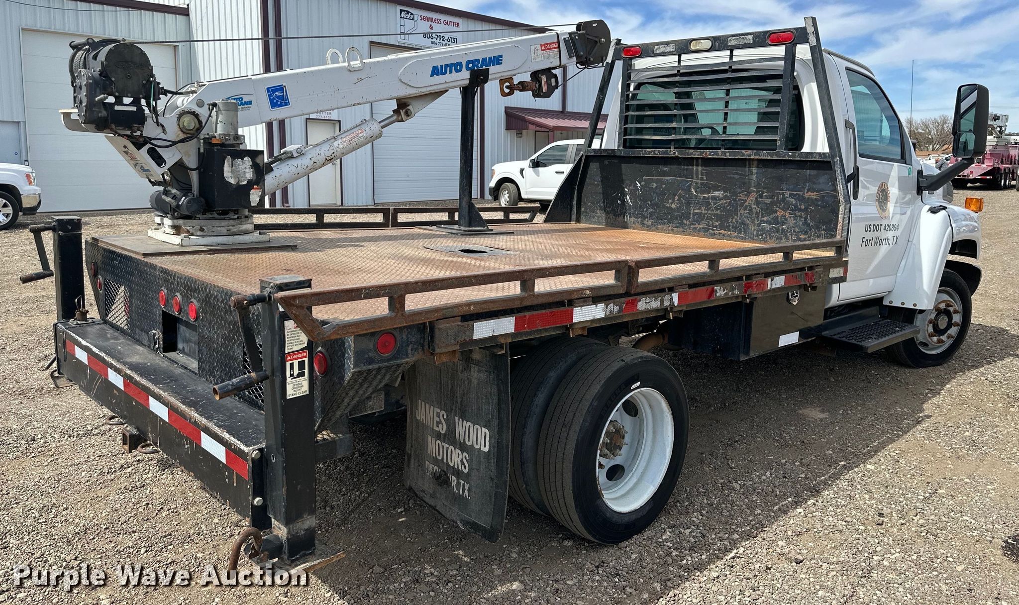 2006 Chevrolet C4500 flatbed truck. Miles: 367,768 on odometer, VIN: 1GBE4C1286F410969. Engine Displacement: 6.6L, Cylinders: 8, Fuel type: Diesel. Transmission Automatic. Chassis Axles: Single, Suspension: Spring, Brakes: Hydraulic, GVWR: 17,500 lbs. Interior AC, Heat, Cruise control. Features Flatbed 12' L x 96" W, Crane Auto Crane 6006EH, Maximum boom length: 20' 4" Maximum lift capacity: 6,000.. Tires Size: 225/70R19.5. Notes Dash warning indicator: Check engine, Windshield chipped or cracked, Unknown operating condition of Auto Crane 6006EH. Texas title. Seller is a Texas licensed motor vehicle dealer. The buyer may be required to pay sales tax and/or registration fees to the dealer prior to taking possession. Title will be assigned and distributed by the dealer. Please contact the seller for distribution questions. Specialty Trucks of Lubbock. 839 US-62. Wolfforth, TX 79382