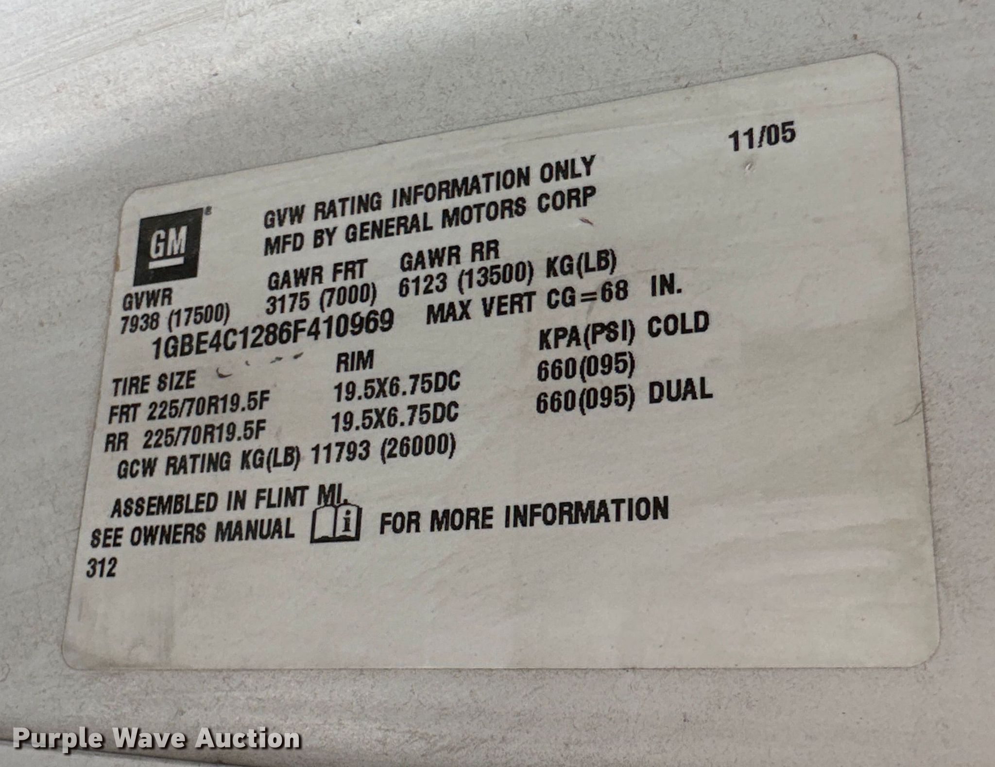 - VIN: 1GBE4C1286F410969