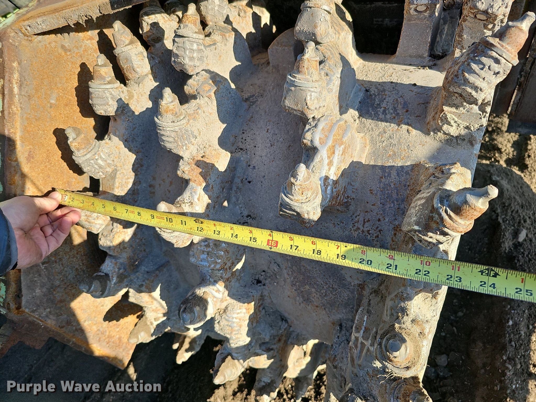 Bart Mill 150 milling machine. Hours: 2,475 on meter, Serial: 151089102. Engine Cylinders: 4, Fuel type: Diesel. Transmission Hydrostatic. Features Cutting head Width: 24", Diameter: 35", Teeth, Carbide. Tires Size: 28x10x22, Solid. Midwest Coatings. 1425 280th St. Modale, IA 51556