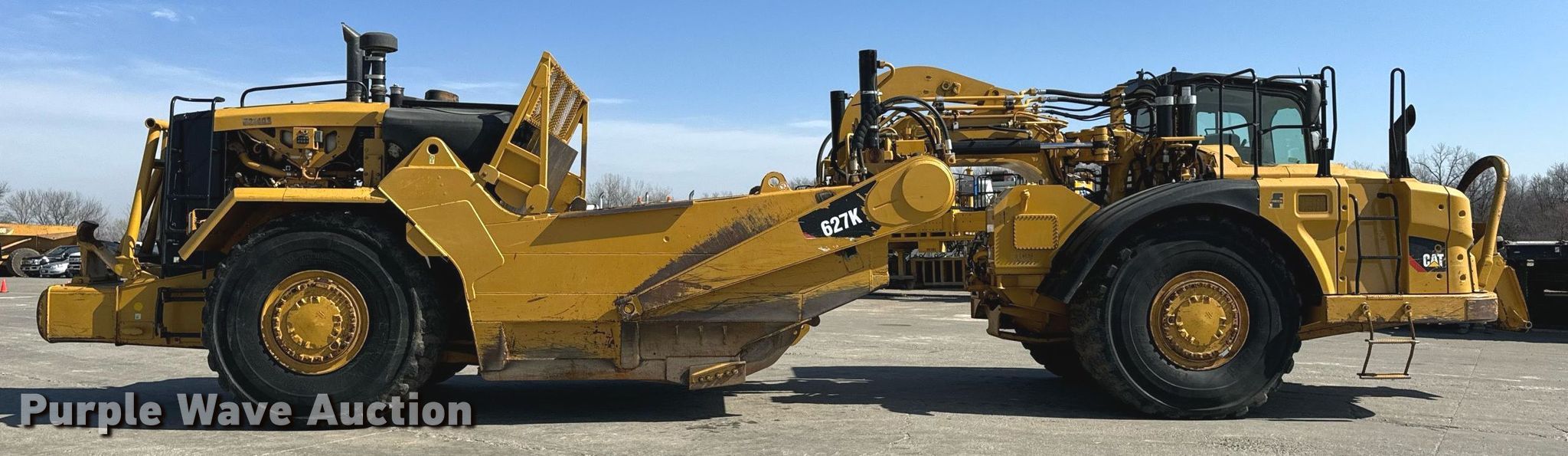 Purple Wave is selling a used Conventional Scraper in Missouri. This item is a 2014 Caterpillar 627K conventional scraper with the following: Hours: 9,799 on meter, Serial: CAT0627KKWTC00145, Unit #: 72-403