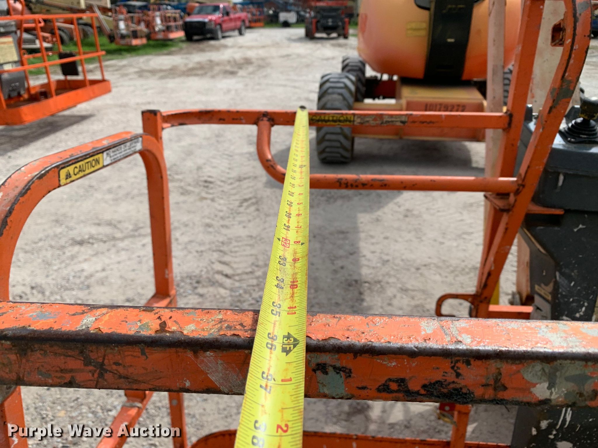 2013 JLG 600AJ boom lift. Hours: 1,374 on meter, Serial: 0300175942. Engine Deutz D2011L04, Displacement: 3.1L, Cylinders: 4, Fuel type: Diesel, kW: 37. Features Articulating boom, Rough terrain, Maximum lift capacity: 500 lbs, Maximum reach length: 60', Maximum lift height: 60', Hydraulic extendable jib, Hydraulic leveling, Platform: 96" L x 36" W, AC power outlet, Air outlet, Controls: Platform, Ground, Platform extensions: Powered, Platform rotation: Hydraulic. Tires Tire size: 355/55D625 NHS. Plunkett Enterprises. 965 South Front Street. Angleton, TX 77515