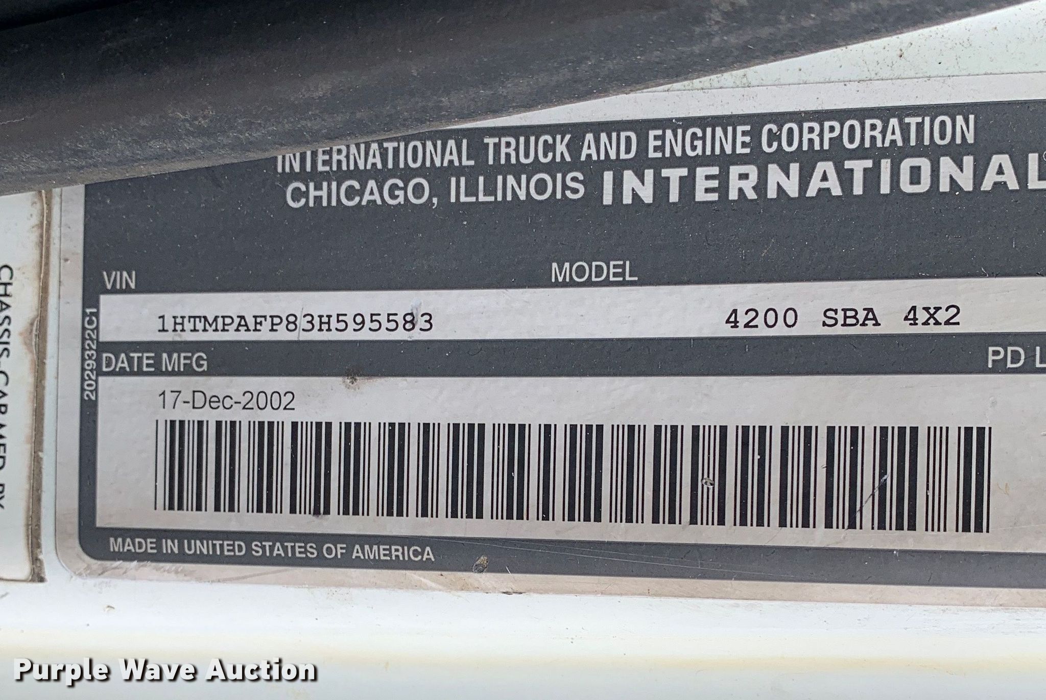 Purple Wave is selling a used Bucket Truck in Texas. This item is a 2003 International 4200 forestry bucket truck with the following: Mileage: 0 on odometer, Actual mileage unknown, Hours: 11,446 on meter, VIN: 1HTMPAFP83H595583