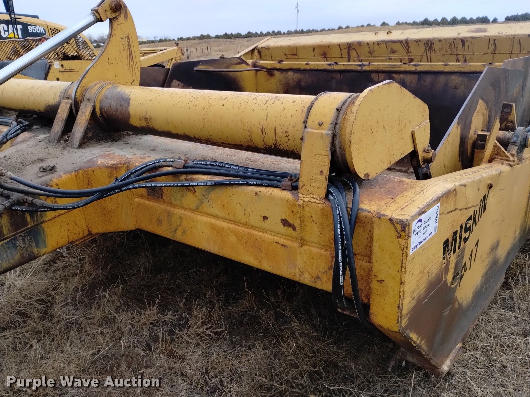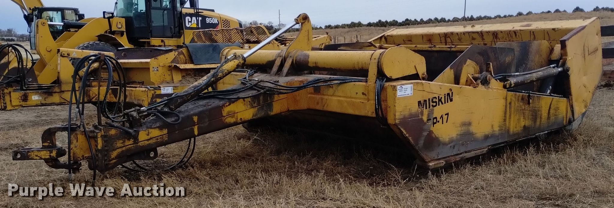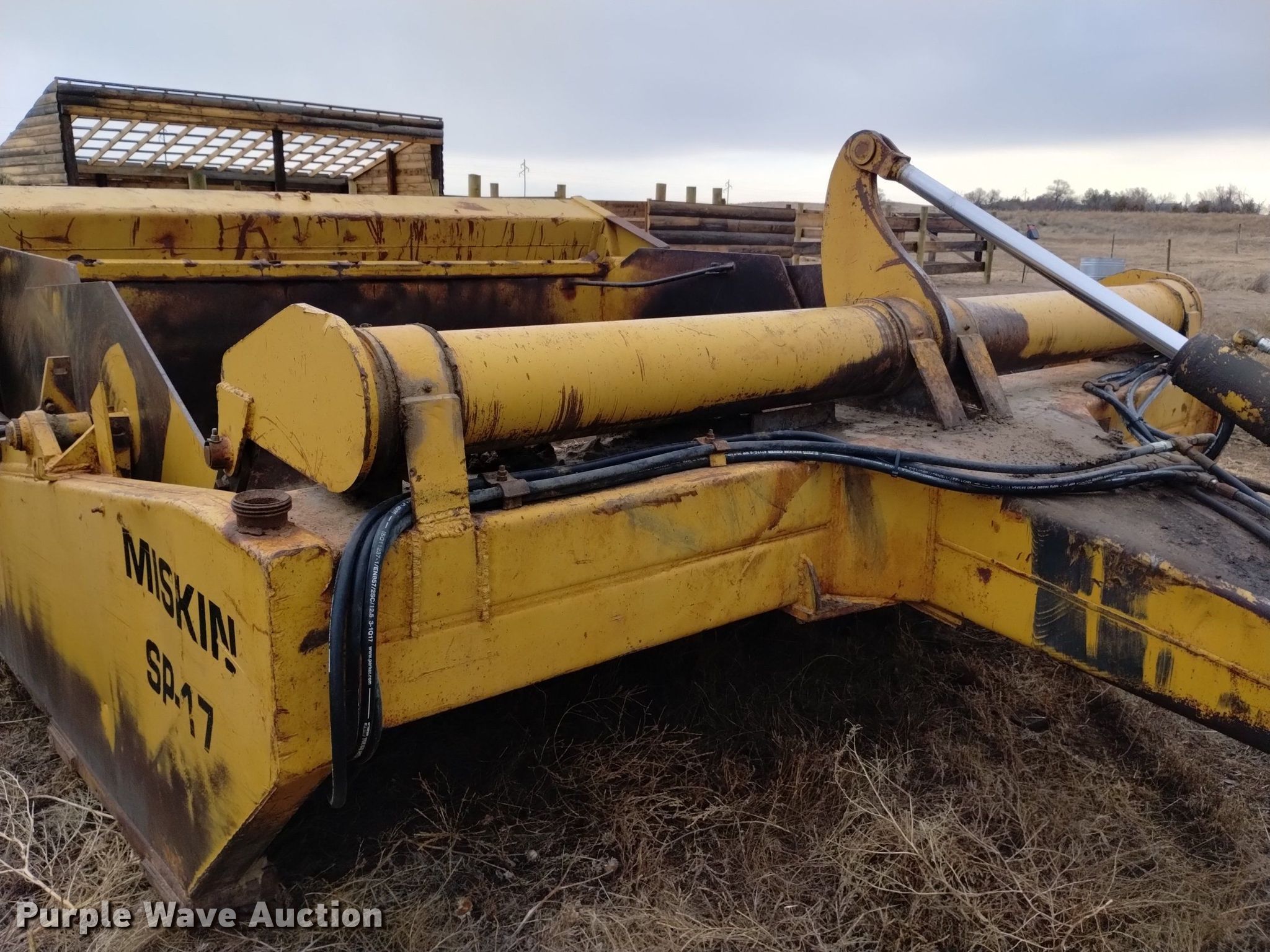 Purple Wave is selling a used Pull Type Scraper in Nebraska. This item is a Miskin SP-17 scraper with the following: Bowl capacity: 17 cu.yd., Hydraulic lift