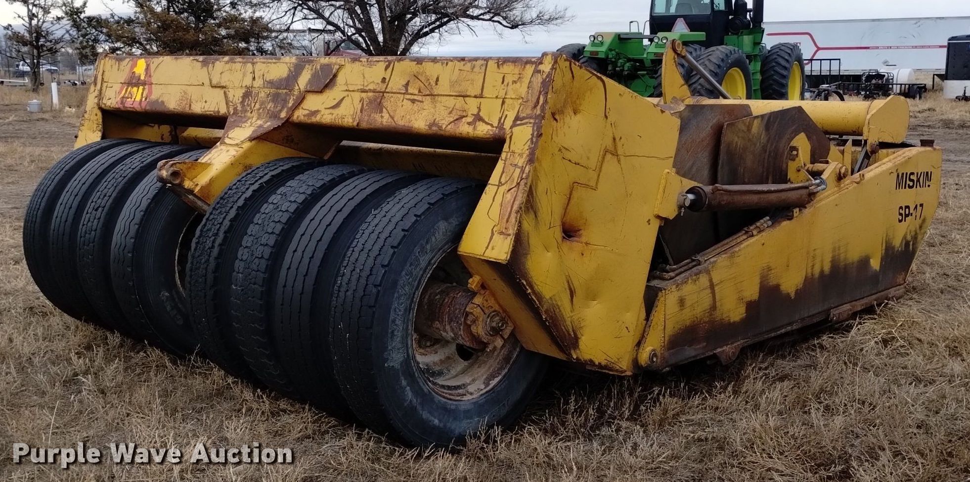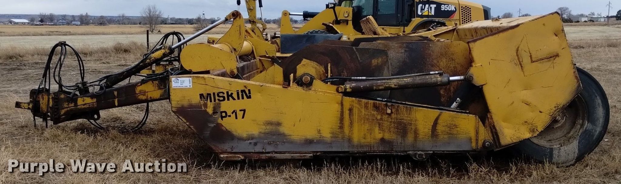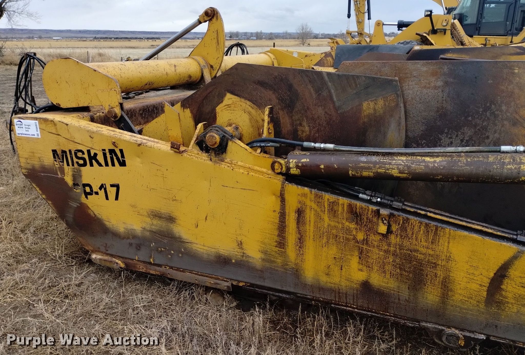 Purple Wave is selling a used Pull Type Scraper in Nebraska. This item is a Miskin SP-17 scraper with the following: Bowl capacity: 17 cu.yd., Hydraulic lift