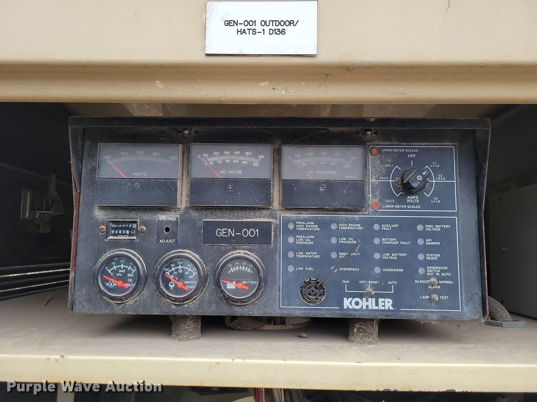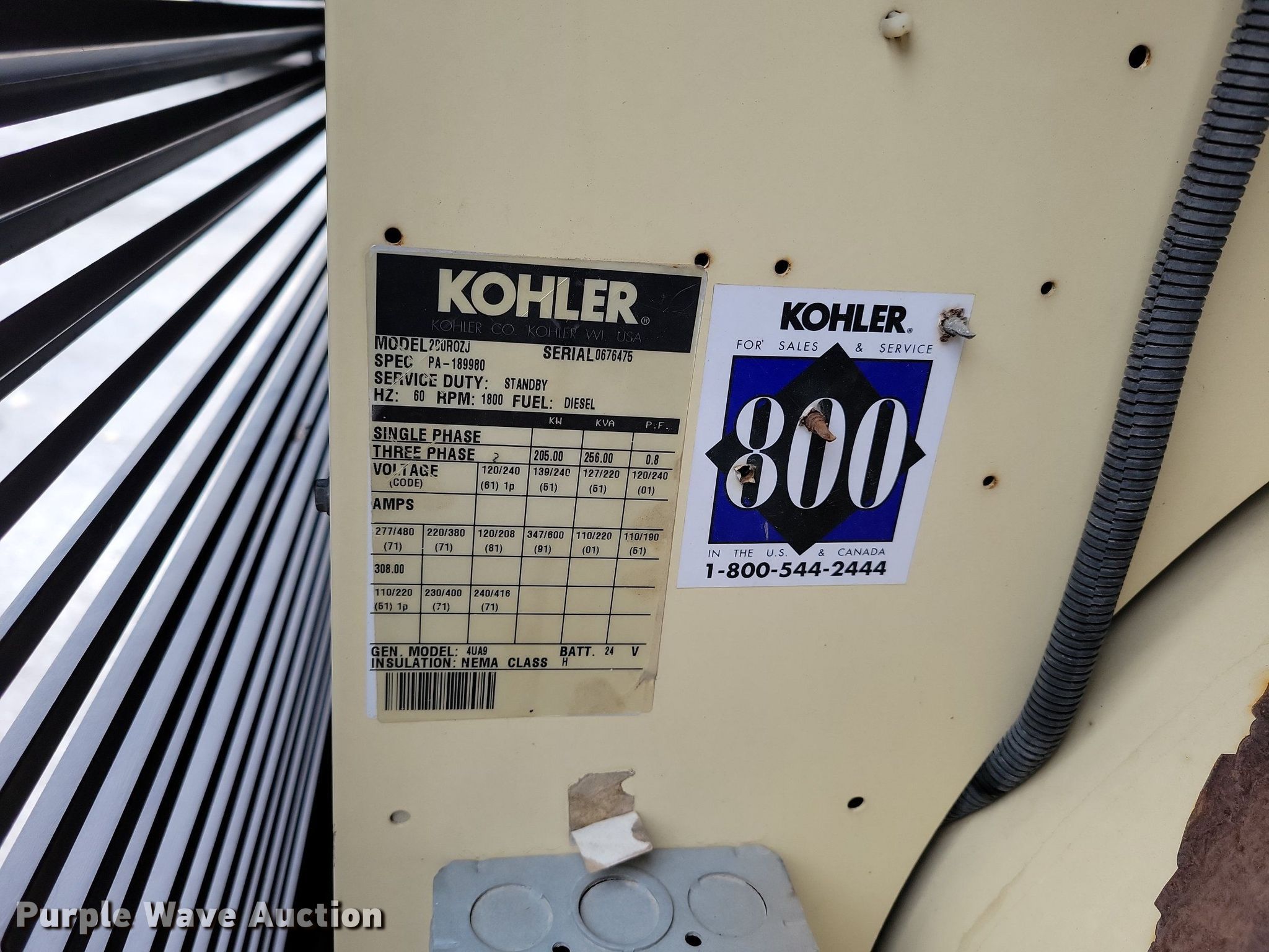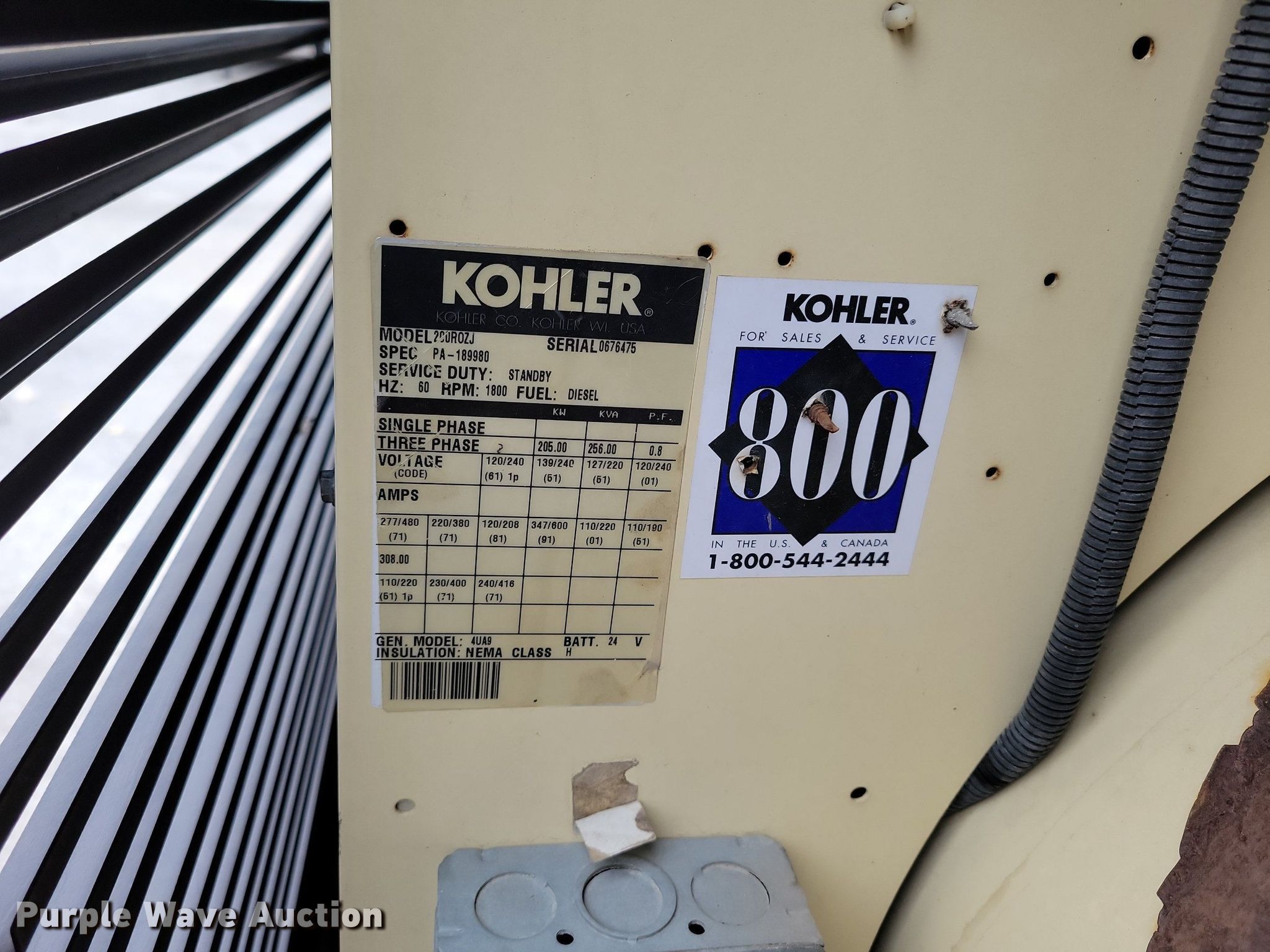 Purple Wave is selling a used Generator Set in Missouri. This item is a Kohler 200R0ZJ generator with the following: Hours: 702 on meter, Serial: 0676475