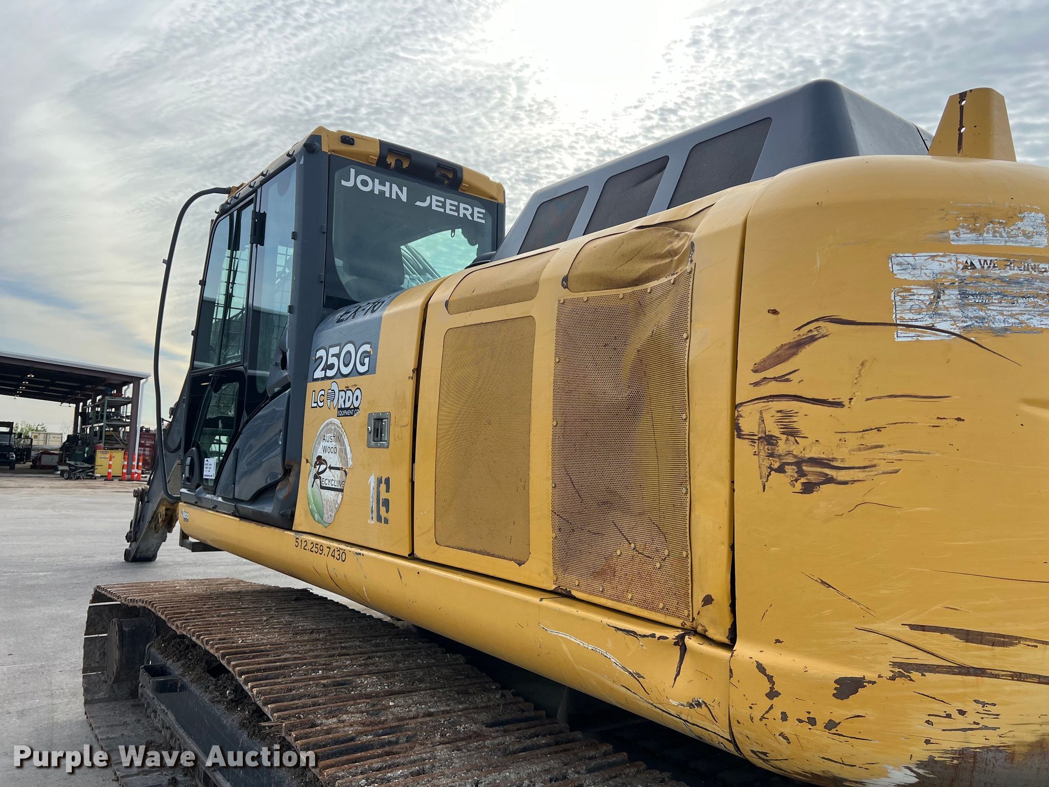 Purple Wave is selling a used Hydraulic Excavator in Texas. This item is a 2011 John Deere 250G LC excavator with the following: Hours: 14,529 on meter, Serial: 1FF250GXCBE608118, Unit #: 16