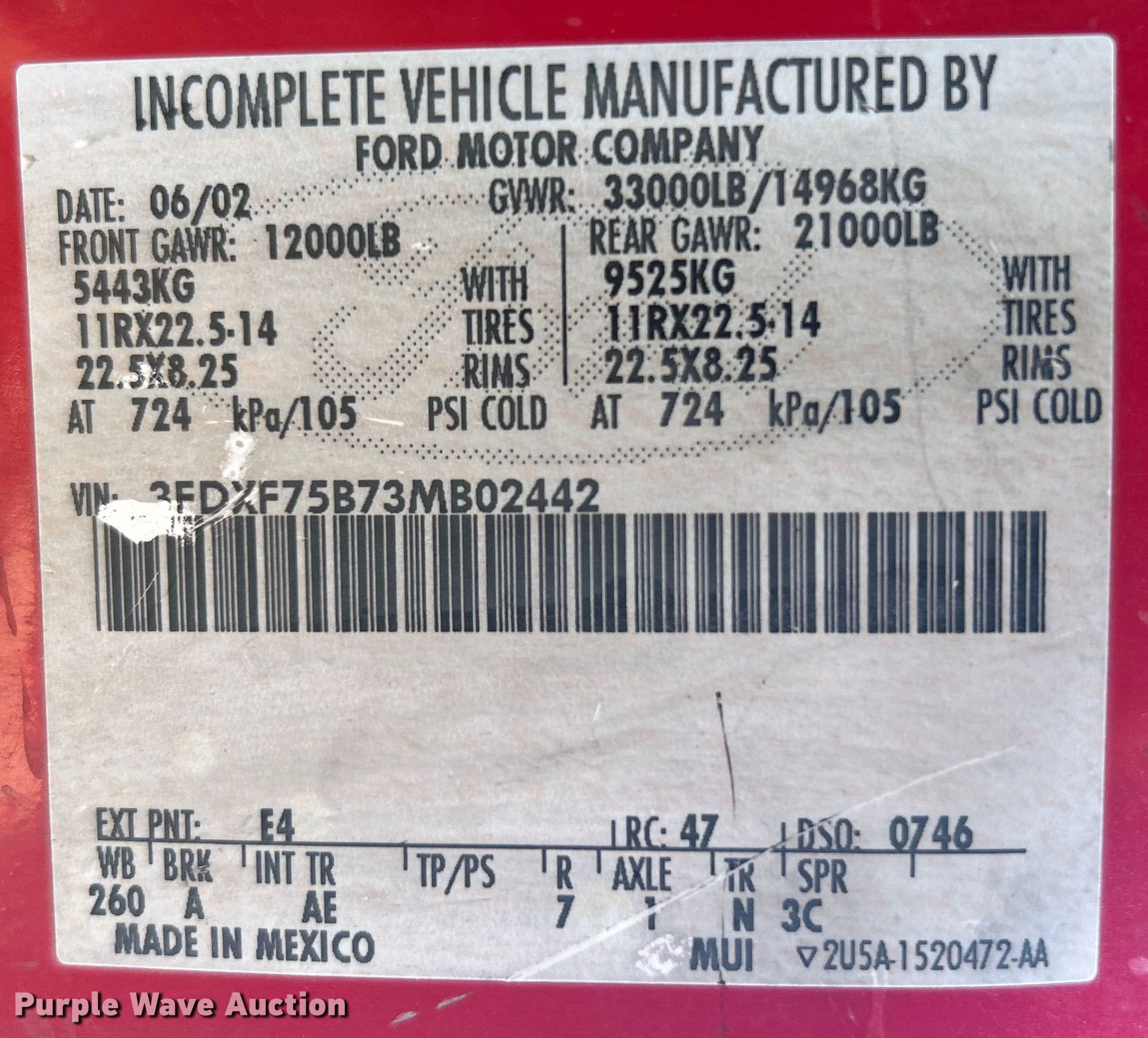 Purple Wave is selling a used Crane Truck in Oklahoma. This item is a 2003 Ford F750 Super Duty crane truck with the following: Miles: 326,059 on odometer, VIN: 3FDXF75B73MB02442