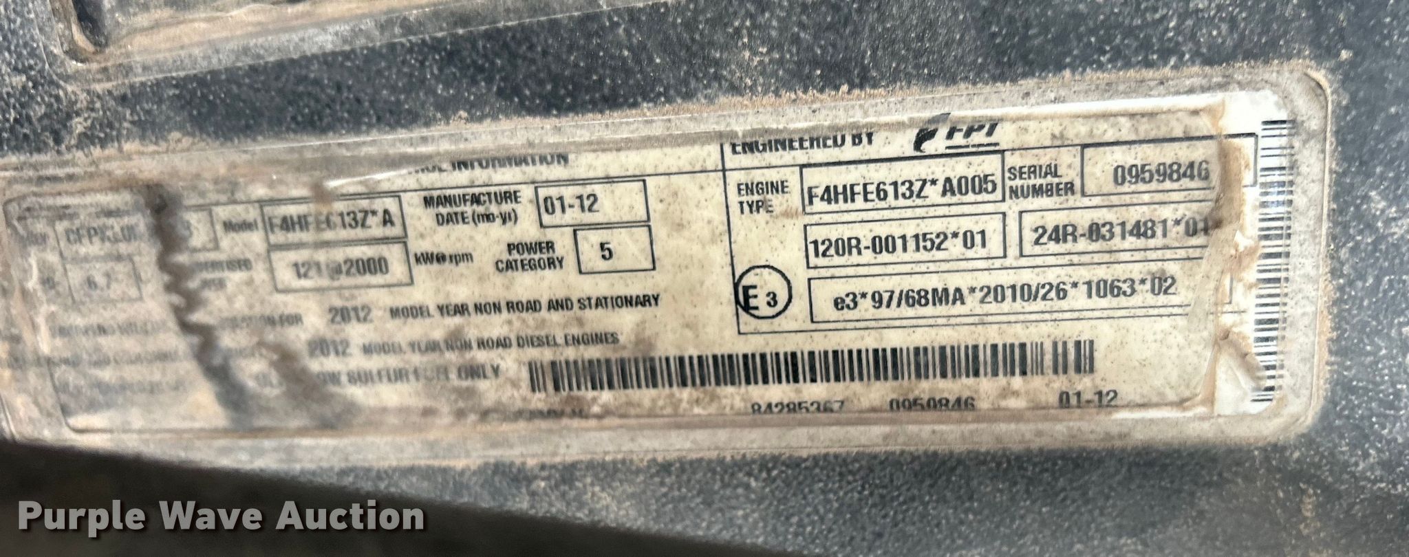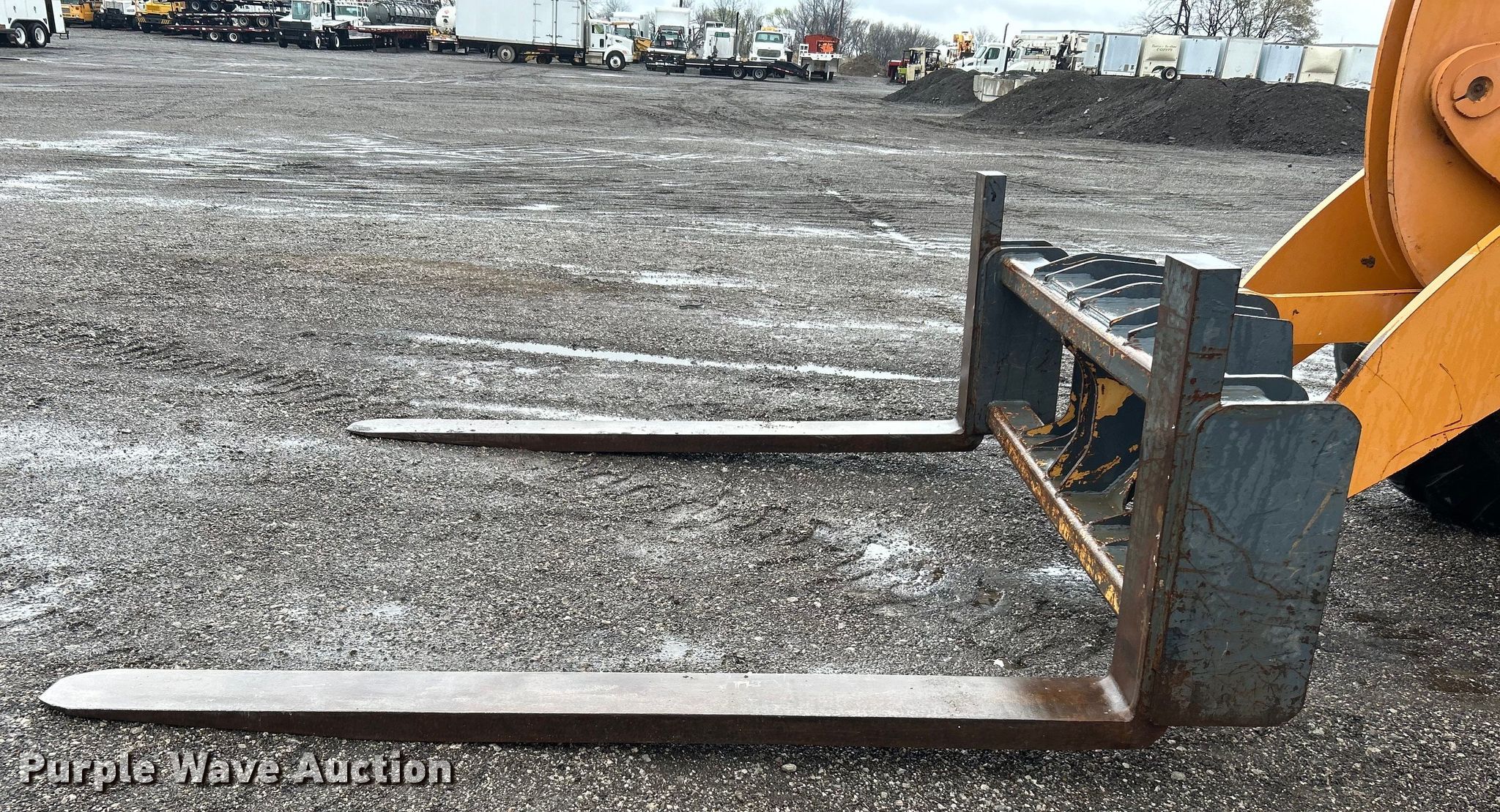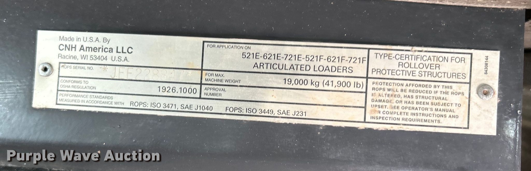 2012 Case 621F XR wheel loader. Hours: 7,496 on meter, Serial: NCF215470. Engine Case F4HFE613Z*A, Serial: 0959846, Displacement: 6.7L, Cylinders: 6, Fuel type: Diesel. Transmission Powershift, 4F - 3R. Chassis Differential lock: Front, Rear. Operators station Enclosed cab, AC, Heat, Bucket controls: Joystick. Features Forks Length: 96". Tires Size: 20.5-25. 15107 North 137th East Avenue. Collinsville, OK 74021