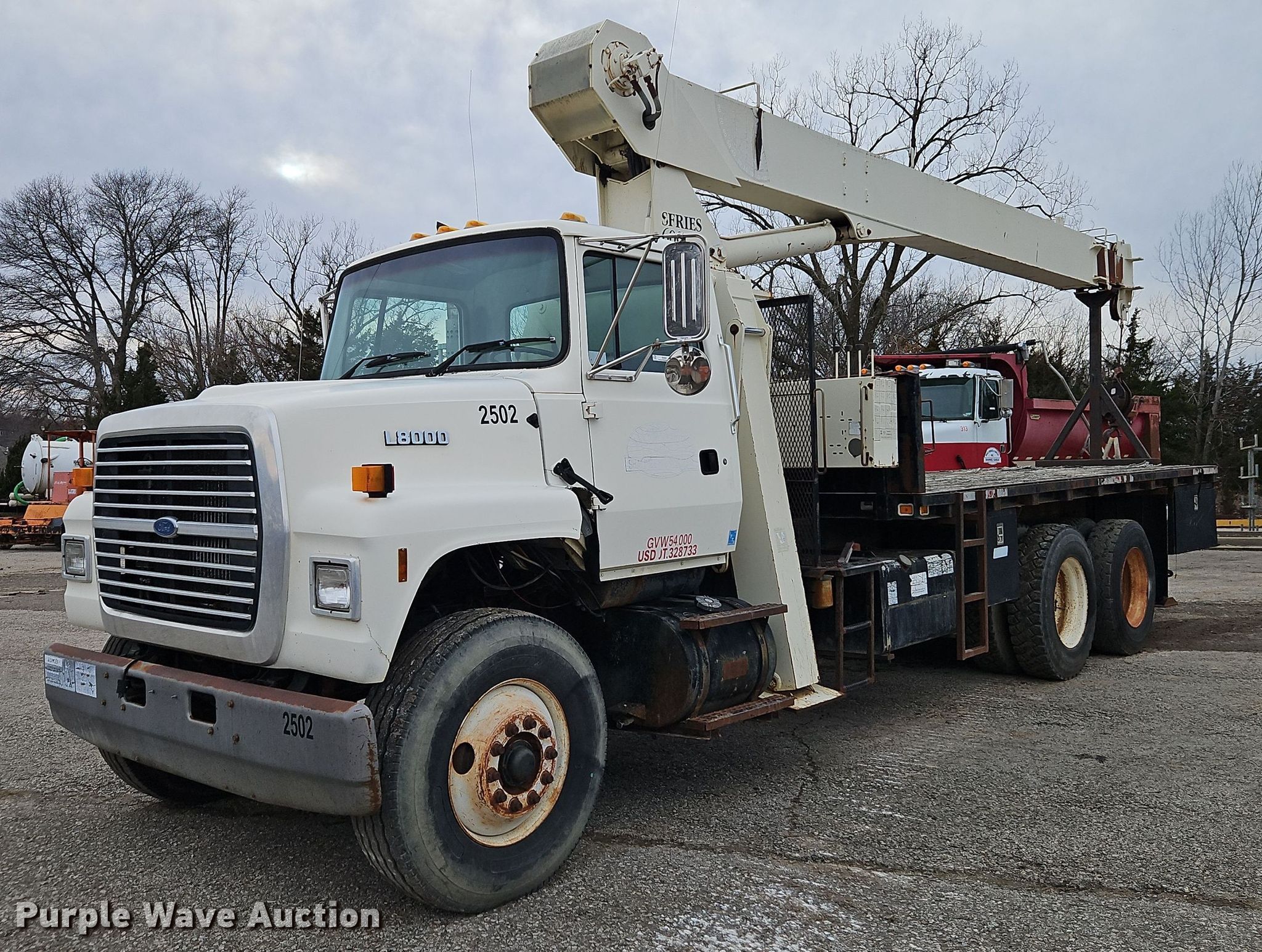This 1996 Ford L8000 crane truck will sell to the highest bidder regardless of price.