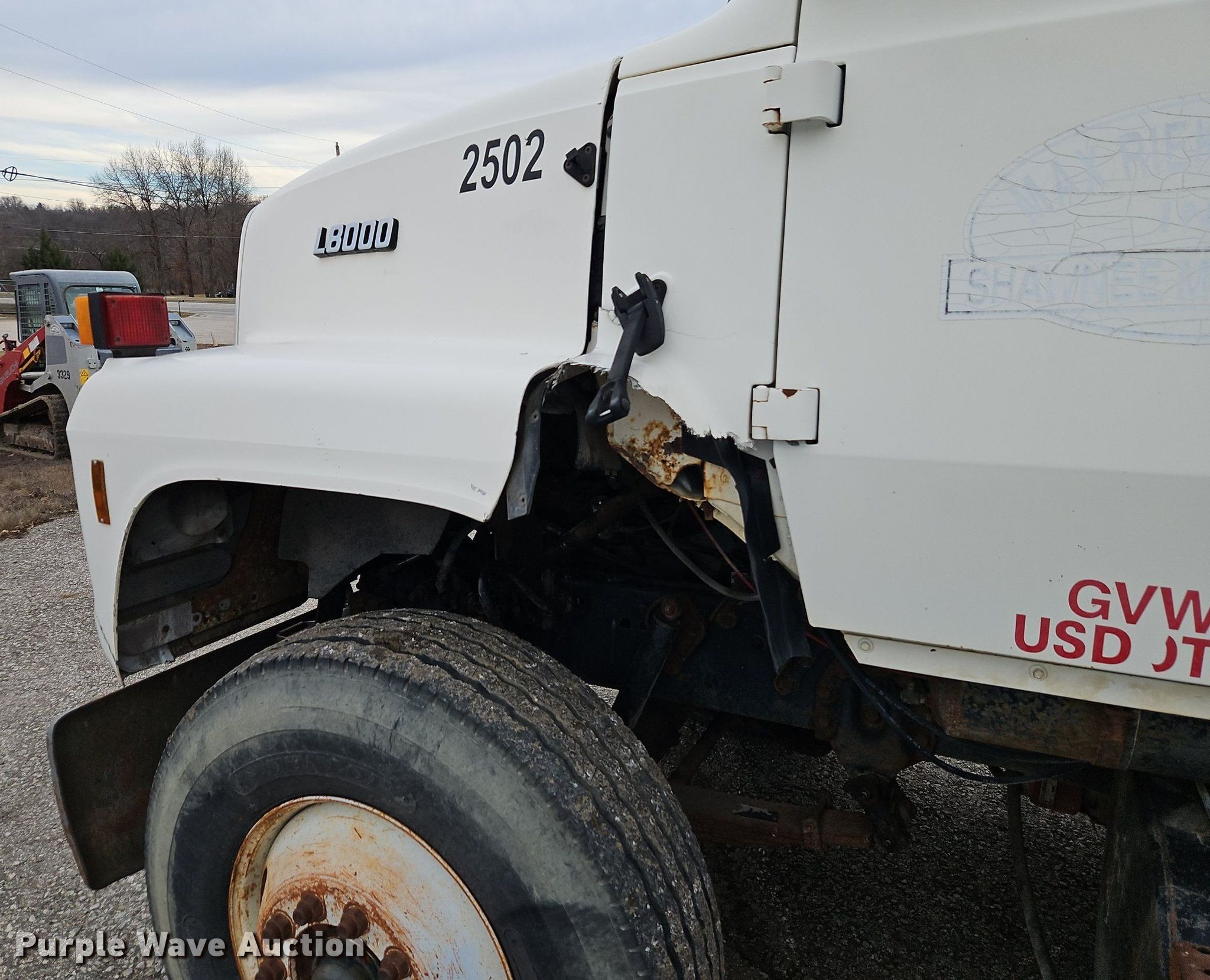 Purple Wave is selling a used Crane Truck in Kansas. This item is a 1996 Ford L8000 crane truck with the following: Miles: 46,685 on odometer, VIN: 1FDYW82E5TVA24838