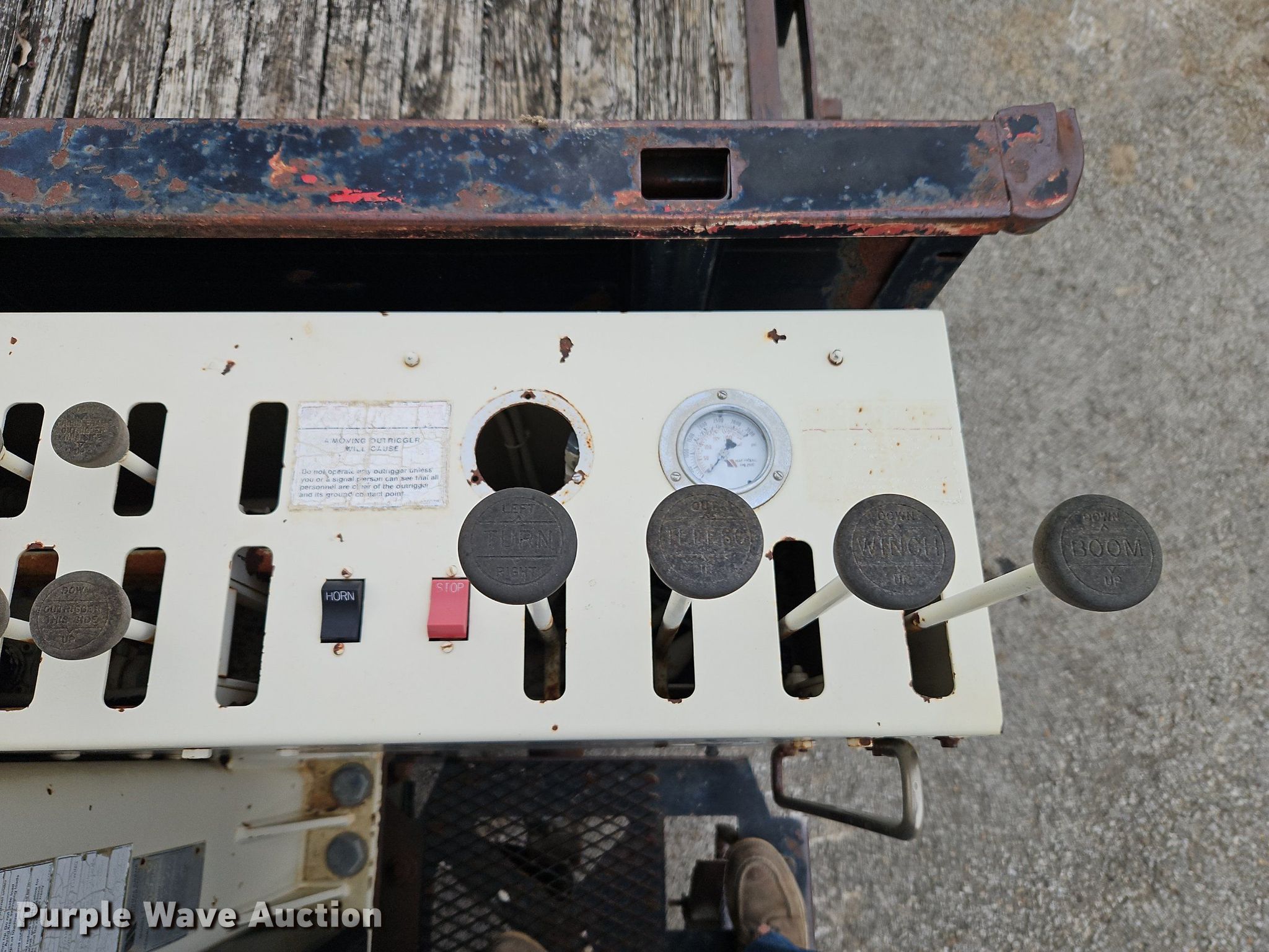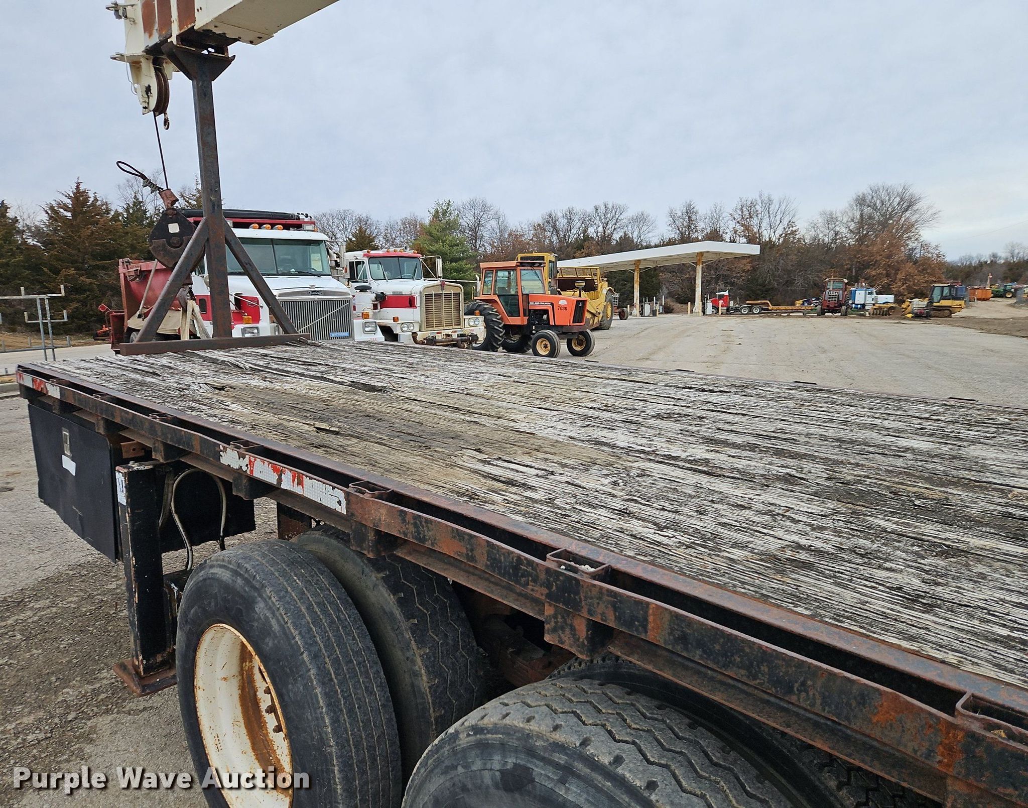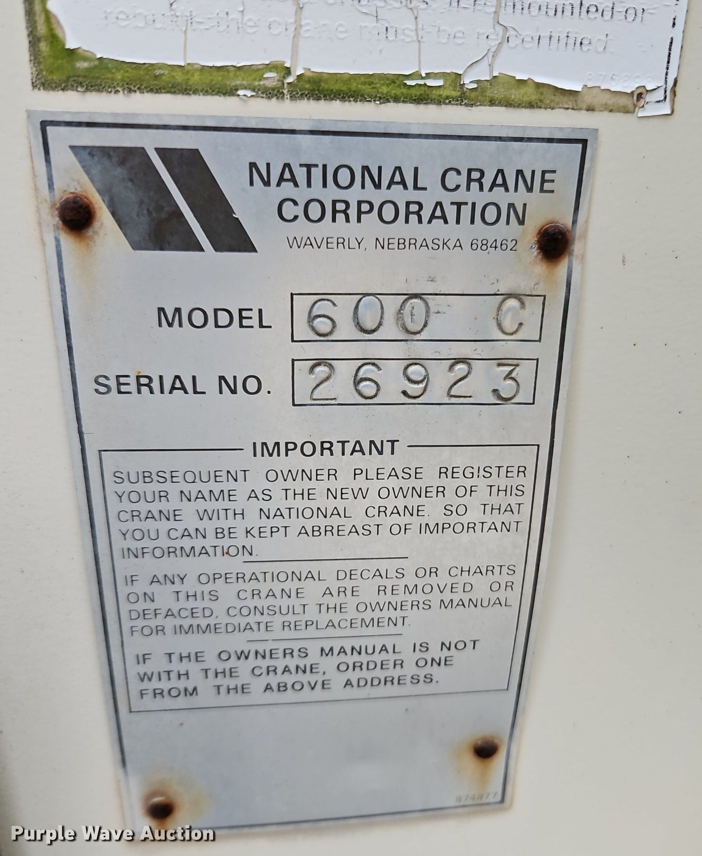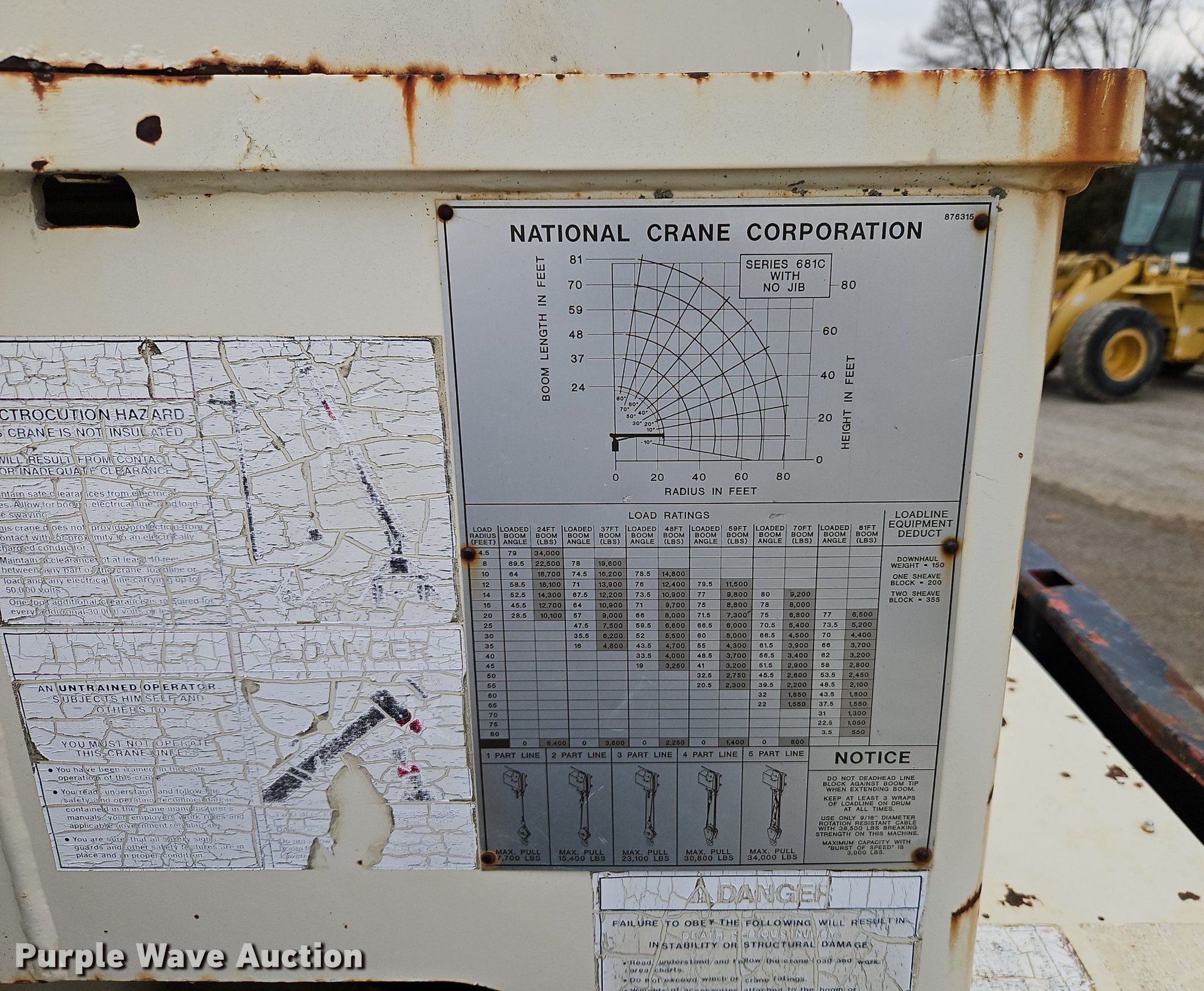 1996 Ford L8000 crane truck. Miles: 46,685 on odometer, VIN: 1FDYW82E5TVA24838. Engine Cummins C8.3, Displacement: 8.3L, Cylinders: 6, Fuel type: Diesel. Transmission Eaton Fuller Roadranger RT-7608LL, Manual, Speed: 10. Chassis Axles: Tandem, Suspension: Spring over walking beam, Brakes: Air, PTO, GVWR: 54,400 lbs FAWR: 14,400 lbs, RAWR: 40,000 lbs. Interior AC, Heat, Brake controller. Features Flatbed Knapheide, 20' L x 8' W, Crane National Crane 600 C Serial: 26923, Boom Telescopic, Maximum boom length: 81' Sections: 3, Maximum lift capacity: 34,000 lbs, Boom controls, Crane block Sheaves: 1, Capacity: 12.5 lbs, Lift chart. Tires Front: 315/80R22.5, Rear: 11R24.5. Kansas title. Title distribution may be delayed up to 14 days from verification of funds. Max Rieke & Brothers Inc.. 15400 Midland Dr. Shawnee, KS 66217