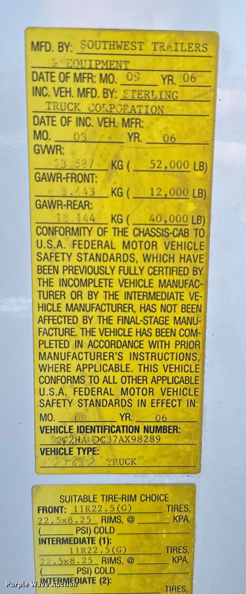 2007 Sterling dump truck has sold in Newcastle, Oklahoma for $18150. Item EJ0328 sold on April 11th, 2024.