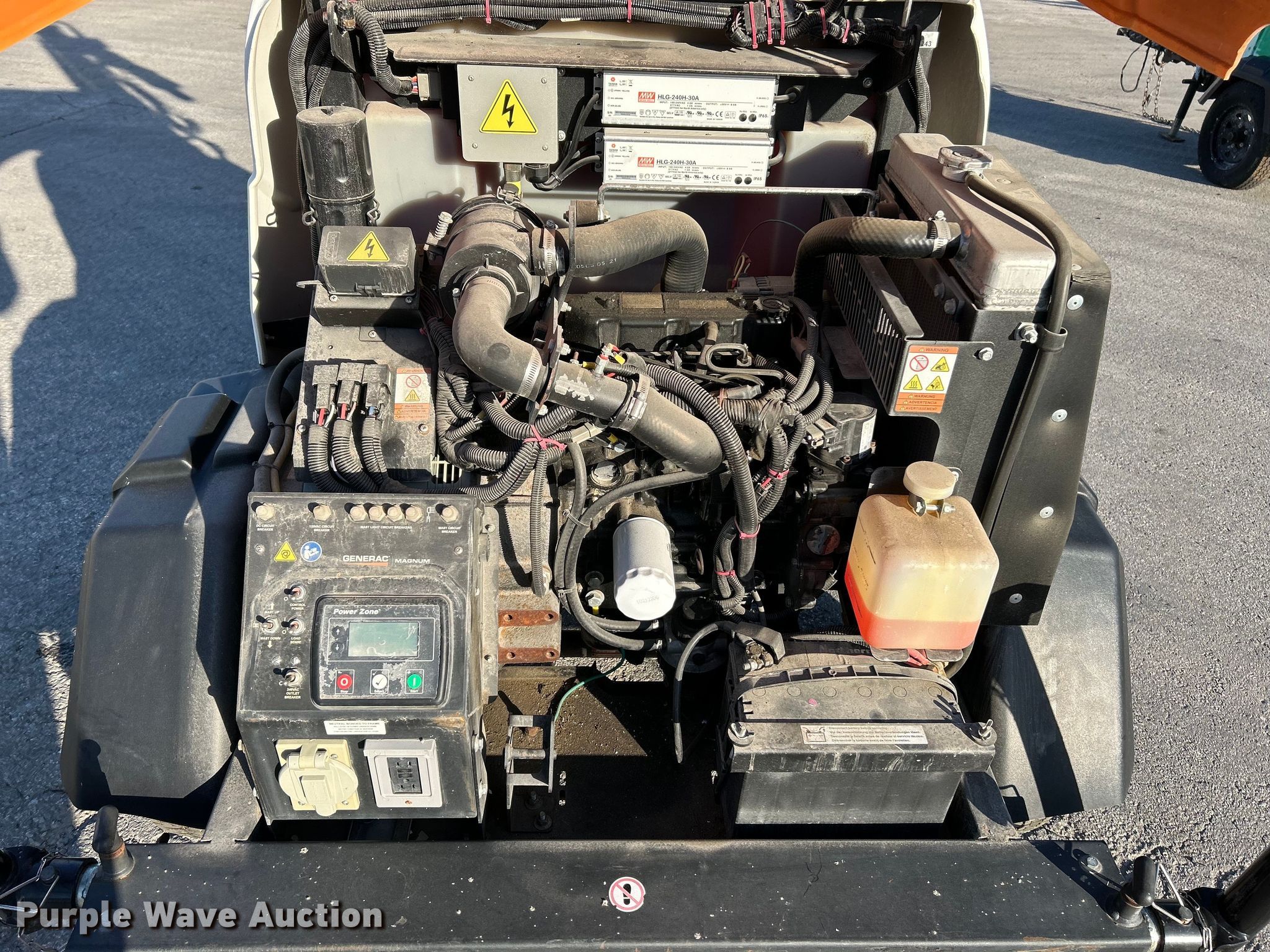 Generac Magnum MLT6S light plant. Hours: 4,445 on meter, Serial: 1605243. Engine Mitsubishi L3E-W464MLD, Serial: A32775, Displacement: 1.0L, Cylinders: 3, Fuel type: Diesel. Features Generator Pancake, kVA: 6, kW: 6, Phase: Single, Light plant Bulbs: 4, Hoist: Power, Stabilizers, LED lights. Trailer 10' L x 58" W, Ball hitch size: 2", Suspension: Spring, Axles: Single, Tire size: 175/80D13. Transfer of ownership documentation will be a bill of sale. Concrete Strategies, LLC. St. Louis, MO 63147