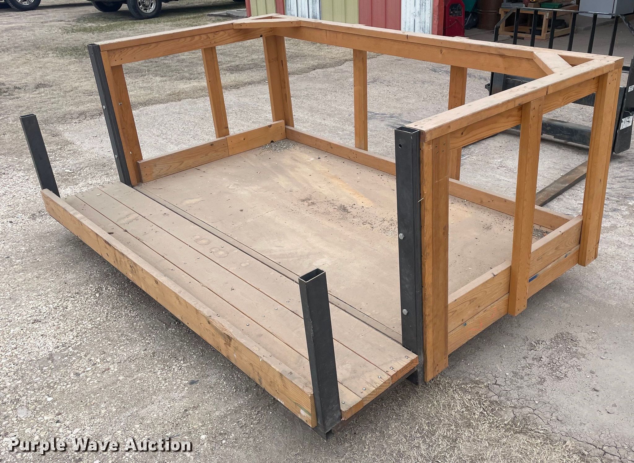 John Deere skid steer forks. Length: 48", 48" L x 99" W platform. 135 South Tomahawk. Alamota, KS 67839