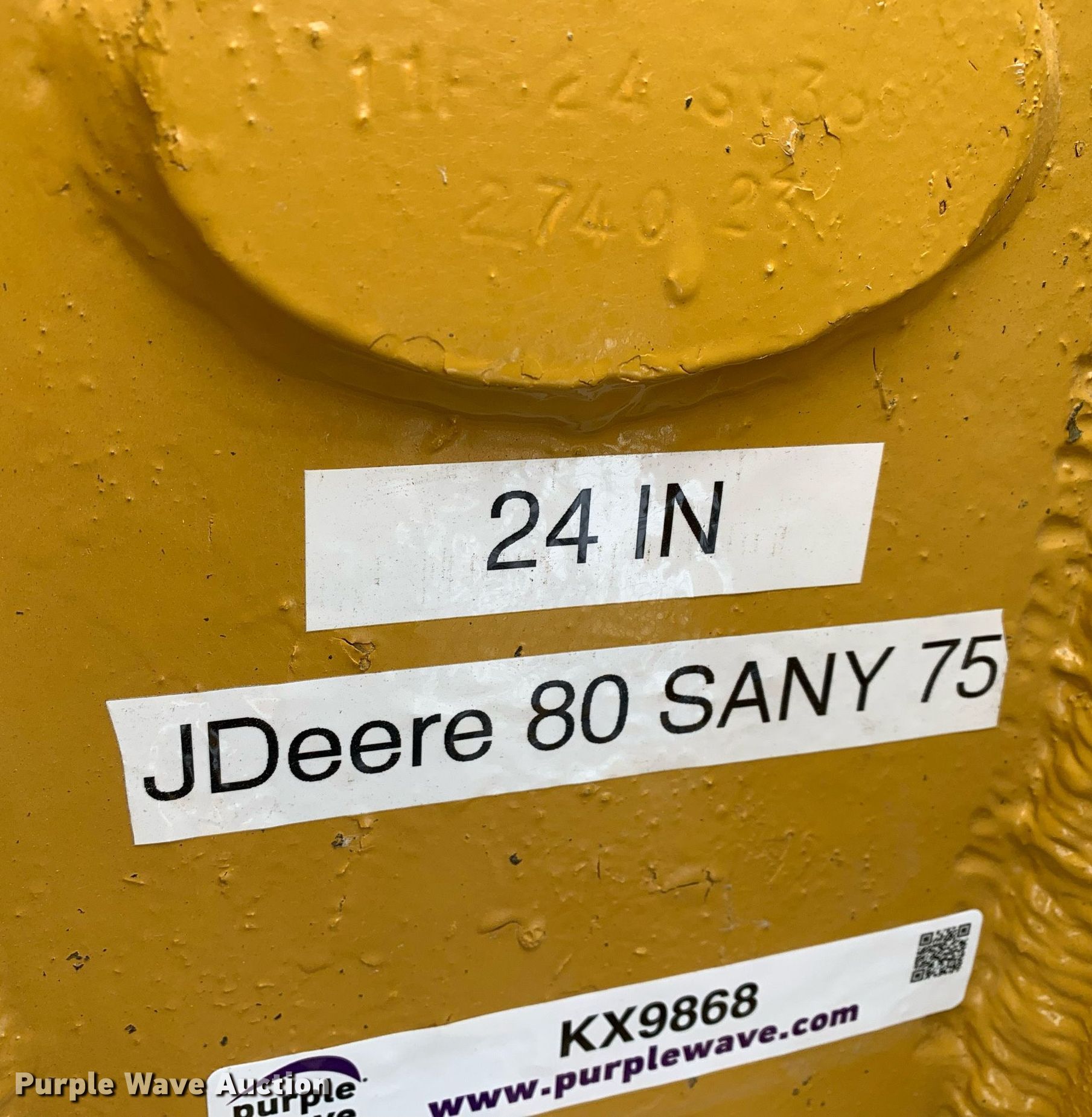 Purple Wave is selling a used Excavator Attach. in Texas. This item is a Tooth Pro 11F24S138 24" W excavator bucket with the following: Serial: 274023, Teeth: 5, Caps missing, Fits John Deere 80, Sany 75