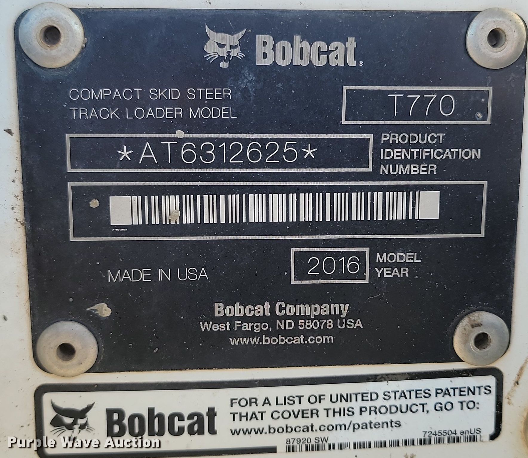 This 2016 Bobcat T770 tracked skid steer loader will sell to the highest bidder regardless of price.