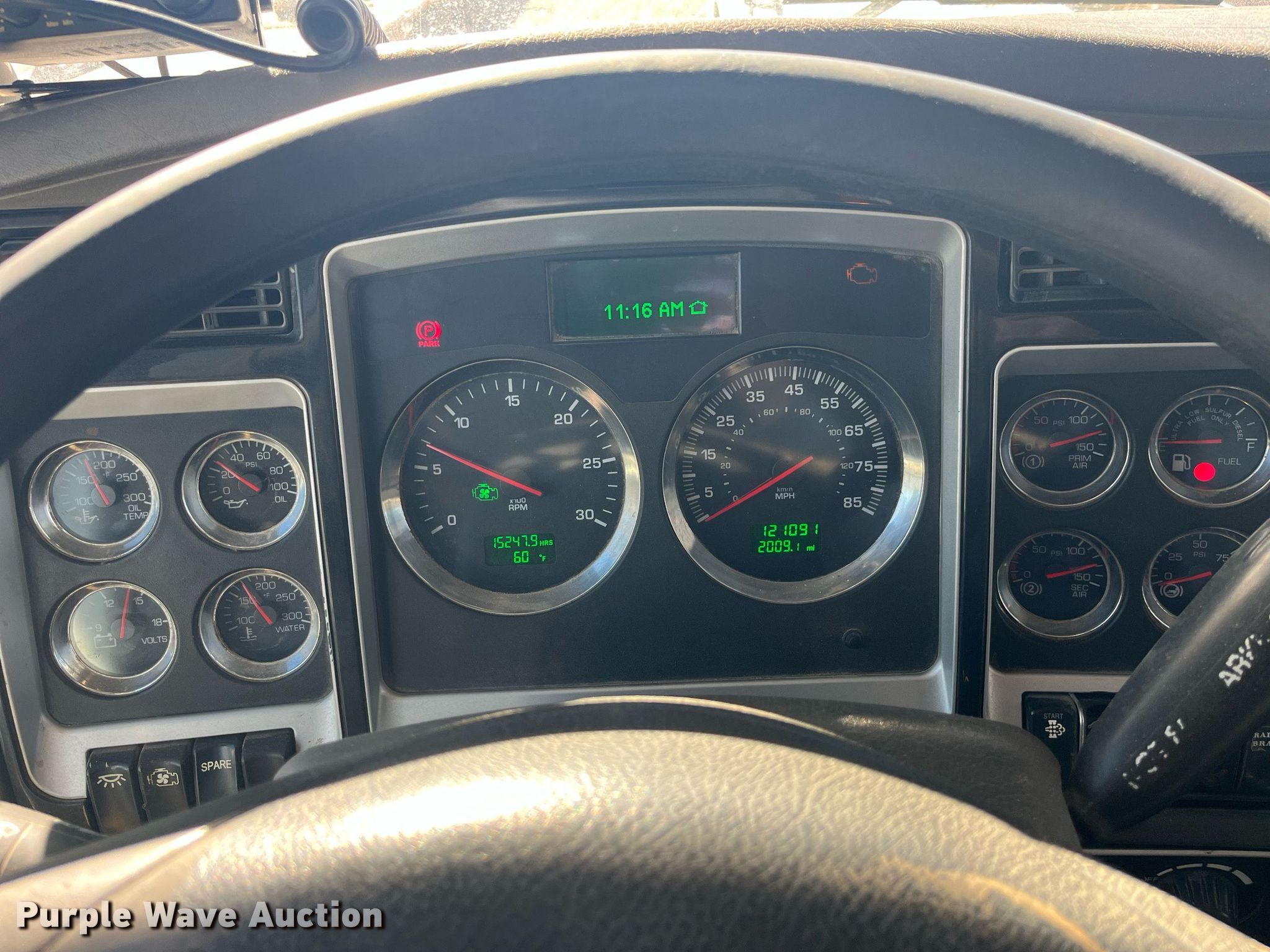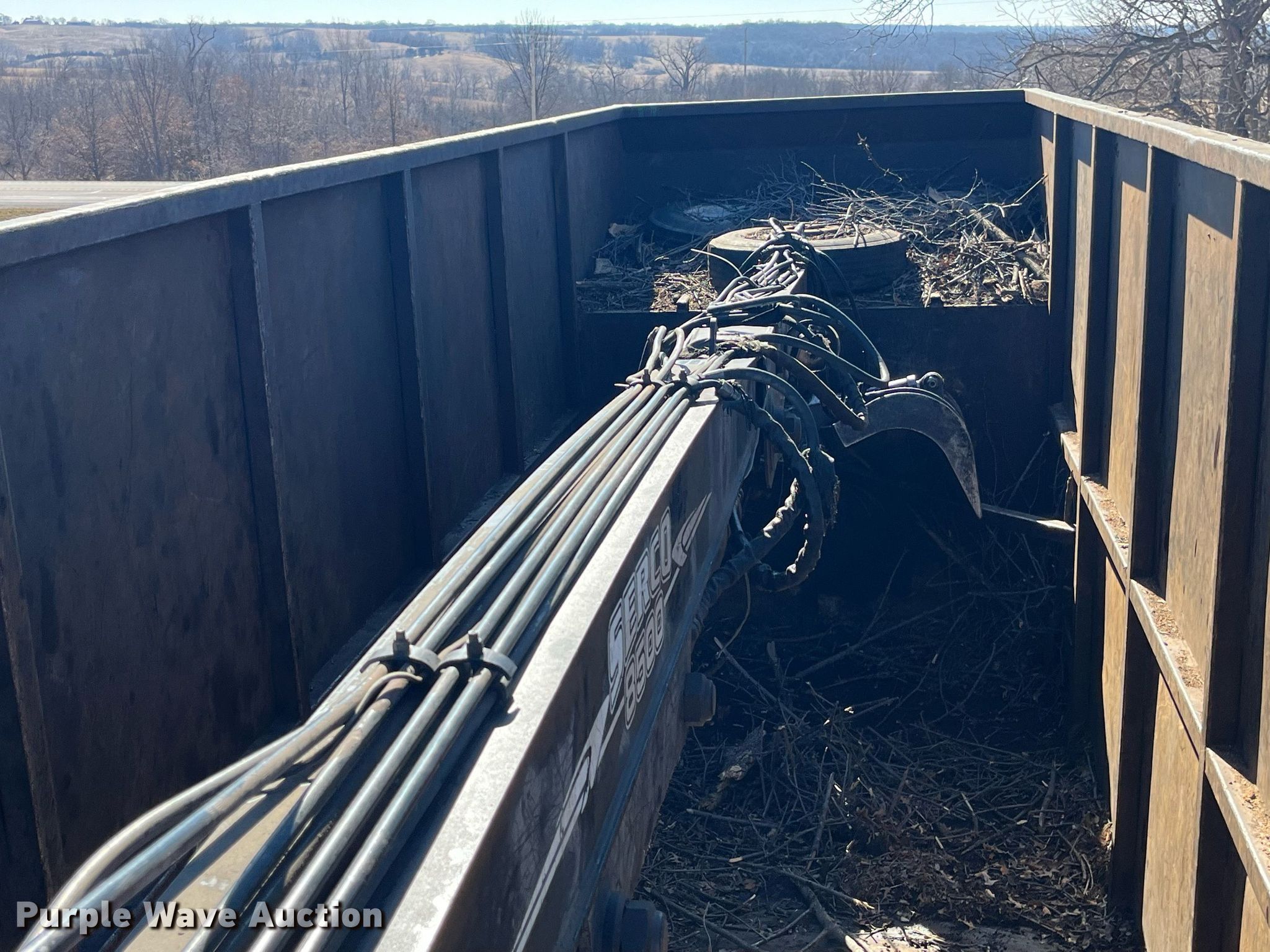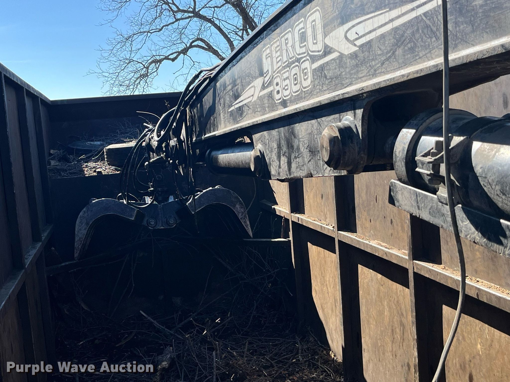 2013 Kenworth T800 grapple crane truck. Miles: 121,091 on odometer, Hours: 15,248 on meter, Miles or hours may vary, unit still in use, VIN: 1NKDX4EX4DJ354337. Engine Cummins ISX15 450, Displacement: 15, Cylinders: 6, Fuel type: Diesel, Engine brake. Transmission Manual. Chassis Axles: Triple, Tag axle, Suspension: Spring over walking beam, Brakes: Air, PTO, GVWR: 77,020 lbs FAWR: 20,000 lbs, IAWR: 23,000 lbs, RAWR: 23,000 lbs, Lift axle GAWR: 11,020 lbs. Interior AC, Heat, Heated mirrors, Power locks, Cruise control, Brake controller. Features Bed Capacity: 75 cu. yd., Dimensions: 25'3"L x 8'6"W x 9'8"H, Serco 8500 material handler Serial: L8360, Boom length: 25' 8", Lift capacity: 8,500 lbs, Telescopic, Hi-rail system. Tires Front: 425/65R22.5, Rear: 11R24.5, Lift axle: 255/70R22.5. Notes DEF deleted, Dash warning indicator: Check engine, Windshield chipped or cracked. Iowa title. Title distribution may be delayed up to 30 days from verification of funds. Southern Iowa Debris Removal. 30086 State Highway 2. Leon, IA 50144