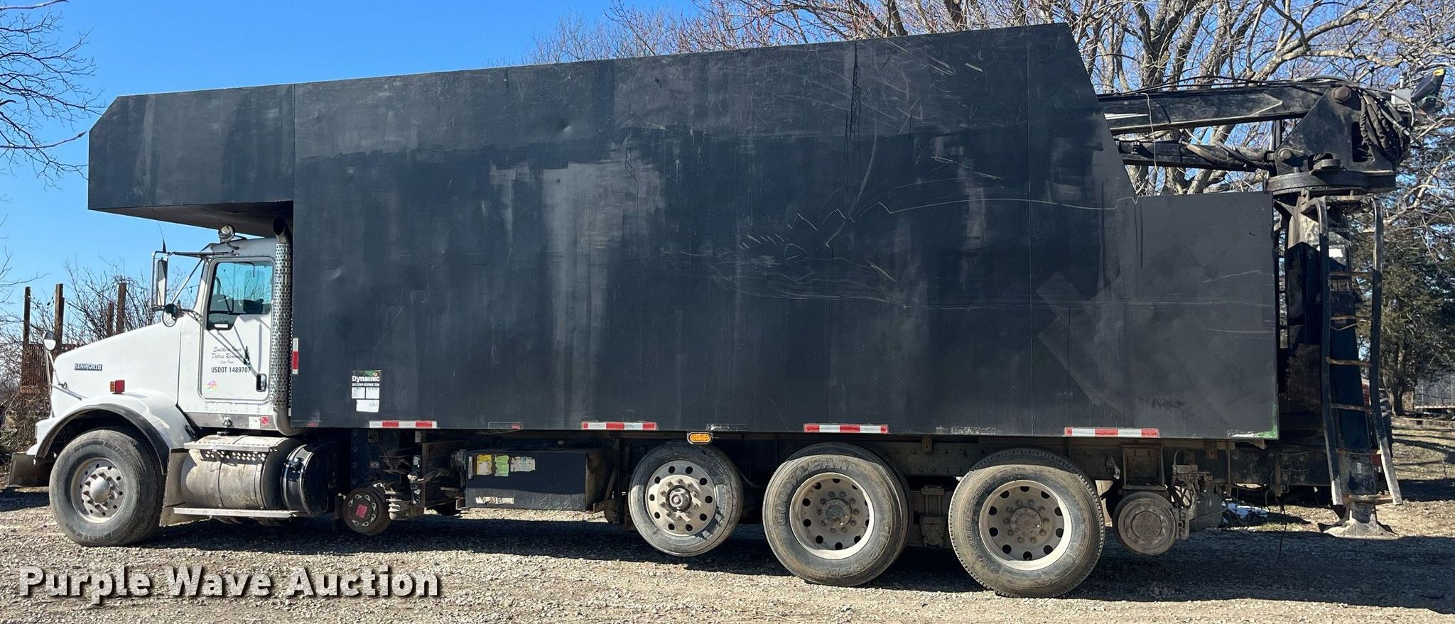 Purple Wave is selling a used Crane Truck in Iowa. This item is a 2013 Kenworth T800 grapple crane truck with the following: Miles: 121,091 on odometer, Hours: 15,248 on meter, Miles or hours may vary, unit still in use, VIN: 1NKDX4EX4DJ354337
